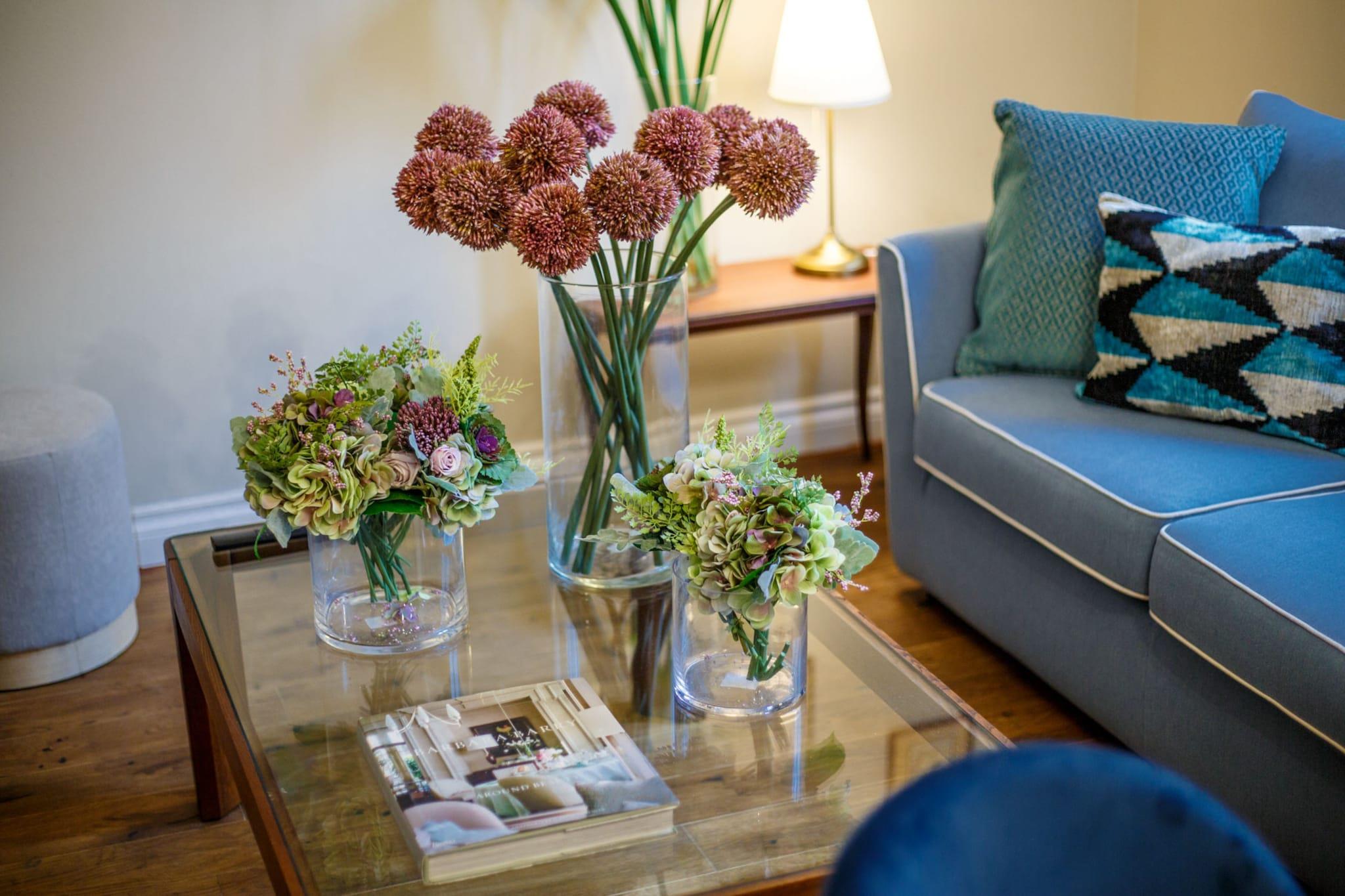 På 2. etage: (Køkken(elkedel, brødrister, kaffemaskine, ovn, mikrobølgeovn, opvaskemaskine , køleskab, fryser, Saftpresser, ), stue / spisestue(Fjernsyn, spisebord, sofahjørne), soveværelse(dobbeltseng), Soveværelse med badeværelse(dobbeltseng, Fjernsyn, bruser), Soveværelse med badeværelse(enkeltseng, enkeltseng, Fjernsyn, bruser), badeværelse(håndvask), toilet(toilet)) vaskemaskine, klimaanlæg, strygejern, føntørrer