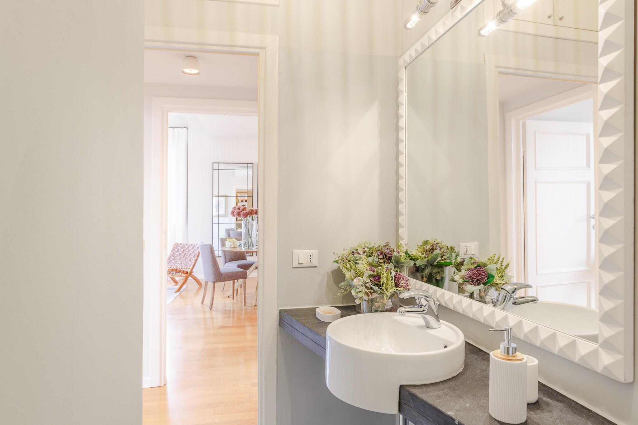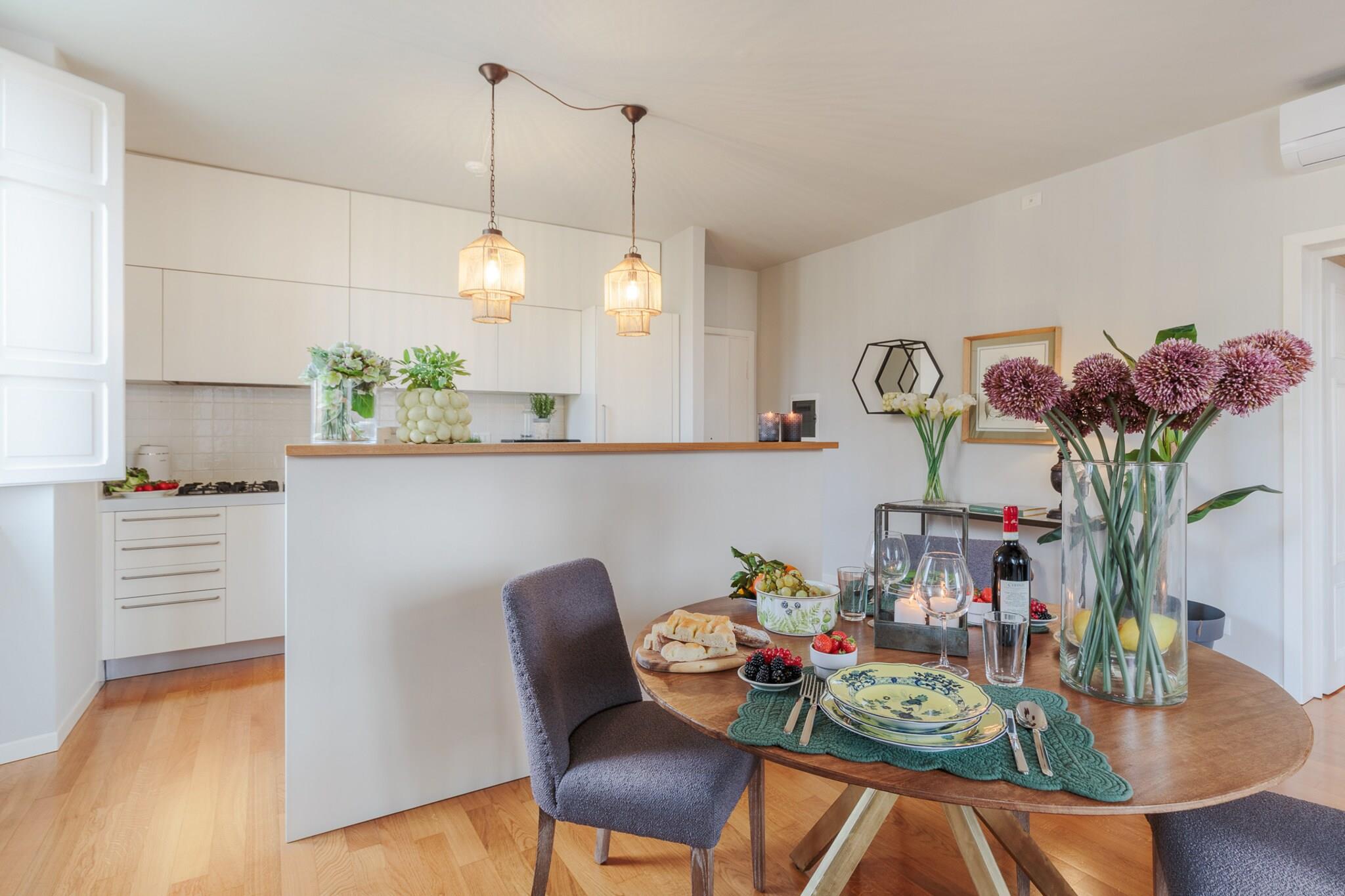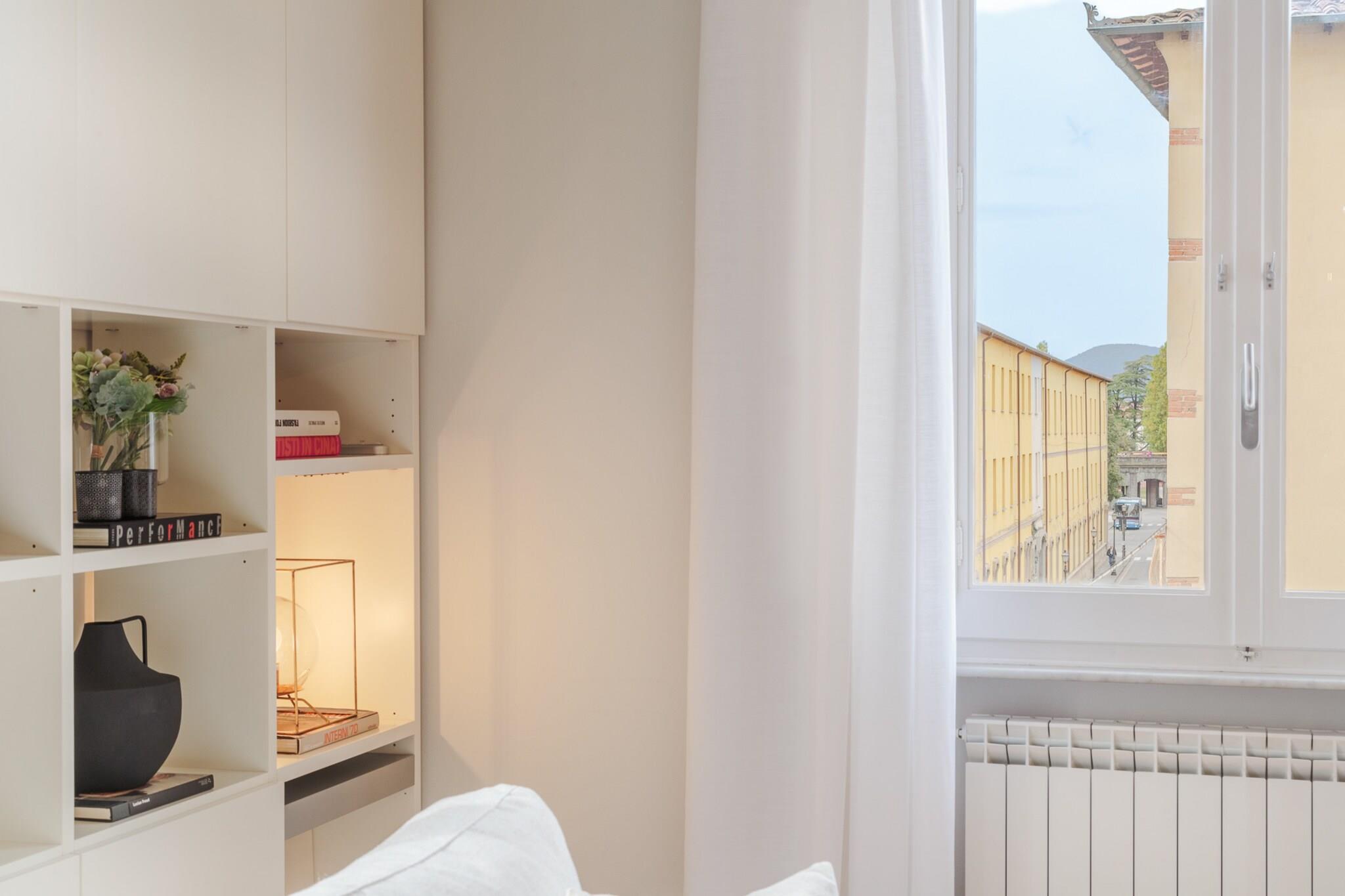 Beliggende inden for Luccas gamle mure tilbyder denne luksuriøse penthouselejlighed på tredje sal en sjælden blanding af historisk charme og moderne elegance. Badet i naturligt lys kan lejligheden prale af en betagende udsigt over Piazza Napoleone og Piazza San Michele, hvilket placerer dig i hjertet af denne fortryllende toscanske by. Den 70 m² store bolig har en rummelig åben stue med trægulve, elegante møbler og kuraterede kunstværker. Et fuldt udstyret køkken og formel spiseplads gør den ideel til romantiske middage eller underholdning. Det rolige soveværelse lover afslappende nætter med en luksuriøs dobbeltseng og fint sengetøj, mens det elegante badeværelse har et moderne brusebad og førsteklasses toiletartikler. Gæsterne kan nyde aircondition, WiFi og nem adgang til Luccas kulturskatte, butikker og charmerende caféer. Bemærk venligst: Lejligheden ligger inden for ZTL (Limited Traffic Zone) og tilbyder ikke parkering på stedet. Den nærmeste parkeringsplads er ved Cittadella, en kort gåtur væk. Denne ejendom med selvhusholdning inkluderer slutrengøring, sengetøj, håndklæder og forbrugsvarer. Ekstraudstyr såsom vin, babyudstyr og sen indtjekning er tilgængelig efter anmodning. Bemærk: Turistskat skal betales på ejendommen.