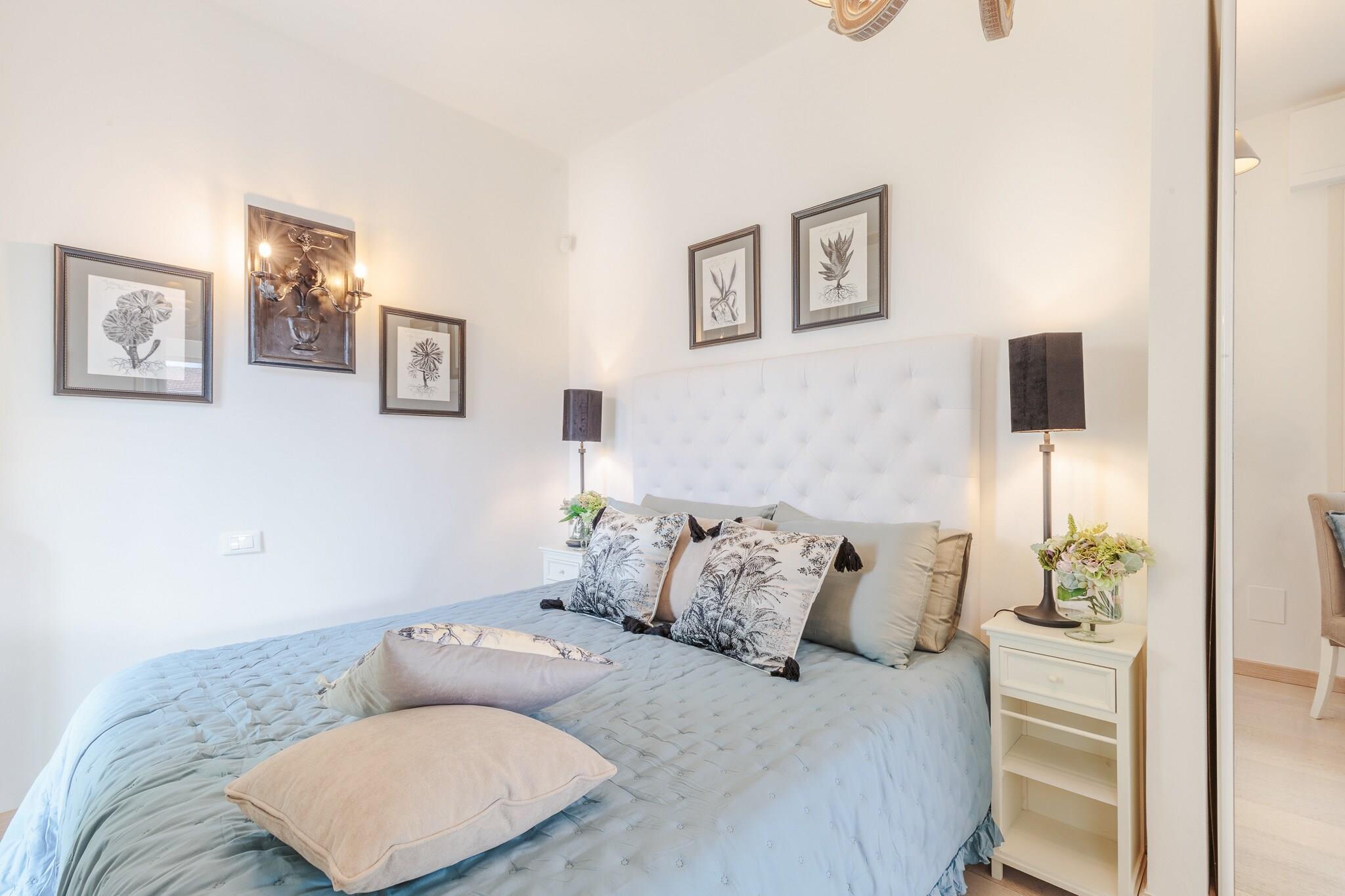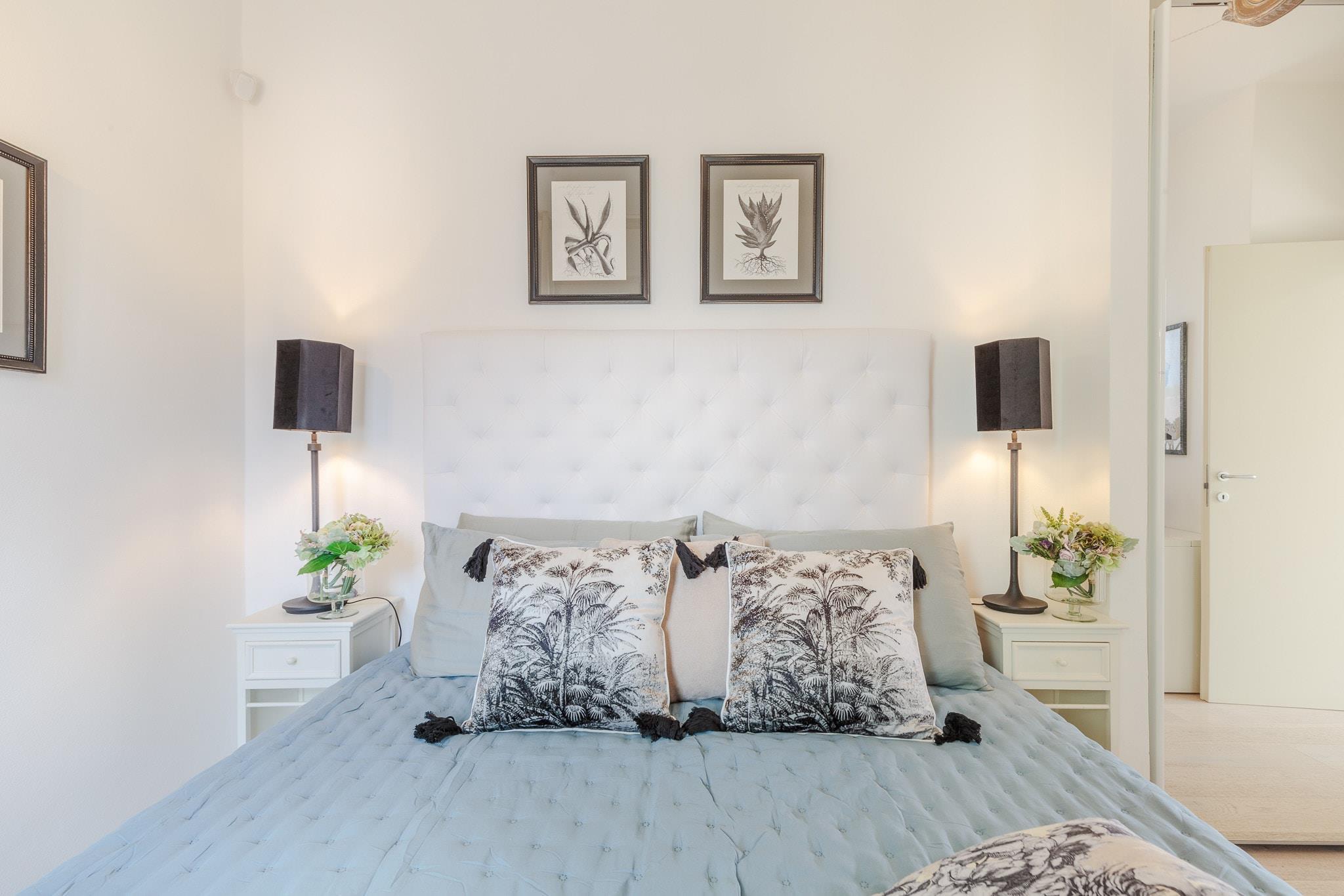 Køkken(elkedel, brødrister, kaffemaskine, ovn, mikrobølgeovn, opvaskemaskine , køleskab, fryser, Saftpresser, ), stue / spisestue(Fjernsyn, spisebord, sofahjørne), soveværelse(dobbeltseng), Soveværelse med badeværelse(dobbeltseng, bruser), badeværelse(bruser), tremmeseng, vaskemaskine, balkon, klimaanlæg, terrasse, barnestol, strygejern, luft til luft-varmepumpe, føntørrer
