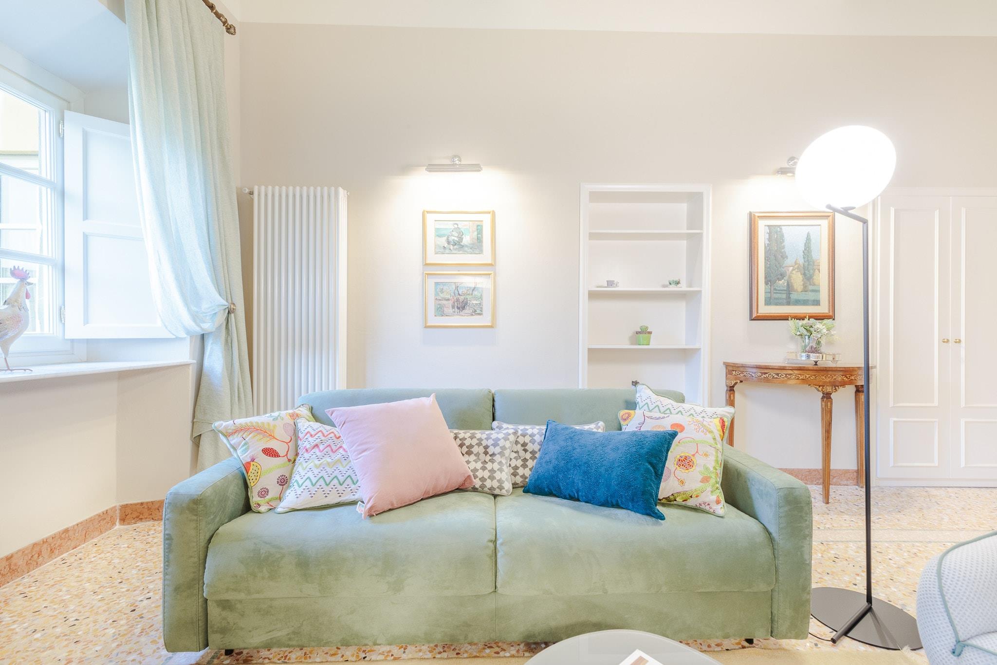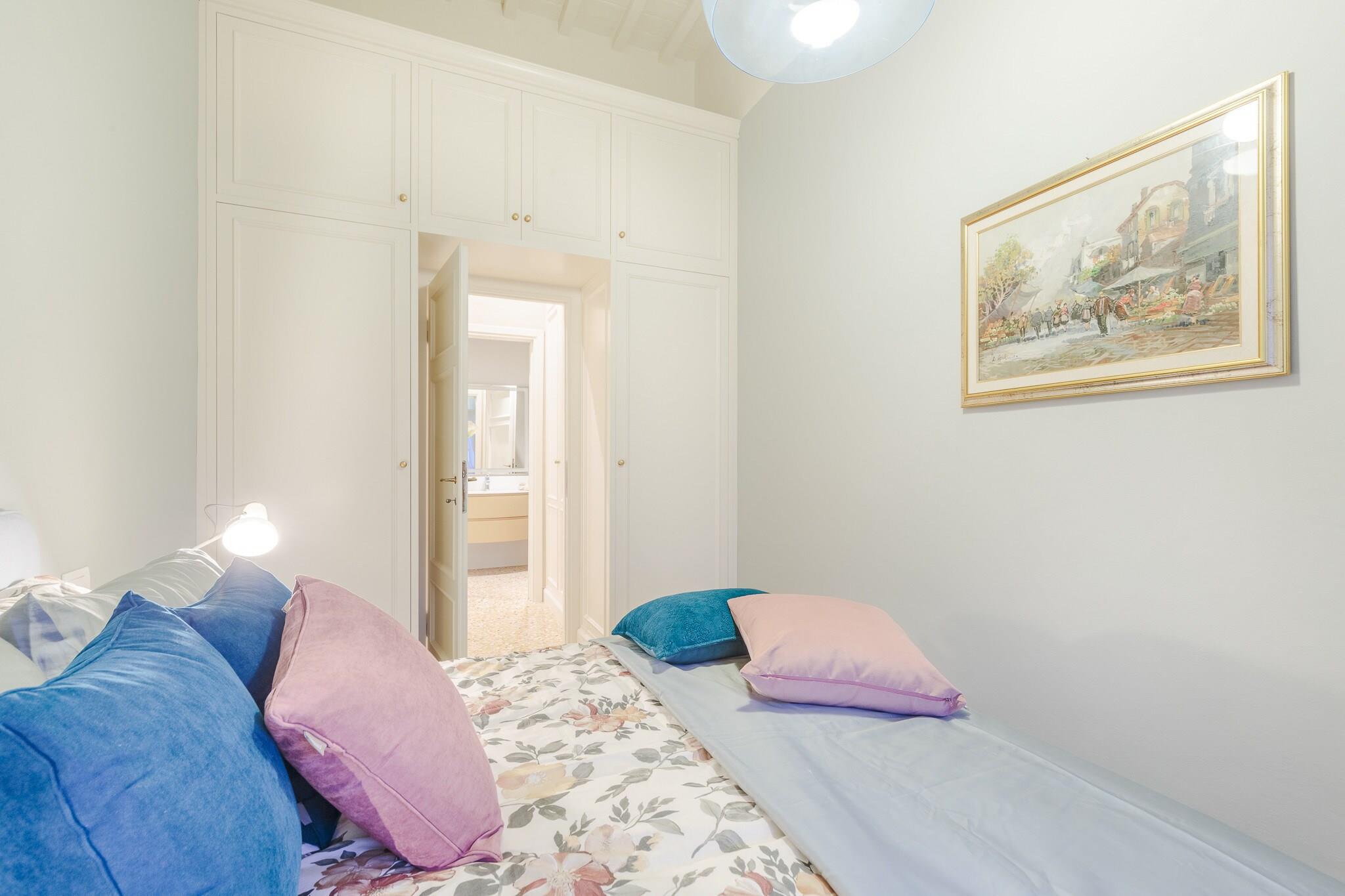 Velkommen til et raffineret tilflugtssted i hjertet af Lucca, beliggende i det historiske Palazzo Arnolfini - et palads fra det 14. århundrede, der engang var hjemsted for den adelige Arnolfini-familie. Denne lejlighed på anden sal, der er tilgængelig med privat elevator, tilbyder en sjælden blanding af arv og moderne luksus. Den blev renoveret i begyndelsen af 2024 og indfanger fortidens elegance, samtidig med at den tilbyder al moderne komfort. Indvendigt har lejligheden to rolige soveværelser møbleret med møbler fra top italienske designhuse og to stilfulde badeværelser, der kombinerer klassisk charme med moderne bekvemmeligheder. Den rummelige opholds- og spisestue er badet i naturligt lys med højt til loftet og udsigt over paladsets indre have. Et fuldt udstyret designerkøkken inviterer dig til at forkæle dig selv med toscanske kulinariske lækkerier. Uanset om du udforsker Luccas brostensbelagte gader eller slapper af i den rolige elegance i dette historiske hjem, er hver eneste detalje kurateret for komfort og sofistikering. Dette er mere end et ophold - det er en invitation til at leve i Luccas historie, hvor kunst, historie og moderne livsstil mødes i perfekt harmoni. Bemærk: Turistskat skal betales på ejendommen.