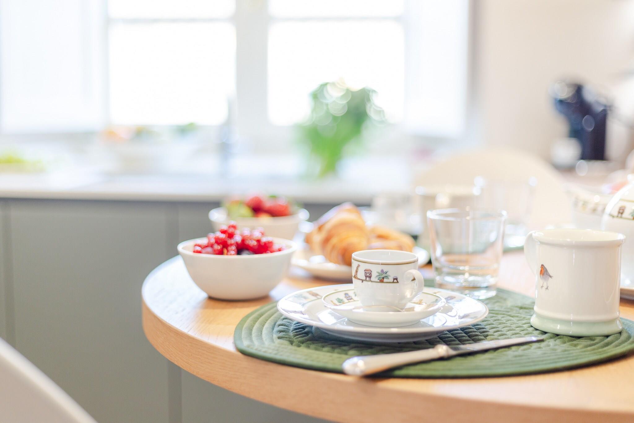 På 2. etage: (Køkken(elkedel, brødrister, kaffemaskine, ovn, mikrobølgeovn, opvaskemaskine , køleskab, fryser, Saftpresser, ), stue / spisestue(Fjernsyn, spisebord, sofahjørne), soveværelse(dobbeltseng), soveværelse(dobbeltseng), badeværelse(bruser), badeværelse(bruser)) tremmeseng, vaskemaskine, klimaanlæg, barnestol, strygejern, føntørrer