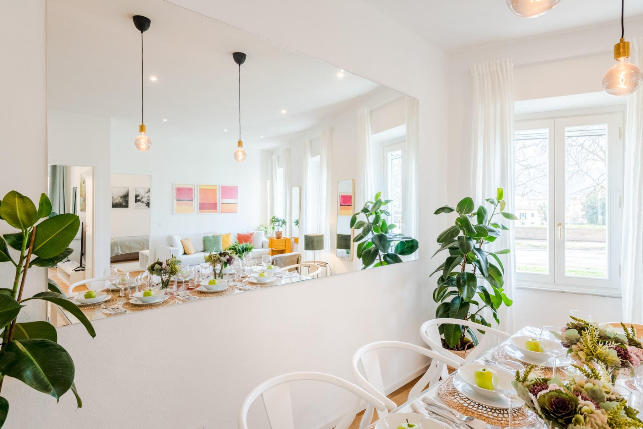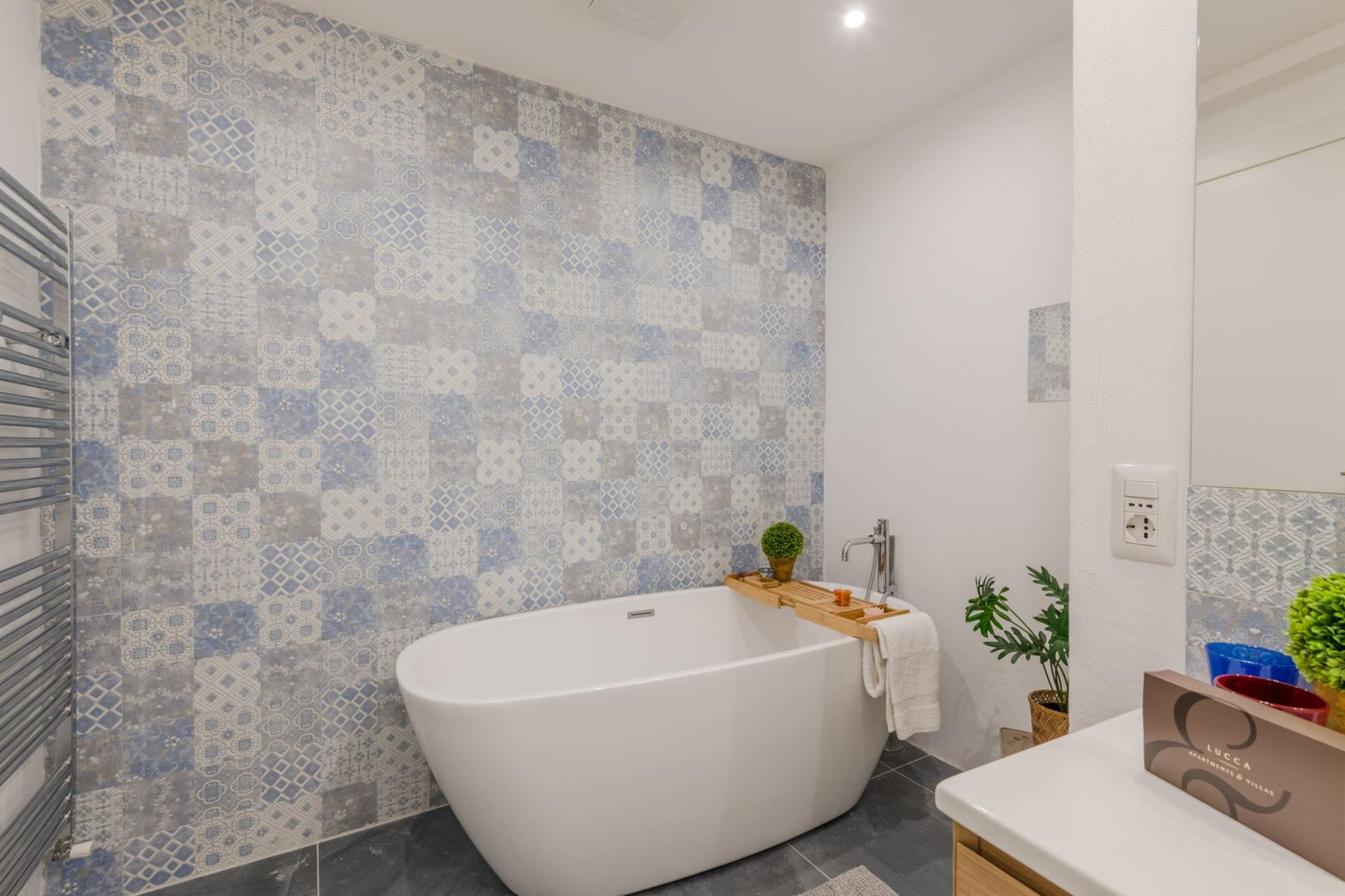 Træd ind i et moderne fristed beliggende inden for Luccas historiske mure, hvor moderne stil møder tidløs charme. Denne rummelige lejlighed med fire soveværelser og tre badeværelser tilbyder et elegant tilflugtssted for familier eller grupper, der søger komfort, privatliv og nem adgang til byens rige kulturarv. Indenfor skaber en lys og luftig opholdsstue med et fuldt udstyret køkken og spiseplads de perfekte rammer for afslapning, socialisering eller nydelse af hjemmelavede måltider. Lejligheden har et soveværelse med en dobbeltseng, et andet soveværelse med en dobbelt futonseng, et soveværelse med to enkeltsenge og et fjerde soveværelse med en sovesofa og eget badeværelse. De tre badeværelser har en blanding af brusere og badekar, hvilket giver fleksibilitet og bekvemmelighed for alle. Store vinduer indrammer en fortryllende udsigt over århundrede gamle træer langs Luccas historiske promenade, hvilket bringer en følelse af ro og forbindelse til byens tidløse skønhed. Moderne bekvemmeligheder såsom aircondition, fladskærms-tv, vaskemaskine, strygejern, hårtørrer og et fuldt udstyret køkken sikrer et behageligt og ubesværet ophold. Lejligheden har en perfekt beliggenhed, kun 5 minutters gang fra togstationen og 7 minutter fra nærliggende parkeringspladser og busterminalen, hvilket gør det nemt at udforske Lucca og den omkringliggende toscanske region. Gå en tur gennem charmerende gader, oplev kunsthåndværkerbutikker, nyd lokal mad eller udforsk ikoniske vartegn – alt sammen kun få skridt fra din dør. Med sin blanding af elegance, plads og førsteklasses beliggenhed tilbyder denne lejlighed en inspirerende base for at opleve Luccas kultur, historie og livsstil i komfort og stil. Rygning og kæledyr er ikke tilladt, hvilket sikrer et roligt og velholdt miljø for alle gæster. Bemærk: Turistafgifter skal betales på ejendommen.
