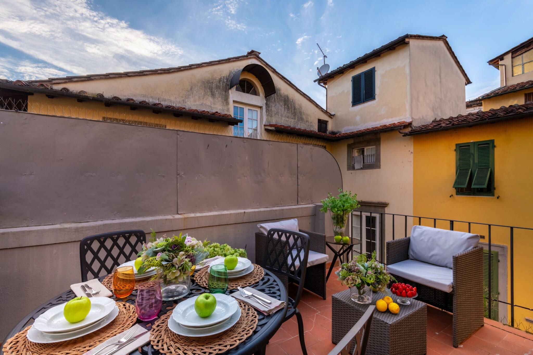 Denne rummelige og smagfuldt møblerede lejlighed på 132 m² ligger i hjertet af Lucca og tilbyder en perfekt blanding af komfort og bekvemmelighed for op til 6 gæster. Med tre veludstyrede soveværelser og et fuldt udstyret køkken er den ideel til familier eller grupper, der ønsker at udforske Toscanas charme, mens de nyder hjemmets komfort. Lejligheden ligger i et roligt område, men alligevel lige i byens centrum, i gåafstand fra Luccas historiske gader og det pulserende lokale liv. Lejligheden har moderne bekvemmeligheder, herunder aircondition i alle soveværelser, Wi-Fi, vaskemaskine og tv. Det separate gaskøkken er fuldt udstyret med køleskab, ovn, mikrobølgeovn, opvaskemaskine og små apparater som kaffemaskine, brødrister, elkedel og juicer. En privat terrasse tilbyder et fredeligt sted at slappe af efter en dag med sightseeing, og en elevator giver nem adgang til lejligheden. Beliggenheden er omgivet af en række restauranter, supermarkeder og kulturelle attraktioner og er uovertruffen. Du er kun få skridt fra busterminalen, en kort gåtur fra togstationen og inden for rækkevidde af nærliggende byer som Pisa og Firenze. Uanset om du planlægger en kulturel ferie, et kulinarisk eventyr eller et afslappende tilflugtssted, er denne lejlighed i Lucca en indbydende og veludstyret base for dit ophold. Bemærk: Turistskat skal betales på ejendommen.