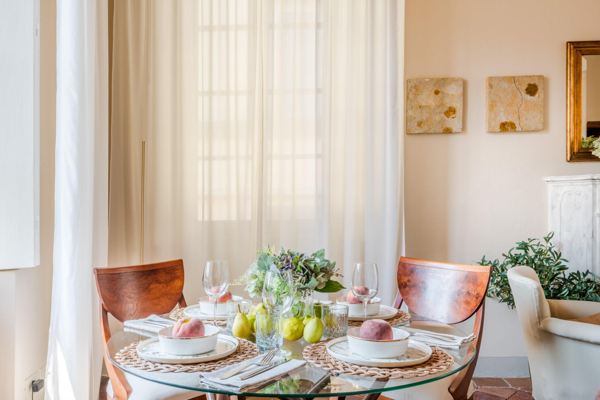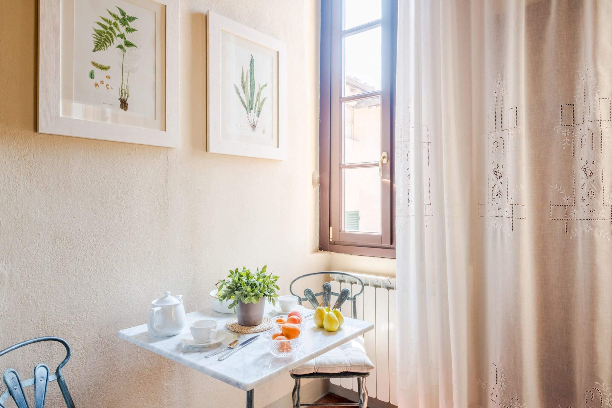 Beliggende oven på et gammelt palads i det pulserende hjerte af Lucca, tilbyder denne udsøgte lejelejlighed en virkelig fortryllende flugt med en betagende panoramaudsigt over byens charmerende hustage og de ikoniske klokketårne i historiske kirker. Lejligheden på øverste etage kombinerer mesterligt moderne design med tidløs elegance med omhyggeligt udvalgte møbler og designstykker, der fremkalder en følelse af sofistikeret komfort. Højdepunktet er en fantastisk pejs, der stammer fra 1600-tallet, og som tilføjer et strejf af historisk charme og varme til rummet - selvom den er dekorativ og ikke funktionel - hvilket skaber en atmosfære rig på historier fra fortiden. Beliggende kun få skridt fra det berømte Guinigi-tårn og den maleriske Piazza San Martino, placerer denne bolig dig i hjertet af Luccas kulturelle og historiske billedtæppe. Lejlighedens førsteklasses beliggenhed sikrer nem adgang til vigtige transportknudepunkter, herunder busterminalen og togstationen inden for kort gåafstand, hvilket gør daglige udflugter til nærliggende skatte ubesværede. Gå udenfor for at opdage et livligt kvarter fyldt med lokale delikatesseforretninger, bagerier og markeder, der tilbyder friske råvarer, oste og frugter - perfekt til at fordybe dig i autentiske toscanske smagsoplevelser og lokalt liv. Denne romantiske oase På tredje sal er der mere end blot et sted at bo; det er et fristed, hvor historie, elegance og moderne komfort smelter sammen. Med en indbydende entré, en hyggelig stue med spiseplads, fuldt udstyret køkken, soveværelse og badeværelse, skaber den en inspirerende kulisse for uforglemmelige minder. Uanset om du udforsker Luccas middelalderlige gader eller nyder et stille øjeblik med en betagende udsigt, inviterer denne lejlighed dig til at opleve byens tidløse magi i helt særlige omgivelser. Bemærk: Turistskatten skal betales på ejendommen.