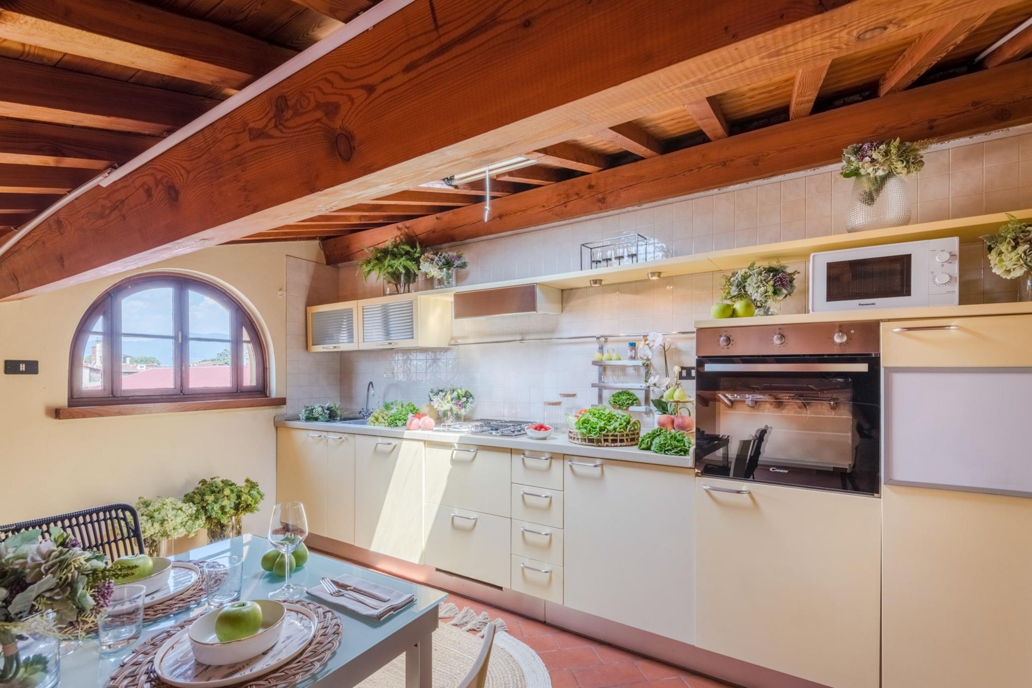 Oplev denne charmerende lejlighed med 1 soveværelse i hjertet af Lucca, perfekt til op til to gæster, der søger komfort og bekvemmelighed. Den smagfuldt møblerede lejlighed på 90 m² tilbyder et hyggeligt, men rummeligt tilflugtssted, fuldt udstyret med moderne bekvemmeligheder, herunder Wi-Fi, aircondition, vaskemaskine og et fuldt uafhængigt køkken med induktionskogeplade, køleskab, mikrobølgeovn, ovn, opvaskemaskine og alt det nødvendige for et problemfrit ophold. Den centrale beliggenhed placerer dig kun få skridt fra det pulserende byliv, med Lucca togstation kun 850 meter og busterminalen blot 270 meter, hvilket gør udforskning ubesværet. Beliggende midt i et livligt kvarter finder du et udvalg af restauranter i gåafstand - fra traditionelle trattoriaer som La Linea Ristorante og Osteria Tosca til afslappede steder som Umberto Pizza og Gigliola. Supermarkeder som Conad City og Pam Local ligger i nærheden for dine indkøbsbehov, mens kulturelle og naturlige attraktioner venter i nærheden - nyd naturskønne søer kun 17 km væk, den historiske by Pisa 19 km væk og fantastiske strande ved Viareggio og Lido di Camaiore inden for 30 km. For fritidsaktiviteter kan du udforske Pinocchio Park, de termiske kilder ved Grotta Giusti eller forkæle dig selv med en runde golf på Forte dei Marmi Golf Club. Beliggende i et fredeligt, men centralt område i Lucca, tilbyder denne lejlighed en rolig oase omgivet af byens rige historie og pulserende livsstil. Med en elevator for nem adgang, et komfortabelt boligmiljø og nærhed til vigtige attraktioner og transportforbindelser er den ideel for rejsende, der er ivrige efter at fordybe sig i toscansk kultur, mens de nyder moderne komfort. Uanset om du udforsker de middelalderlige mure, nyder lokal mad eller slapper af på de nærliggende strande, er denne ejendom en perfekt base for et mindeværdigt ophold. Bemærk: Turistskatten skal betales på ejendommen.