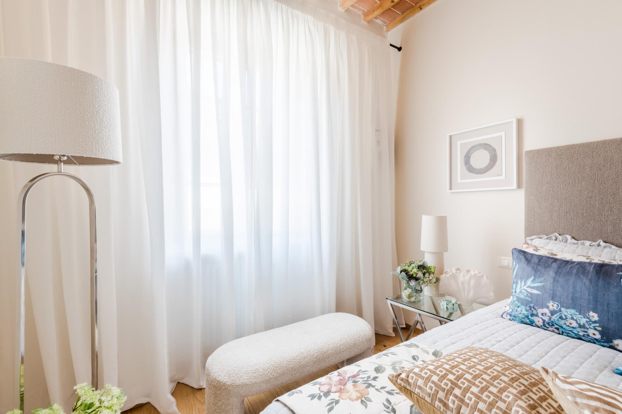 Beliggende inden for Luccas historiske mure tilbyder denne smukke lejlighed på anden sal et fredeligt toscansk tilflugtssted. Beliggende langs den livlige Via Michele Rosi, har den udsigt over en rolig have med frodige grønne områder og et majestætisk gammelt træ. Det renoverede hjem med to soveværelser og to badeværelser udstråler ro med en beroligende farvepalet, der forbedrer rummeligheden. Elegante møbler og moderne apparater sikrer komfort, mens en åben trappe tilføjer charme - ideelt for familier, der rejser med børn. Beliggenheden giver nem adgang til Toscanas højdepunkter med nærliggende parkering og en busterminal. Udforsk de bølgende Chianti-bakker, det historiske Firenze eller den naturskønne kyst med bekvemmelighed. Det pulserende kvarter er et paradis for madelskere med købmandsforretninger, delikatesseforretninger, caféer, gelato-butikker, pizzeriaer, barer og ostebutikker - perfekt til at opleve autentiske toscanske smagsoplevelser. Planlægningen omfatter en entré, opholds- og spisestue, et køkken, vaskerum/opbevaringsrum, to soveværelser og to badeværelser med brusere. Den åbne trappe tilføjer karakter og funktionalitet, hvilket gør denne lejlighed perfekt til komfortable ophold eller mindeværdige besøg. Oplev den harmoniske blanding af historie og modernitet, hvor Luccas charme og Toscanas magi bliver en del af din hverdag. Bemærk: Turistskat skal betales på ejendommen.