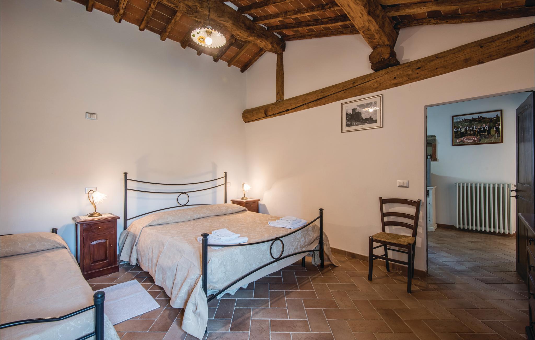 Der er udendørstrappe mellem stueetage og første sal. Ideelt til afslapning, badning og vandreture, for eksempel til middelalderbyen Lucignano, hvor der er meget at se og smage på. Udflugtsmål i kort afstand: Siena, Arezzo, Montepulciano, Pienza og Trasimenosøen. Ikke asfalteret tilkørsel.