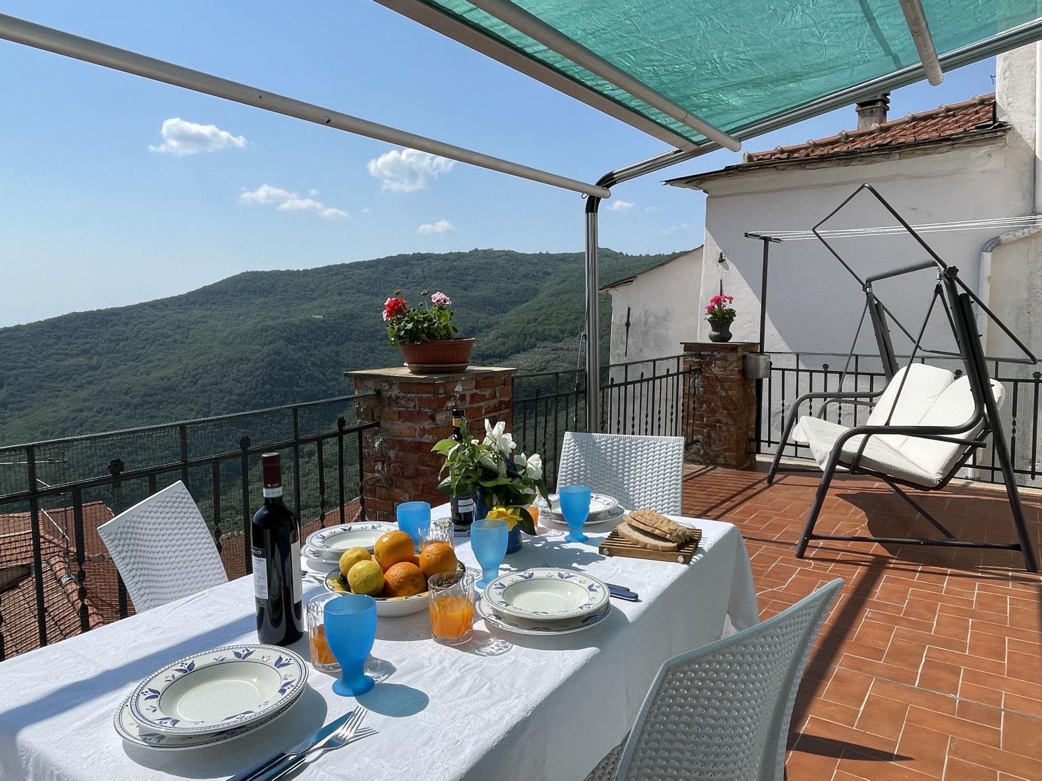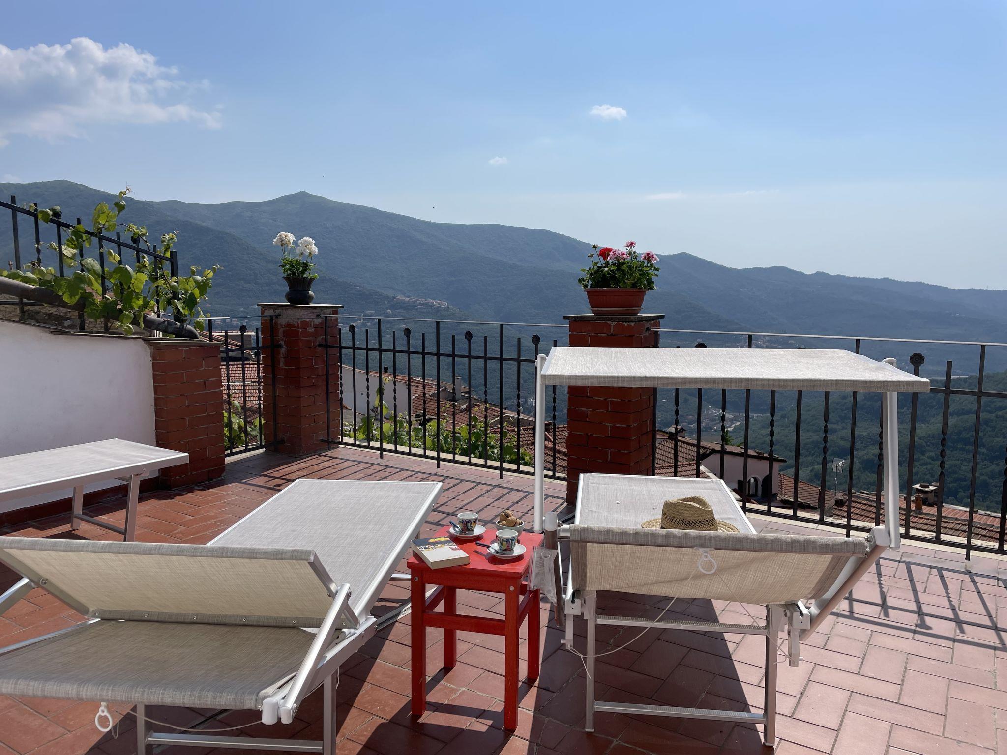 Beautiful single-family house "Casa Sylvie", terraced, renovated. In the centre of Lucinasco, 18 km from the centre of Imperia, 7 km from the centre of Borgomaro, in an elevated position, excellent location: right in the centre but still quiet, 18 km from the sea, in a pedestrian area. Public parking 10 m. Grocery 50 m, shopping centre 18 km, restaurant 100 m, bar, bakery 50 m, bus stop 100 m, railway station 18 km, sandy beach 18 km, bathing lake "Borgomaro" 7 km. Children's playground 100 m. Please note: car recommended. Local sale of farm products. Loading and unloading of baggage is possible at the holiday house.