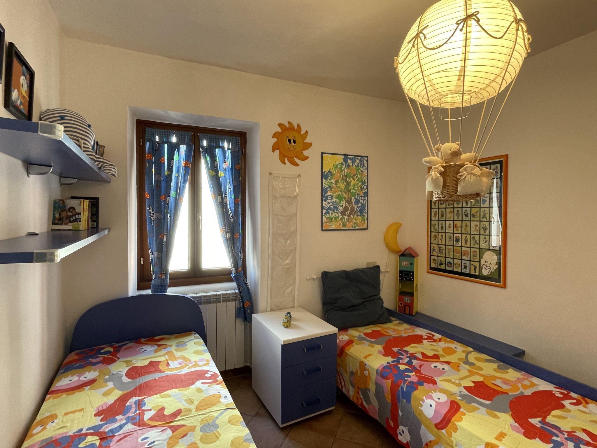 3-room terraced house 85 m2 on 2 levels. Bright, fully renovated, comfortable and tasteful furnishings: living/sleeping room with 1 double sofabed (1 x 160 cm), Scandinavian wood stove, satellite TV and international TV channels. Open kitchen (oven, dishwasher, 4 induction hot plates, toaster, kettle, freezer, electric coffee machine) with dining table and tiled stove. Exit to the terrace. Shower/bidet/WC. Wood heating, air-conditioning. Upper floor: 1 room with 1 double bed (1 x 160 cm). Exit to the terrace. 1 room with 1 x 2 bunk beds (80 cm). Shower/bidet/WC. Terrace 20 m2, terrace 15 m2. Terrace furniture, deck chairs (4), sitting area. Panoramic view of the sea, the mountains and the resort. Facilities: washing machine, iron, mosquito net, children's high chair, baby cot, hair dryer. Internet (WiFi). Please note: smoke alarm, fire extinguisher. IT008033C2PSJ3BYSX
