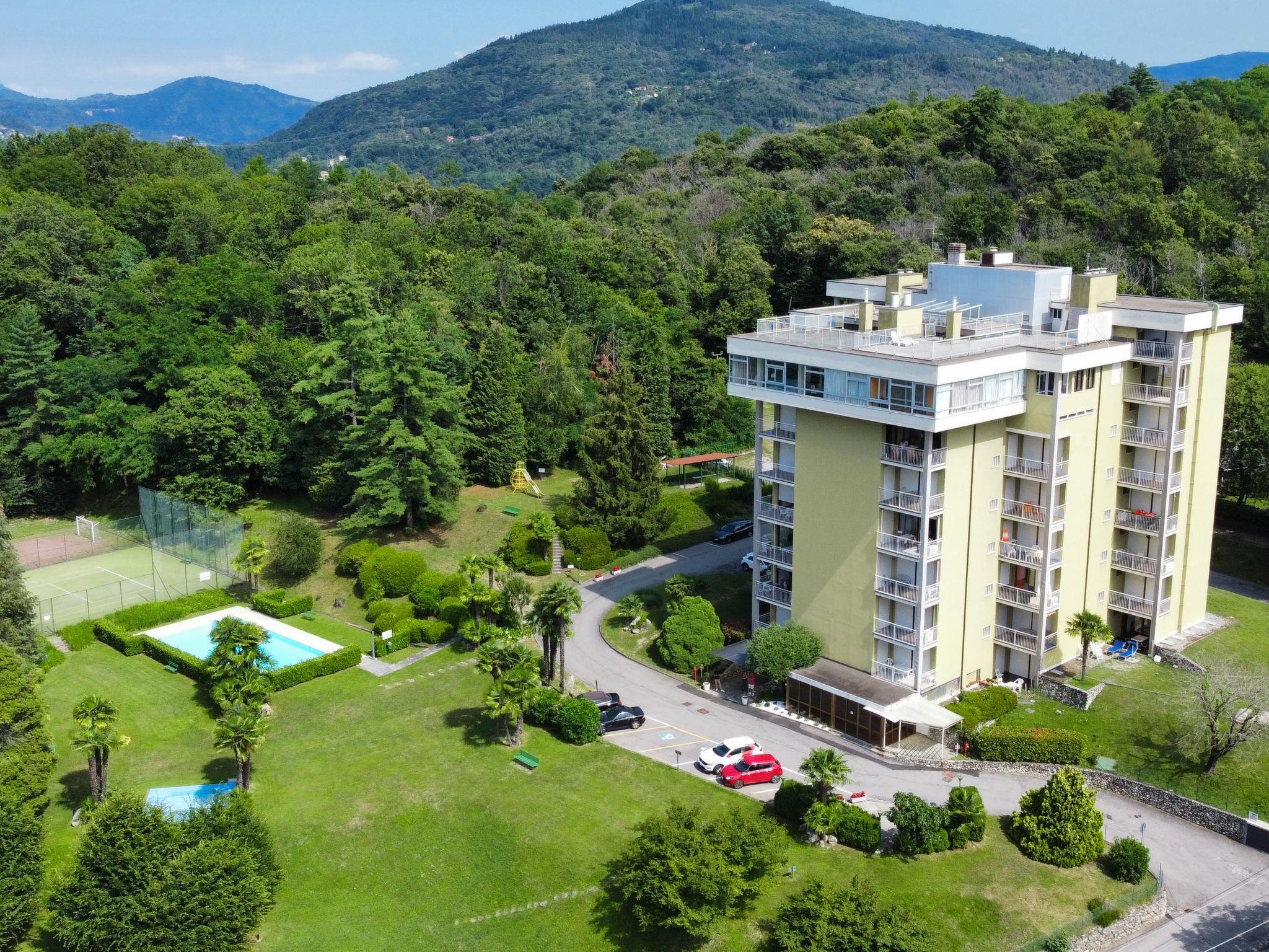 Germignaga 2 km from Luino: Large residence "Euroville", 8 storeys. 60 apartments in the residence. Above Germignaga, in an elevated position in the residential district, 1.5 km from the lake. For shared use: property, well-kept garden with lawn and trees, swimming pool (15 x 7 m, seasonal availability: 01.Jun. - 30.Sep.). Outdoor shower, tennis, table tennis, children's playground, pool maintenance by the owner/gardener. In the house: lift, roof terrace. Parking on the premises. Supermarket 1.5 km, restaurant 1.3 km, bar 1.3 km, bus stop 1.5 km, railway station "Luino" 2.5 km, pebble beach 1.5 km, indoor swimming pool 3 km. Golf course (18 hole) 18 km. Please note: car recommended.