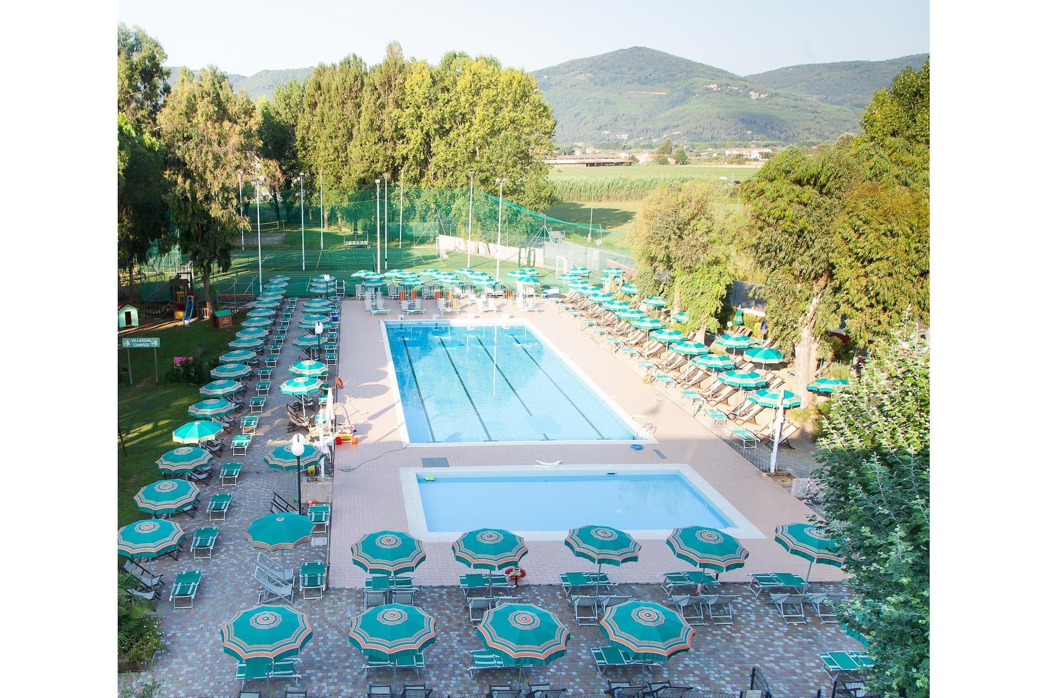 Residence Italia er beliggende i smukke grønne omgivelser i udkanten af det arkæologiske område Luni Mare, beliggende mellem foden af de toscanske alper og den liguriske kyst. Det velholdte lejlighedskompleks ligger i en privat park på cirka 7.000 m² med skyggefulde eukalyptus-, fyrre- og poppeltræer – et ideelt tilflugtssted for familier, der ønsker at kombinere afslapning med nærhed til stranden. Komplekset er roligt beliggende, omkring 900 meter fra havet og strandene. Byens centrum med barer og restauranter ligger kun 200 meter væk, og en togstation og større butikker er omkring seks kilometer væk. Lejlighederne er komfortabelt indrettede og har alle balkon, badeværelse med bruser eller badekar og toilet, satellit-tv, direkte telefon, hårtørrer og et lille tekøkken med el-ovn og gaskomfur. Lejligheden byder på cirka 45 m² boligareal og består af et soveværelse med dobbeltseng og en rummelig stue med en sofa, der kan laves om til to enkeltsenge. Boligen kombinerer at bo tæt på naturen med nærhed til stranden og er særdeles velegnet til familier med børn, der søger både ro og underholdning på deres ferie.