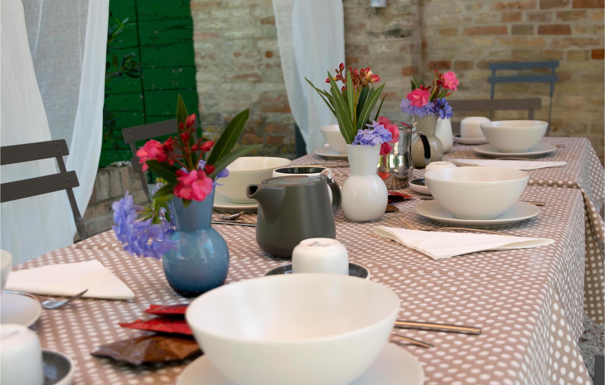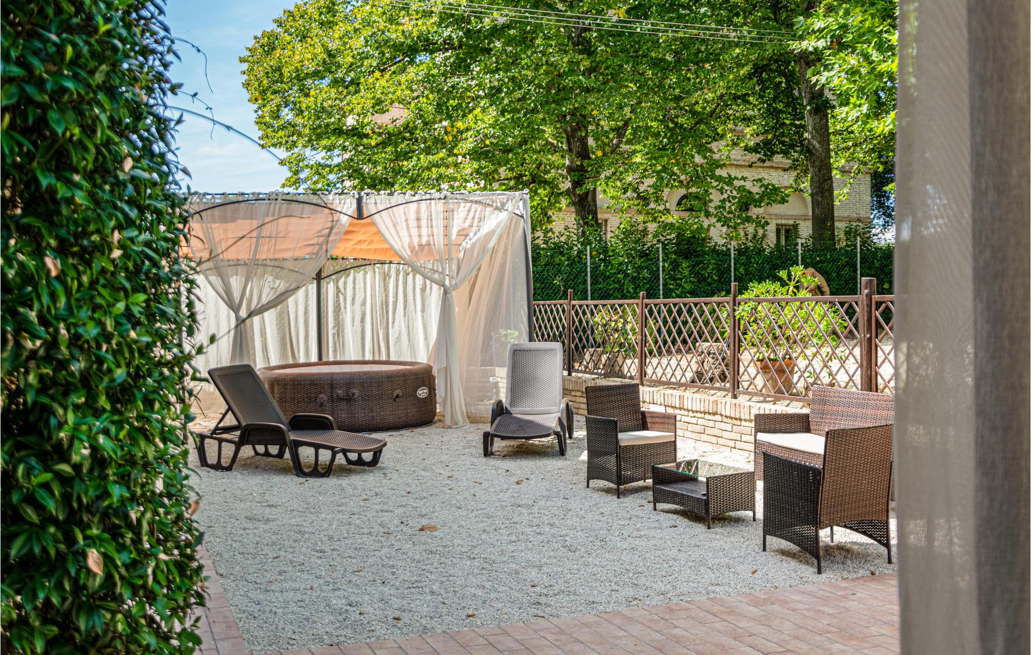 Nyd en afslappet morgenmad eller middag under åben himmel, omgivet af platantræernes blide skygge. Bagefter kan I slappe af i det varme spabad og mærke, hvordan havens ro fuldstændigt beroliger jer. Brug tid på at slappe af på liggestolene eller i pavillonerne og nyd blot den fredelige atmosfære under åben himmel.