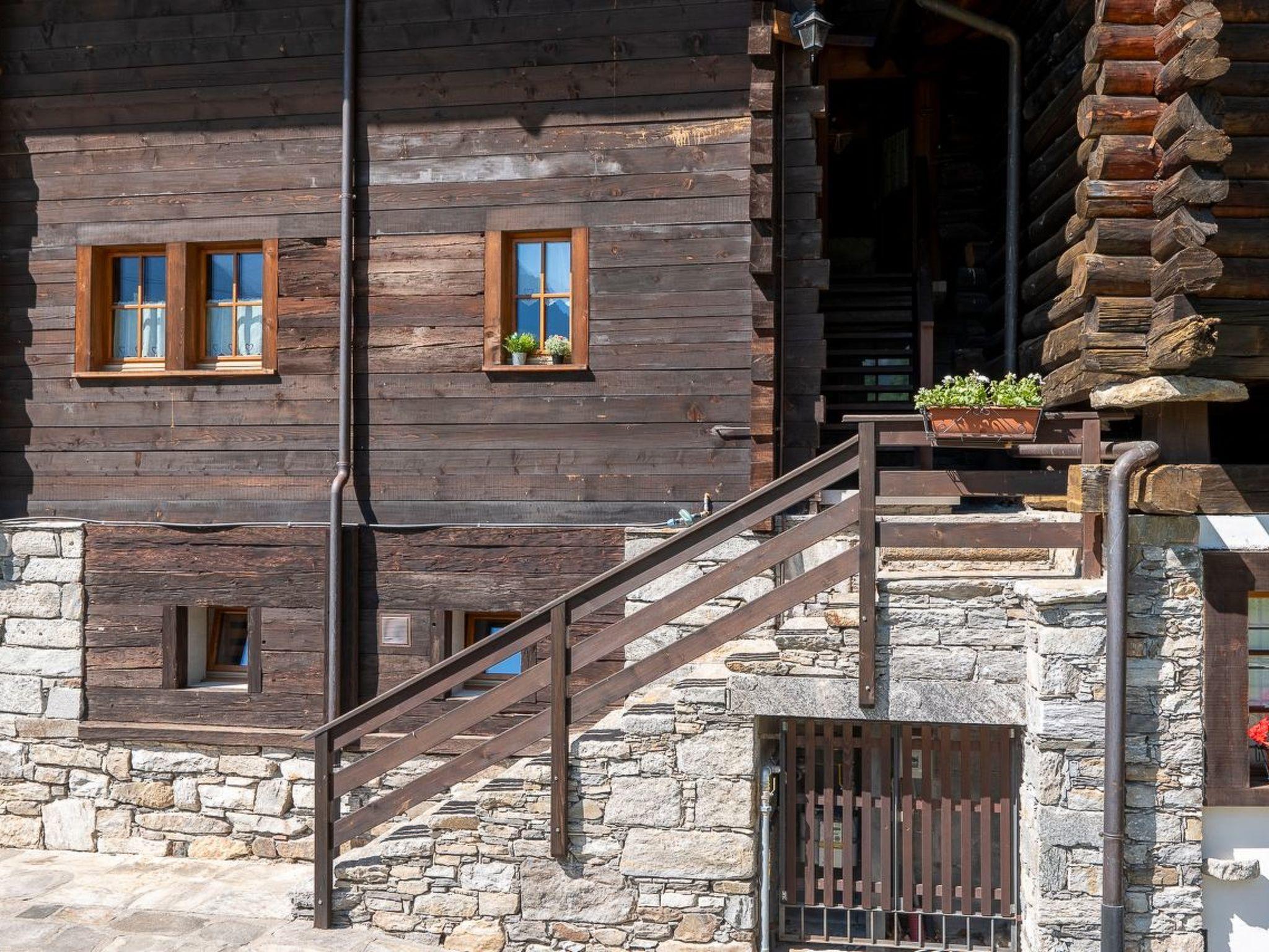 Typical Walser architecture: the base of the building is made of stone (it was usually used as a stable for animals and/or storage) while the upper part, built of wood, was used as a real home.