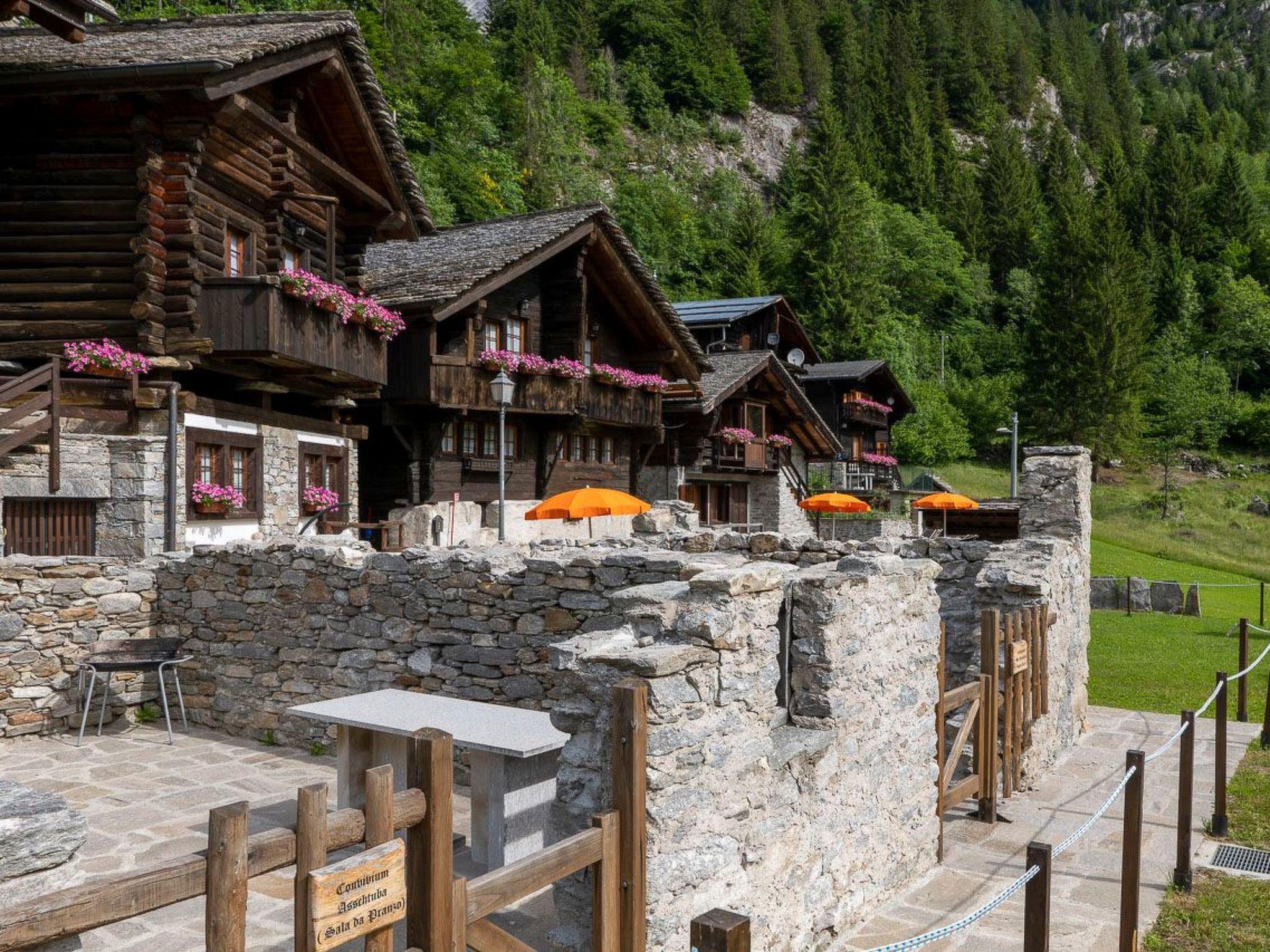 An old Walser village in a quiet location and surrounded by greenery formed by a grouping of Walser houses.