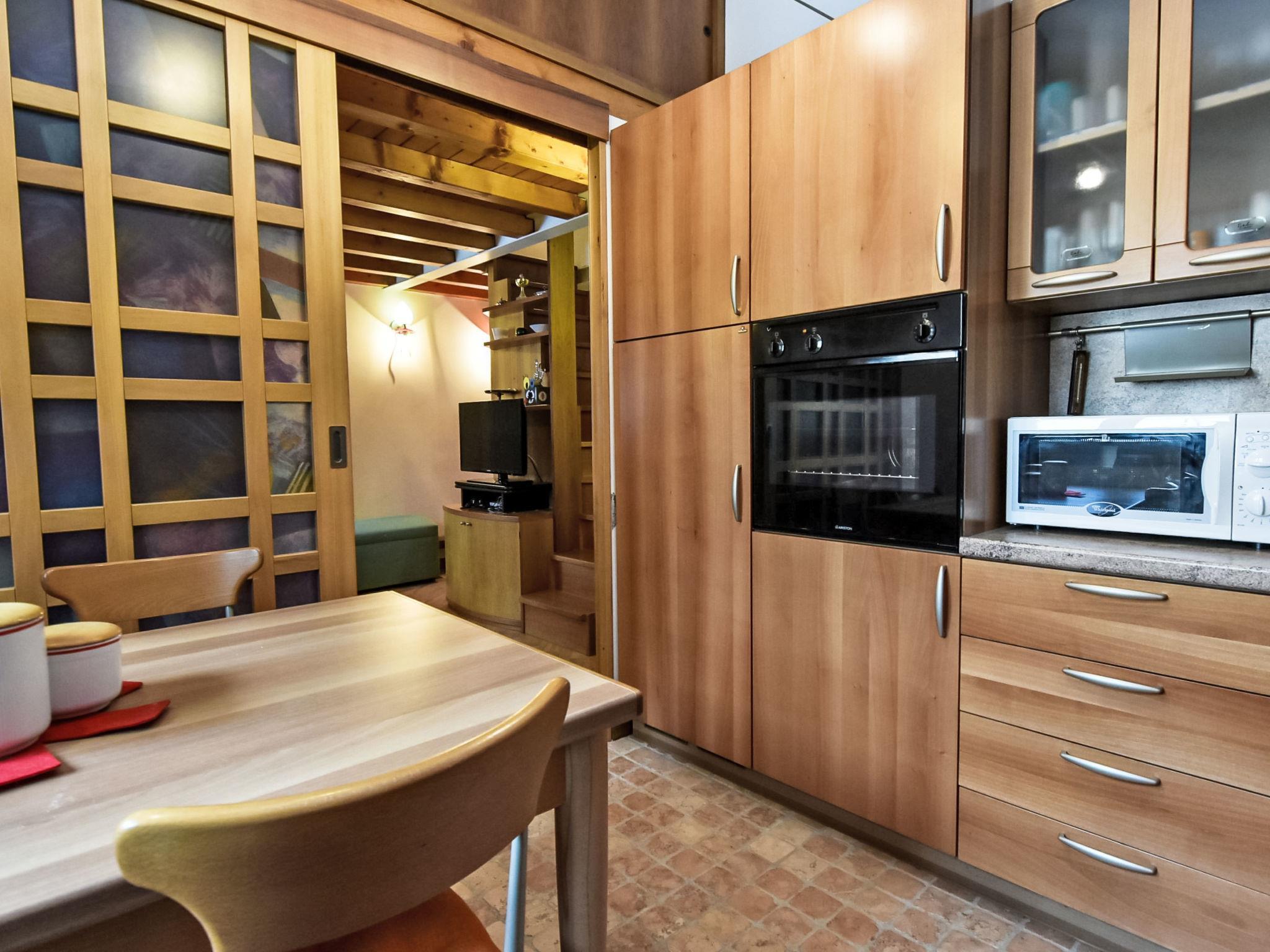 3-room apartment 60 m2 on 2 levels on 3rd floor. Practical and comfortable furnishings: living/sleeping room with 1 double sofabed (120 cm, length 180 cm), TV. 1 double bedroom with 1 double bed (160 cm, length 200 cm), TV. Kitchen (oven, toaster, kettle, microwave, electric coffee machine, Capsules for coffee machine (Nescafè Dolcegusto) free) with dining table. Bath/bidet/WC. Heating, boiler (100 litres). Upper floor: (steep stair), 1 room with sloping ceilings with 1 french bed (130 cm, length 200 cm). View of the mountains, the valley and the forest. Facilities: washing machine, children's high chair, baby cot, hair dryer. Internet (WiFi, free). Please note: non-smokers only. IT014035B45FICUWZX