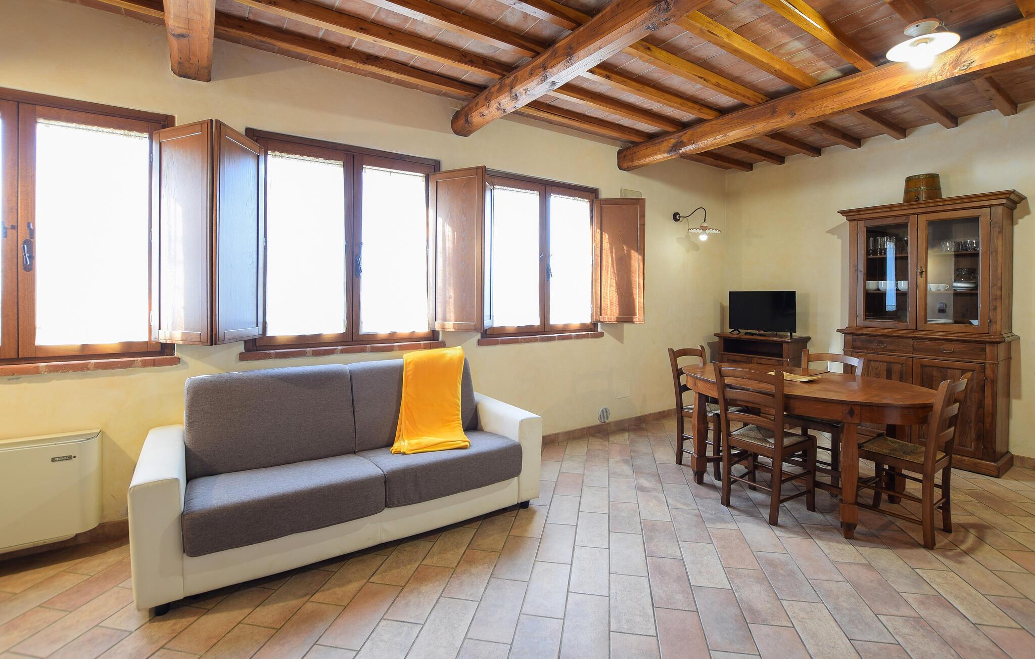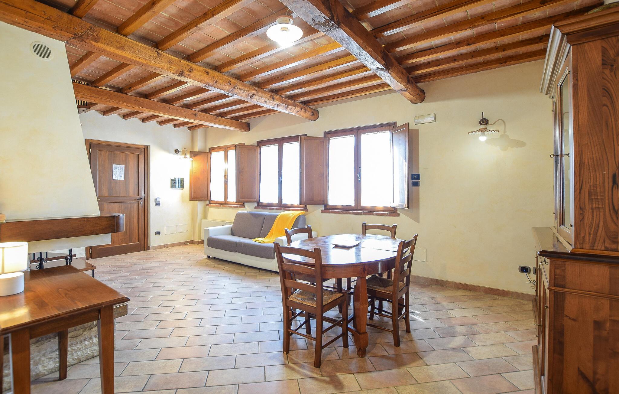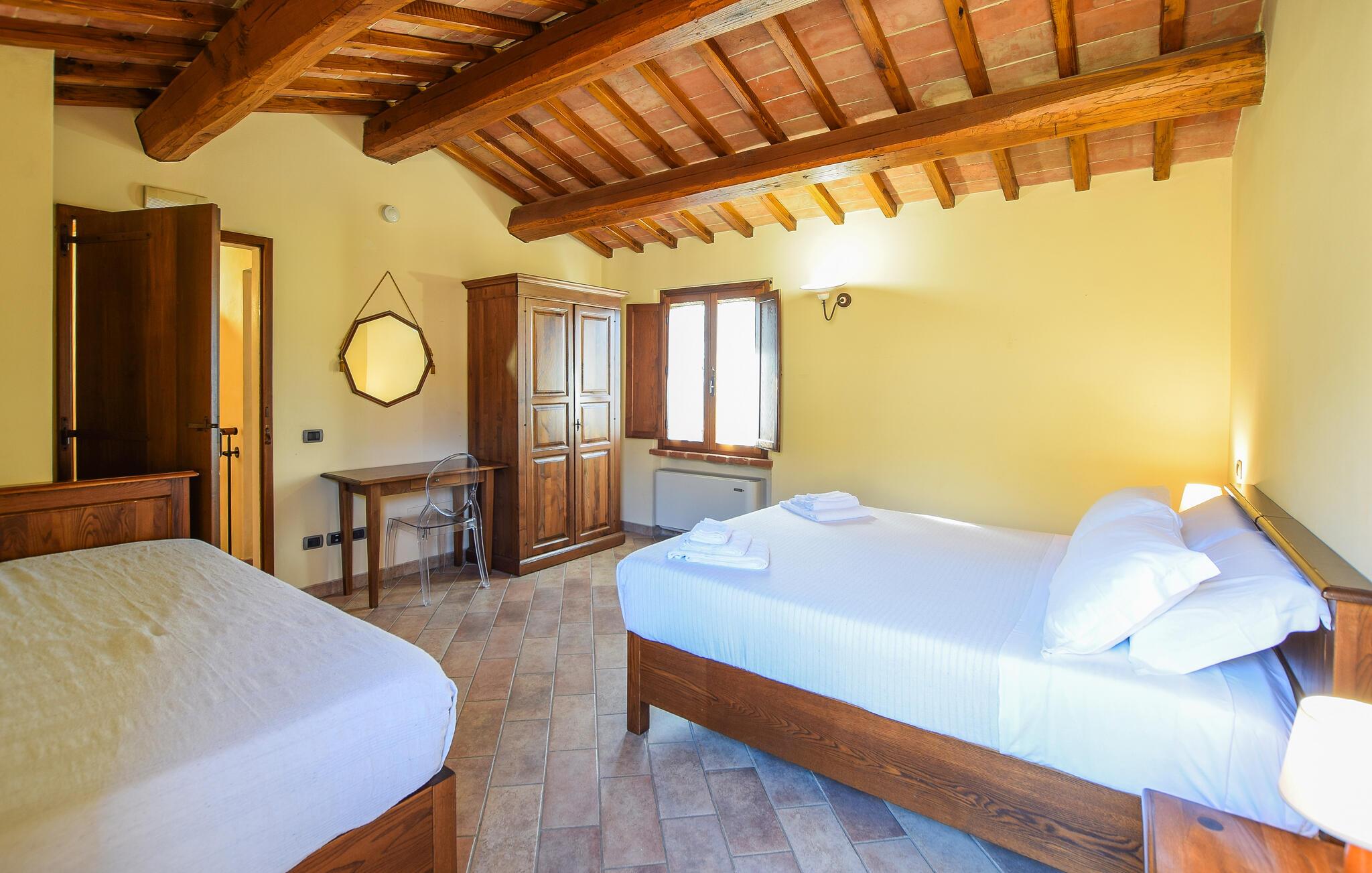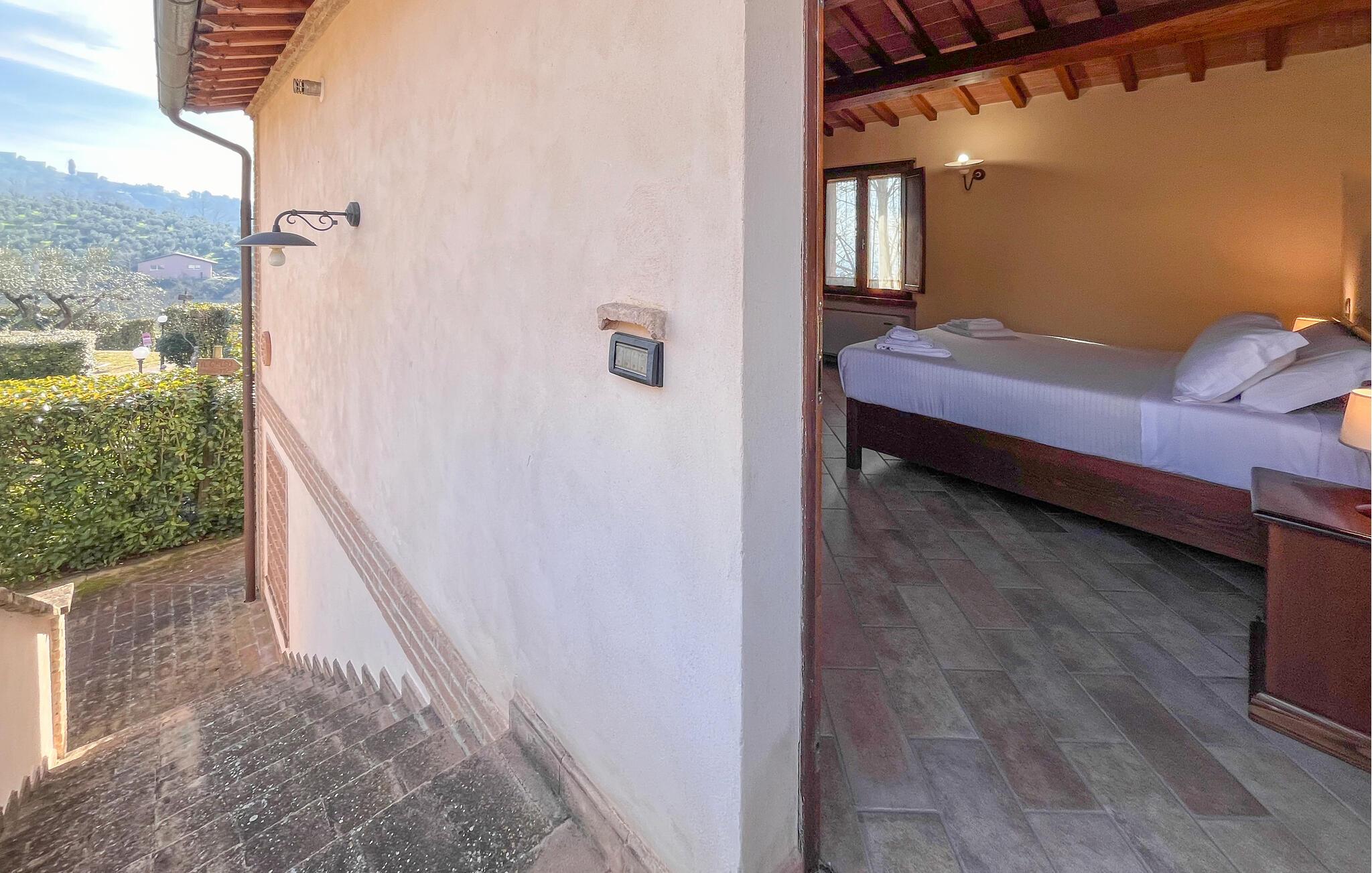Denne flotte villa ligger smukt placeret i Italiens grønne hjerte, blot et par kilometer fra Trasimeno-søen. Boligen emmer af varme og en rustik atmosfære, hvor I ikke kan undgå at slappe og hygge jer med familien. I den åbne stue kan I nyde dagens måltider, og udendørs står den på rendyrket nydelse. Børnene kan boltre sig på deres private legeplads, mens I lægger jer godt til rette i liggestolene med udsigt over Umbriens frodige landskab. Når børnene har leget sig trætte, kan de køle sig ned og plaske rundt i den forfriskende pool.