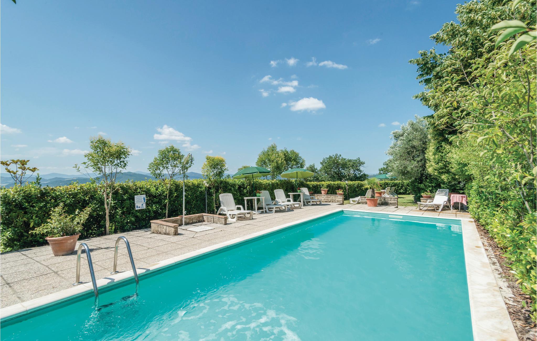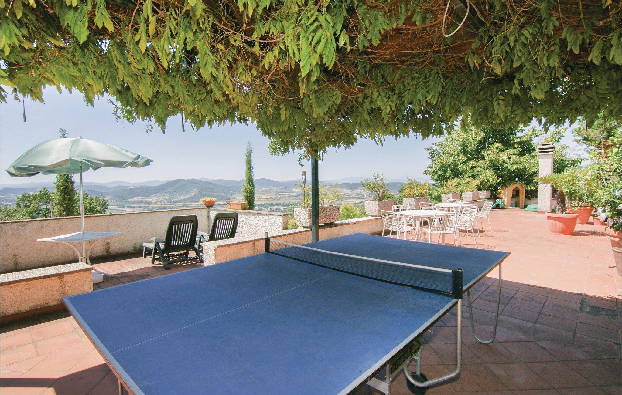 Hyggelig ferielejlighed med panoramabeliggenhed 6 km fra Trasimenosøen. Lejligheden ligger i en del af en villa med swimmingpool, i et boligområde på en bakke, omgivet af andre villaer og olivenlunde; på samme ejendom ligger også IUT255 (støder op til denne bolig) og IUT239 (100 m væk). Gæsterne har en veranda ved siden af poolen, hvor I kan nyde dagens måltider i den friske luft med storslået udsigt over dalen. Til fælles brug: muret grill, , tennisbane og have med havemøbler og en legeplads for børn. Et besøg værd: Trasimenosøen, Perugia (19 km), Assisi (40 km), Gubbio (50 km) – alle med en rig historie, mange former for kultur og ikke mindst gode spisesteder hvor I kan nyde de lokale lækkerier og gode vine. Parker på grunden der er lukket af med automatisk port.