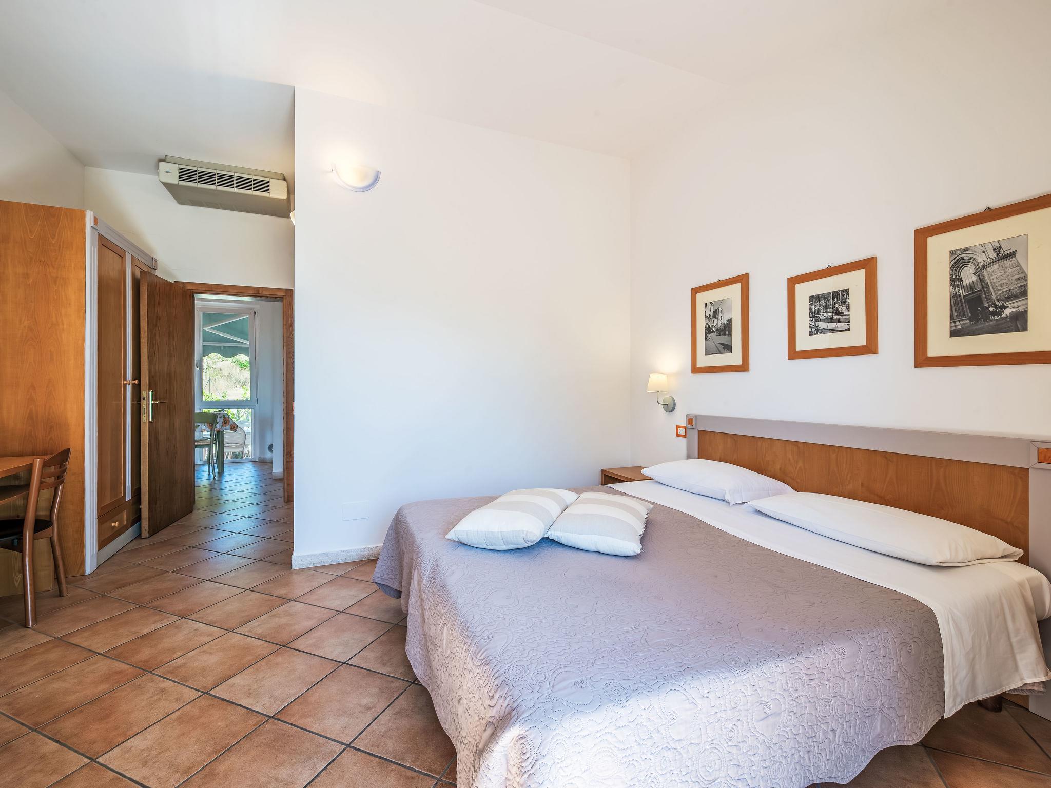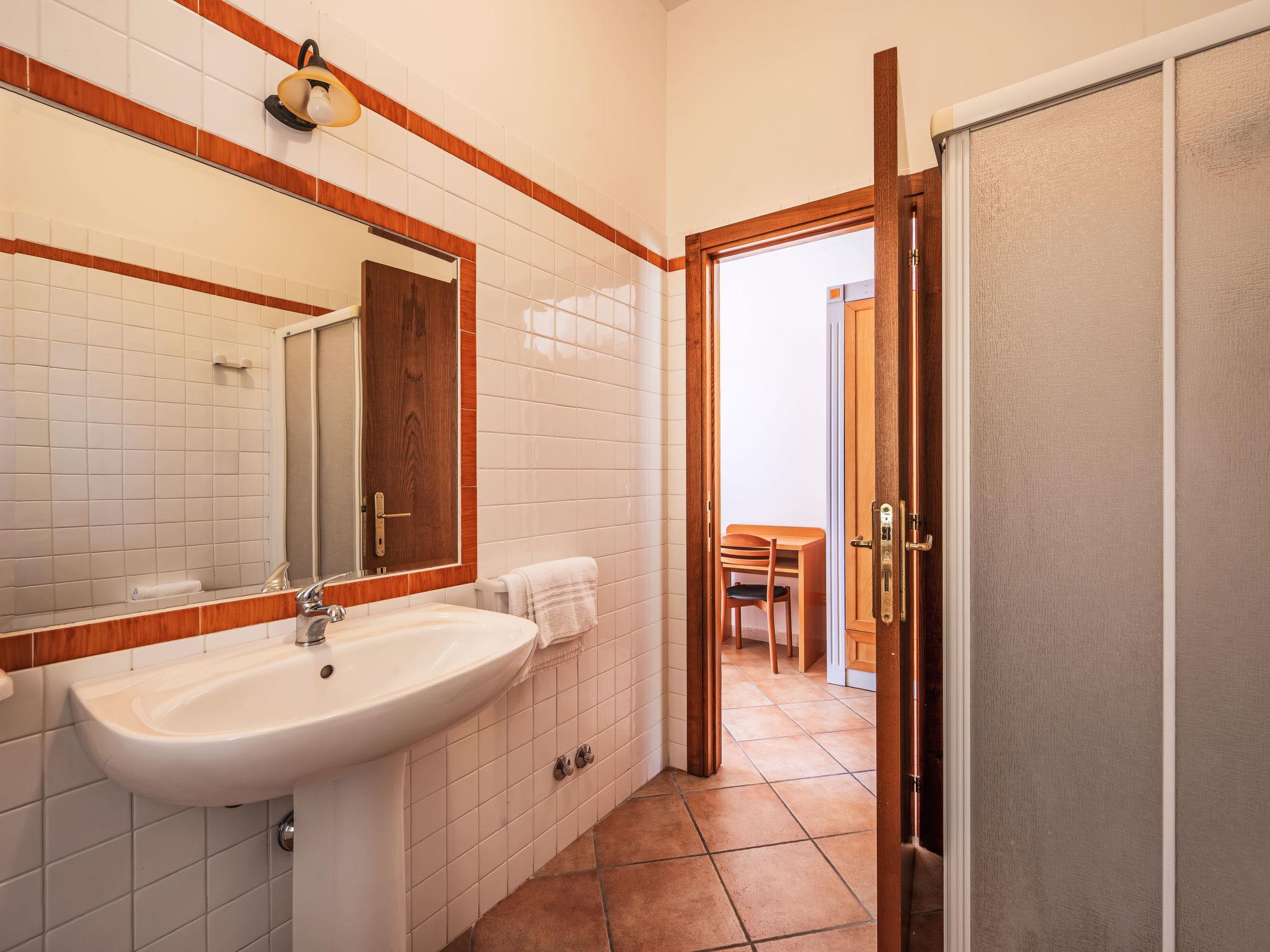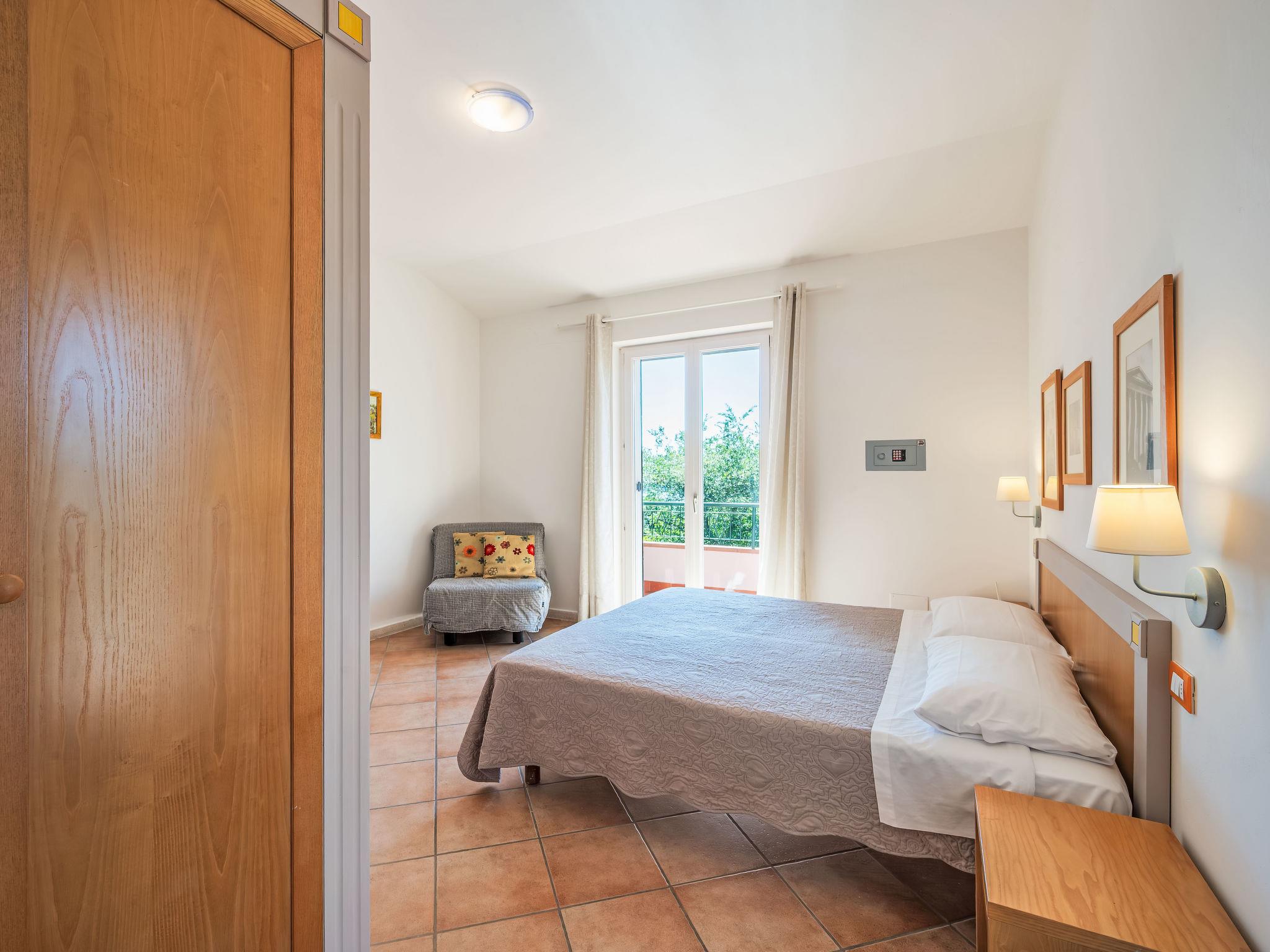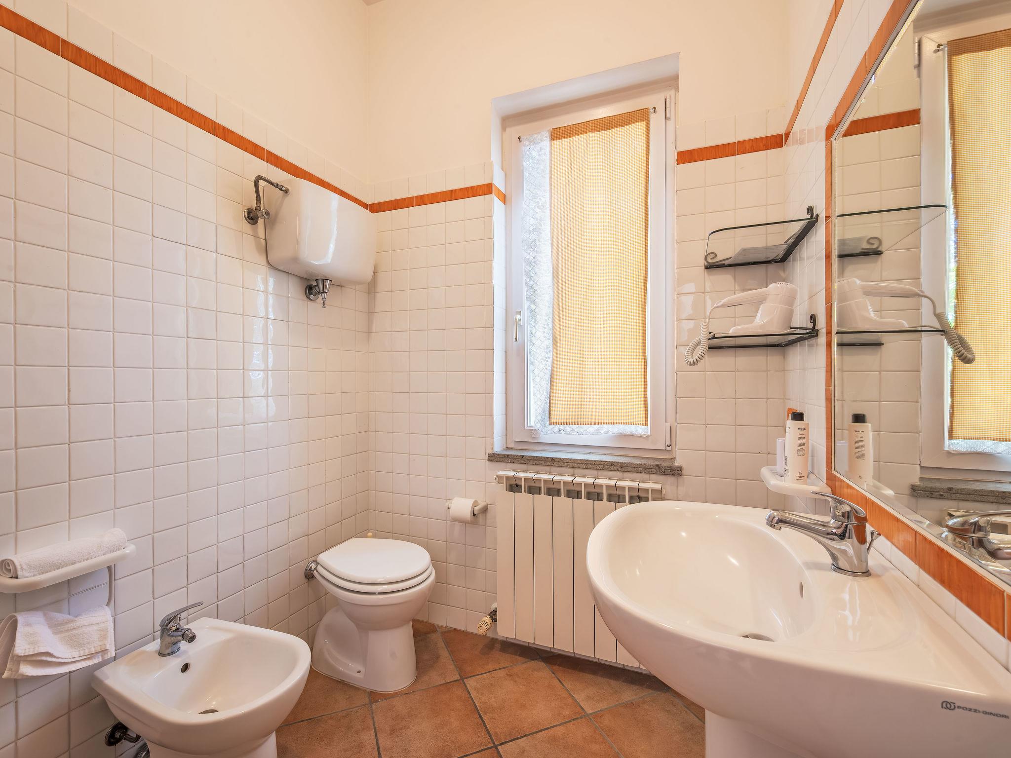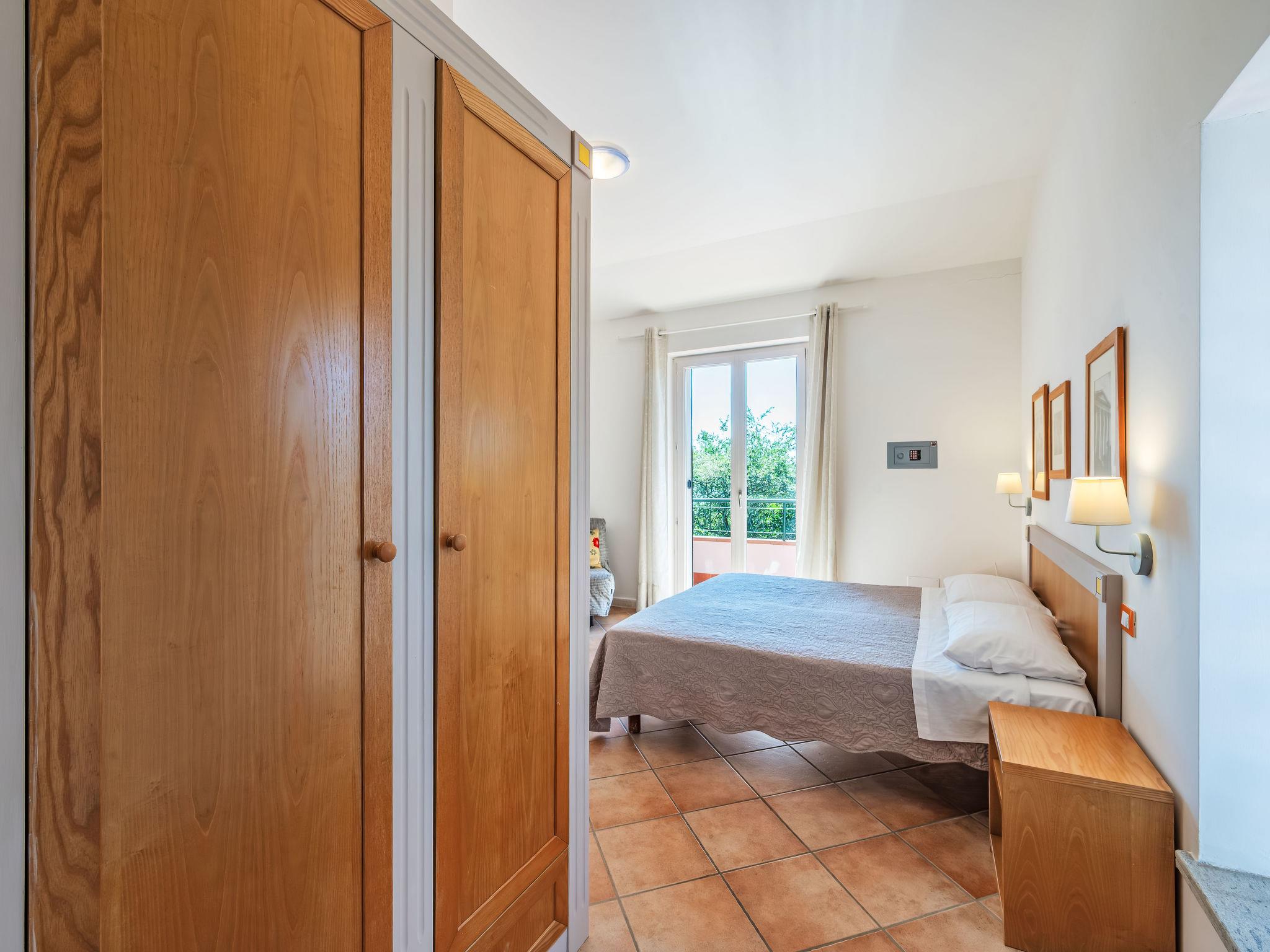 3-room apartment 55 m2, on the upper ground floor. Practical and comfortable furnishings: living/dining room with kitchen corner and TV (flat screen). Exit to the garden, to the terrace. 2 double bedrooms, each room with shower/bidet/WC. Exit to the balcony. Kitchenette (2 hot plates, microwave). Gas heating, air-conditioning. Heating available only from 08.11. to 15.04. Partial view of the lake. Facilities: mosquito net, hair dryer. Internet (WiFi). Maximum 1 pet/ dog allowed. IT054026B404005389