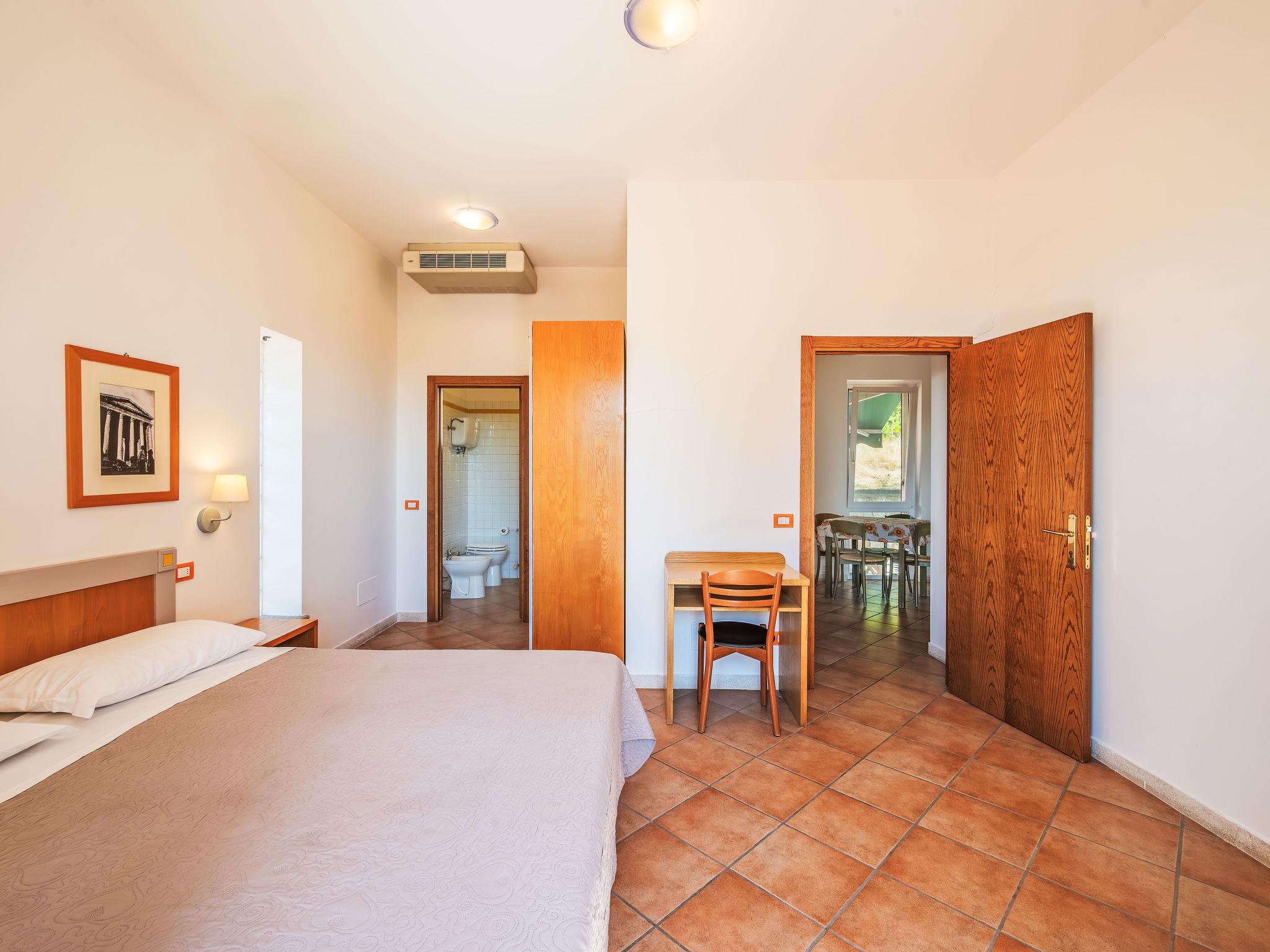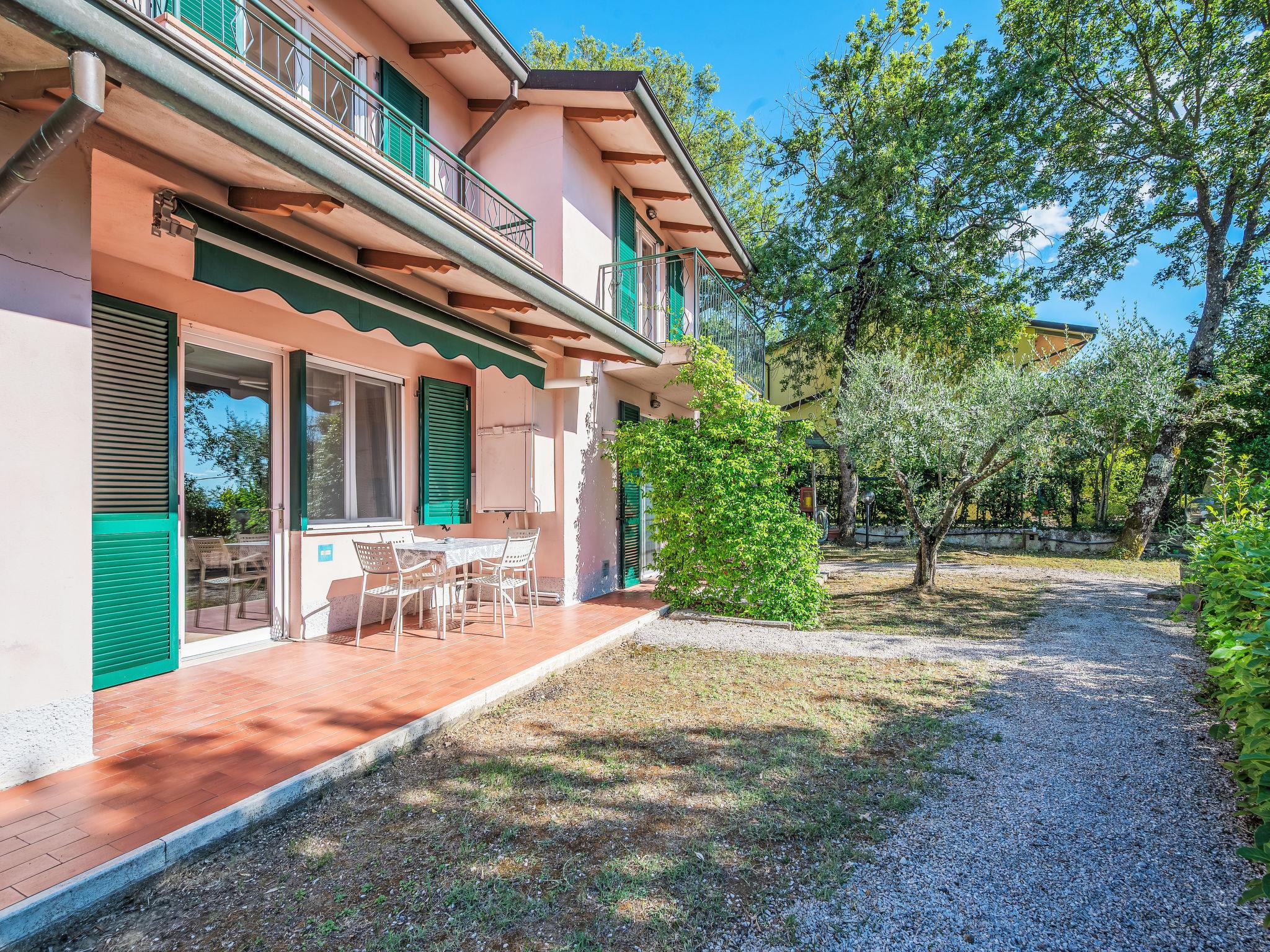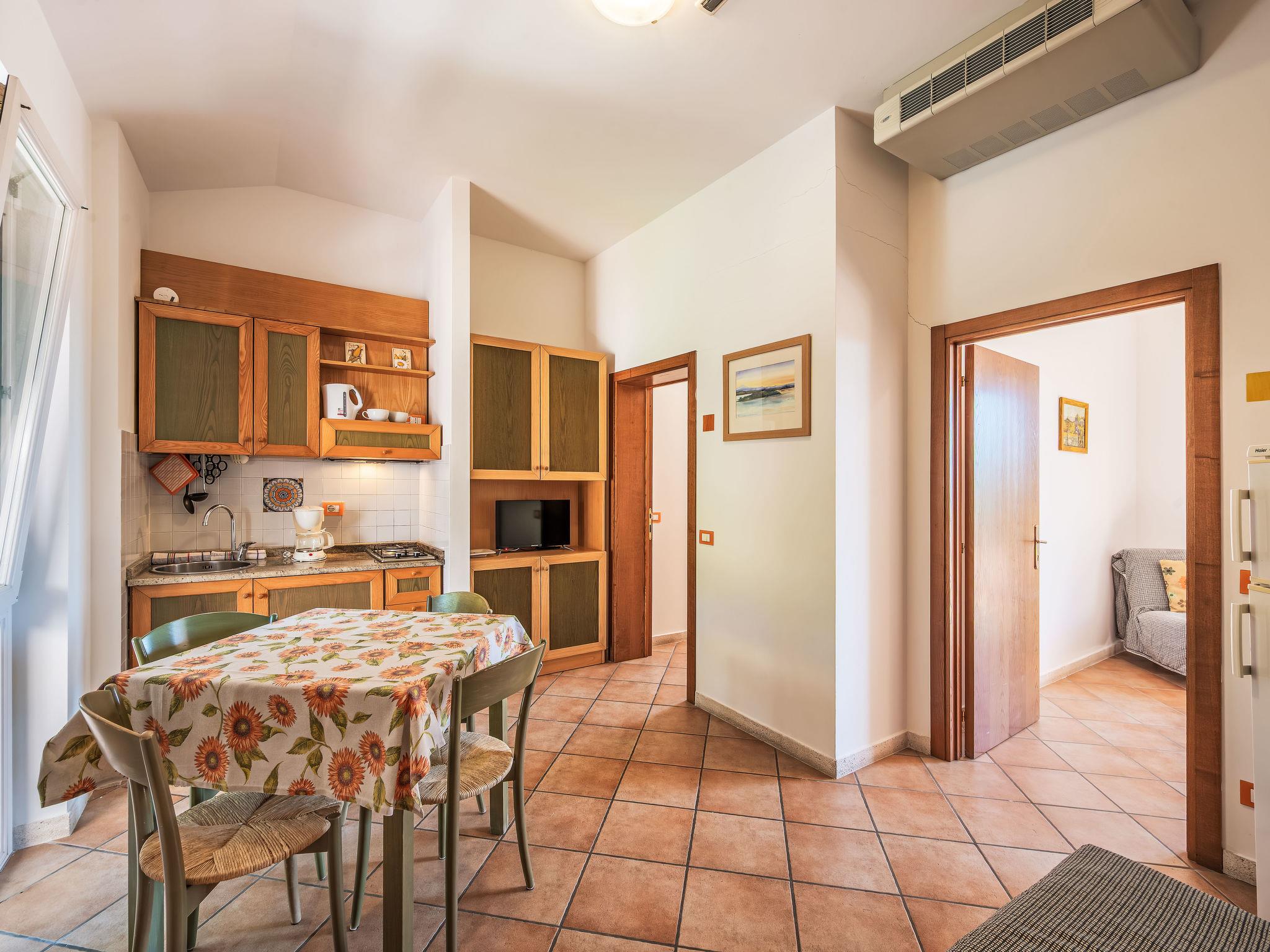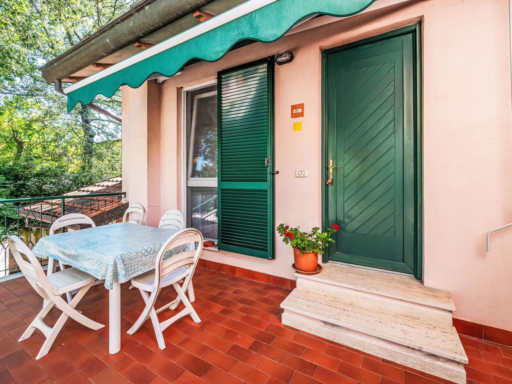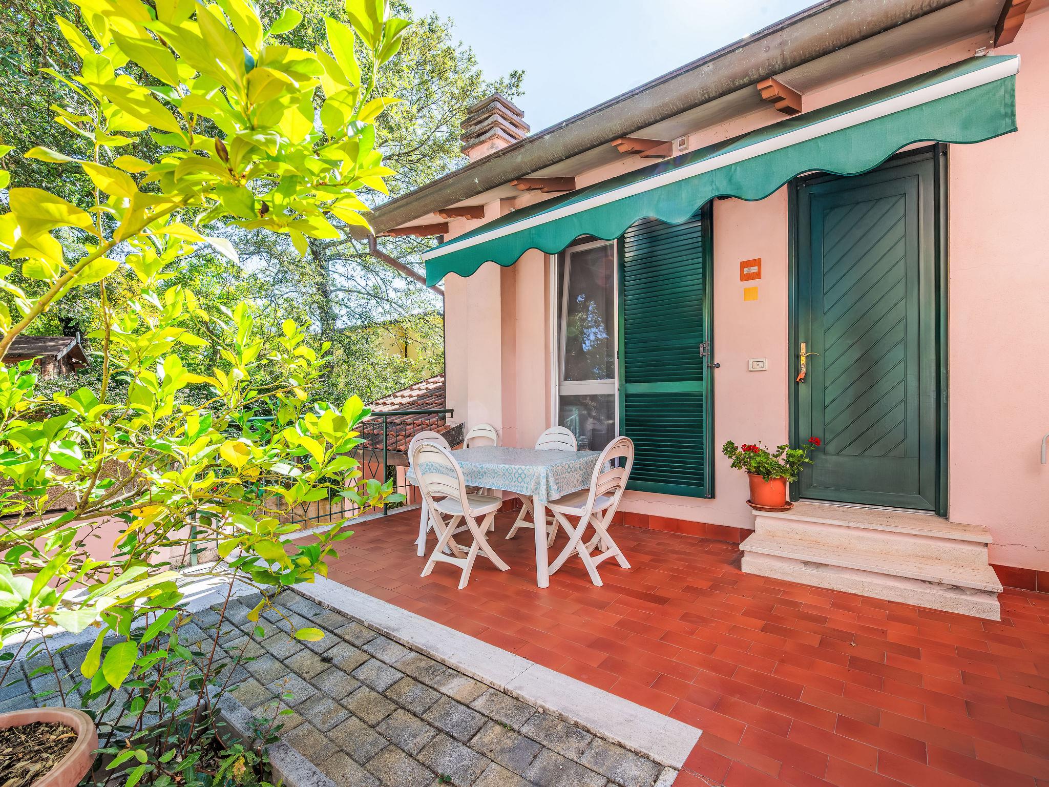 3-room apartment 55 m2, on the upper ground floor. Practical and comfortable furnishings: living/dining room with kitchen corner and TV (flat screen). Exit to the garden, to the terrace. 2 double bedrooms, each room with shower/bidet/WC. Exit to the balcony. Kitchenette (2 hot plates, microwave). Gas heating, air-conditioning. Heating available only from 08.11. to 15.04. Partial view of the lake. Facilities: mosquito net, hair dryer. Internet (WiFi). Maximum 1 pet/ dog allowed. IT054026B404005389