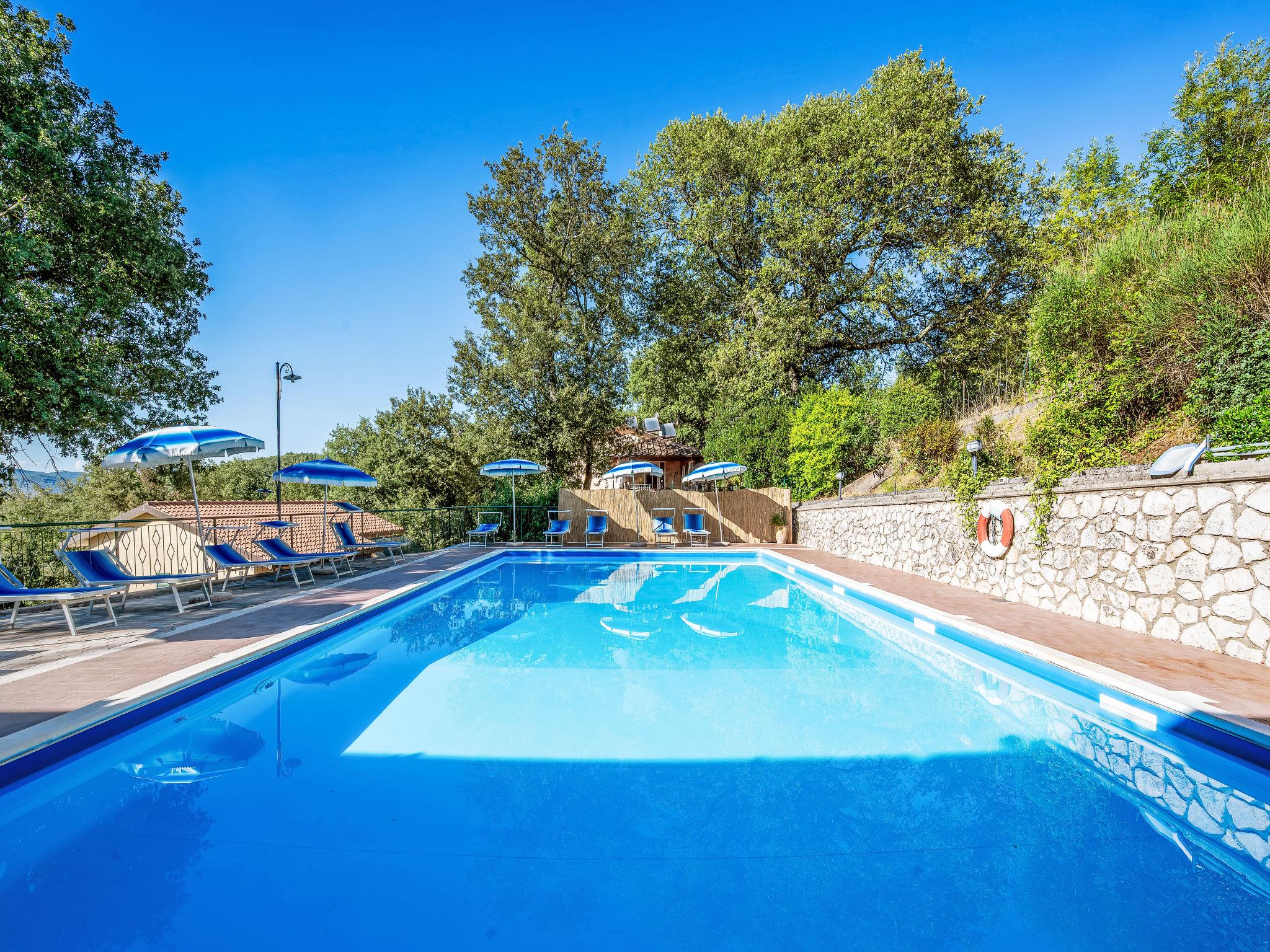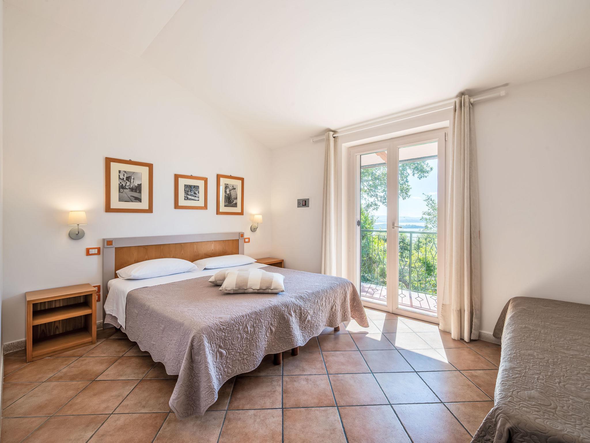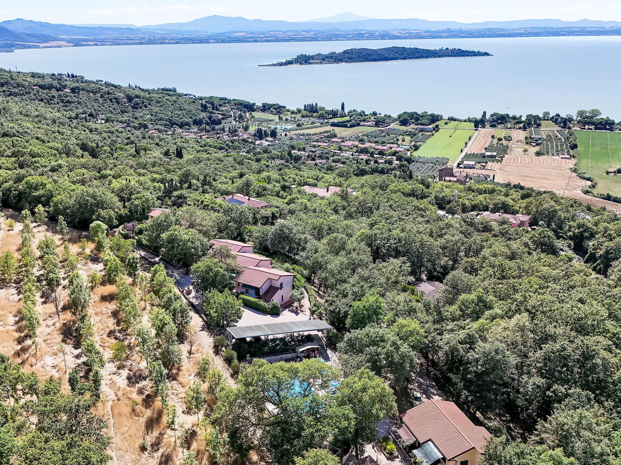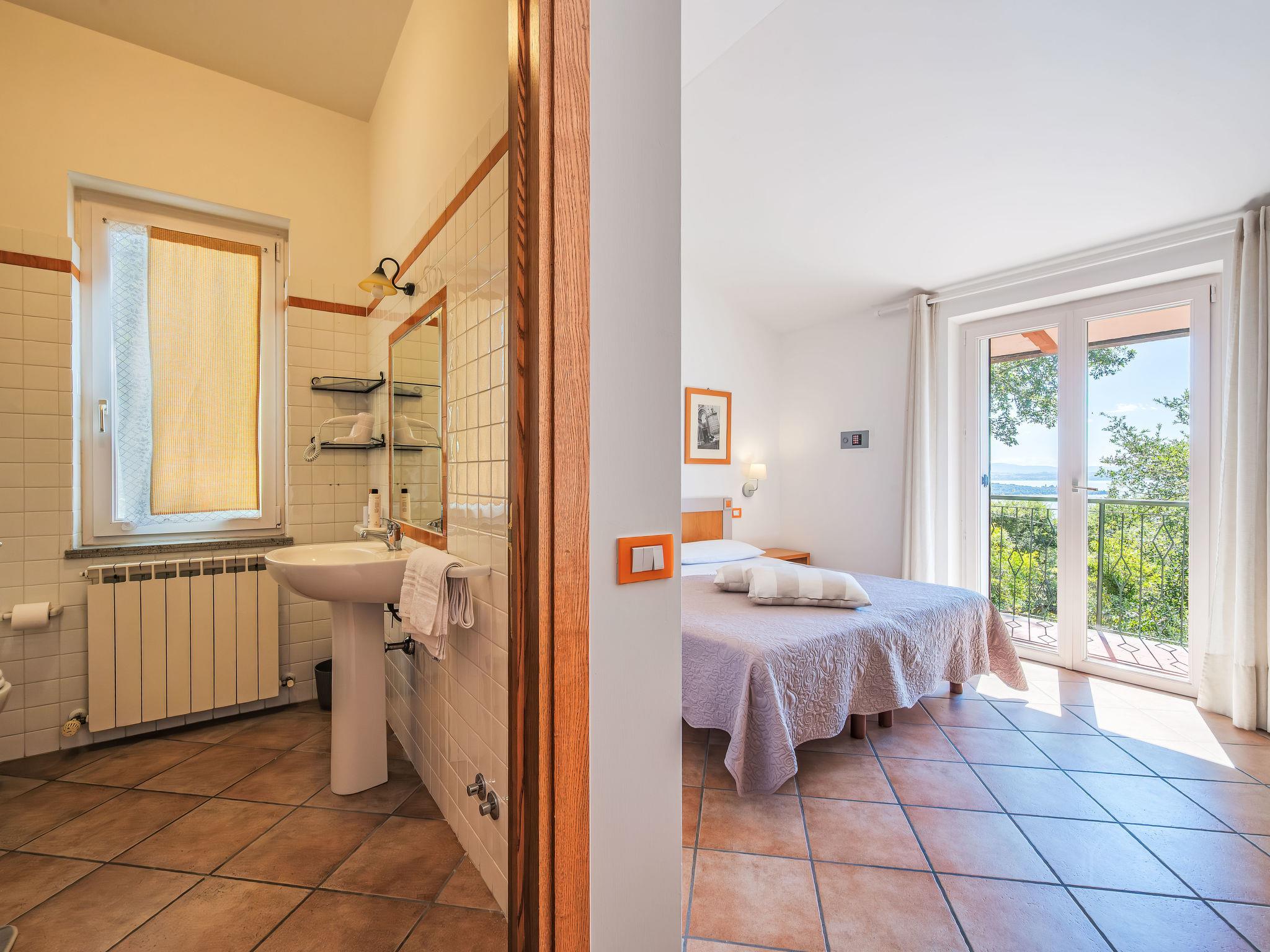 Cosy, comfortable residence "La Rocca". 9 apartments in the residence. 3 km from the centre of San Feiciano, 8 km from the centre of Magione, 1 km from the lake, 1 km from the beach. For shared use: park 6'000 m2, swimming pool (15 x 7 m, depth 110 - 250 cm, seasonal availability: 15.May. - 30.Sep.). Outdoor shower, pergola, garden furniture, barbecue. In the house: WiFi, air conditioning, washing machine. Narrow motor access to 500 m from the house. Roofed, parking at the house. Grocery 3 km, supermarket 3 km, restaurant 1 km, bar 1 km, bus stop 1 km, ferry "Isole del Trasimeno" 3 km, thermal baths "Chianciano Terme" 50 km. Sports harbour 3 km. Nearby attractions: Monte Del Lago 3 km, Magione 8 km, Passignao 12 km, Castiglione Del Lago 29 km, Cortona 34 km, Assisi 40 km. The owner does not accept any youth groups. Please note: the owner lives on the same property. The photograph shows a typical example. The photo is just an example.