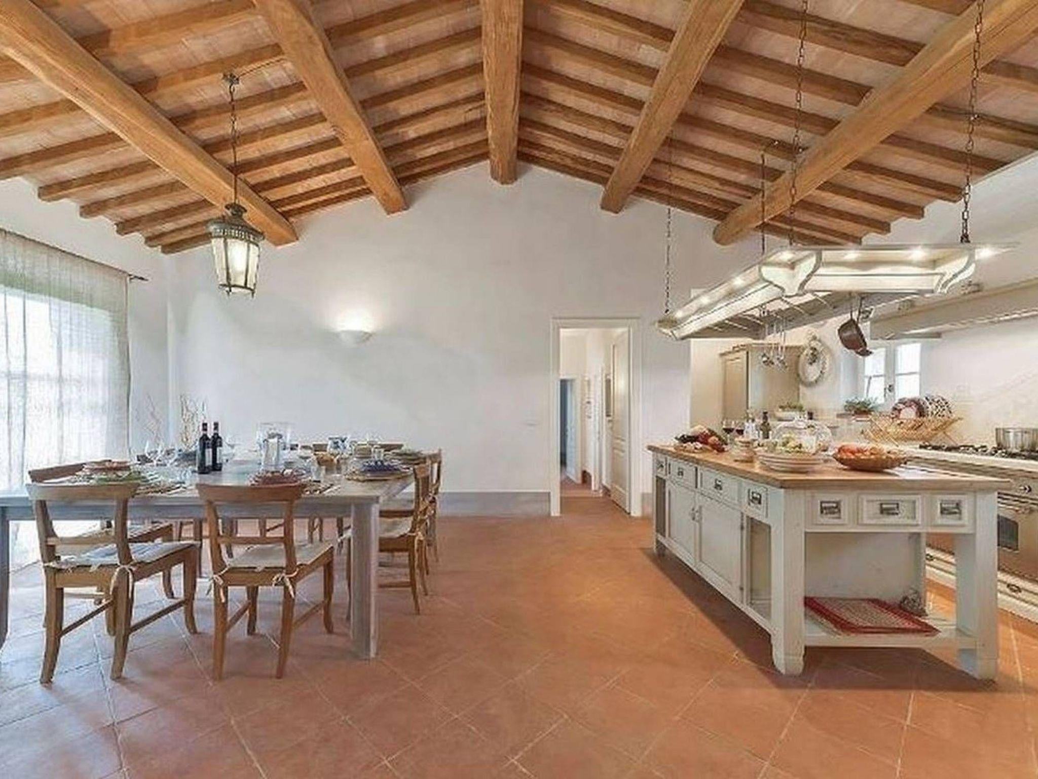 The lovingly restored villa is located just about 9 km from Magliano in Tuscany. Embedded harmoniously in the vast hilly landscape of the Maremma, it offers a wonderfully wide view of the surrounding natural landscape. The 12 hectare property with its 1,000 m² garden, a swimming pool (14 x 7 m) and a total of 8 bedrooms in the main house and the guest wing can accommodate up to 17 guests.