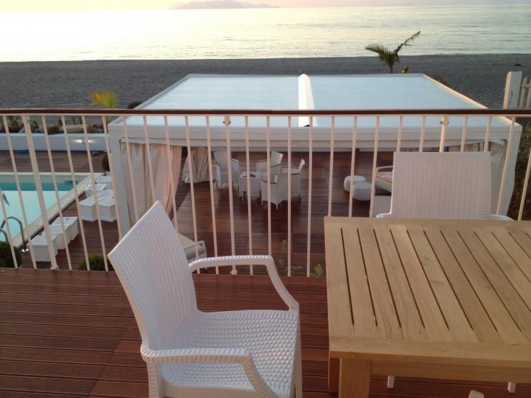 The 15 sq m terrace is equipped with a table with four chairs and a sun lounger.