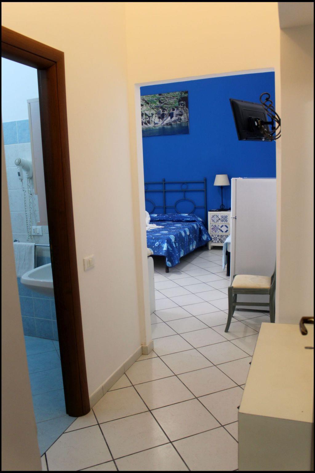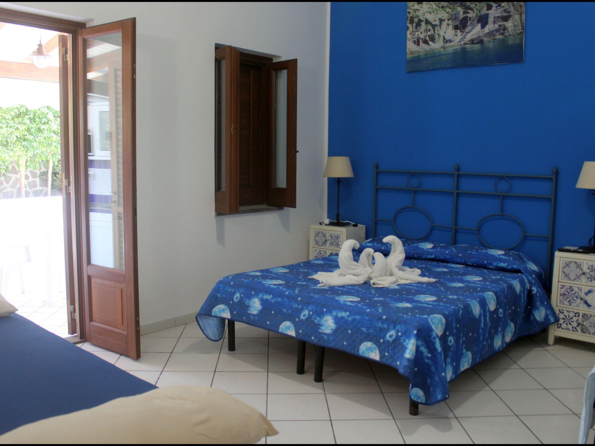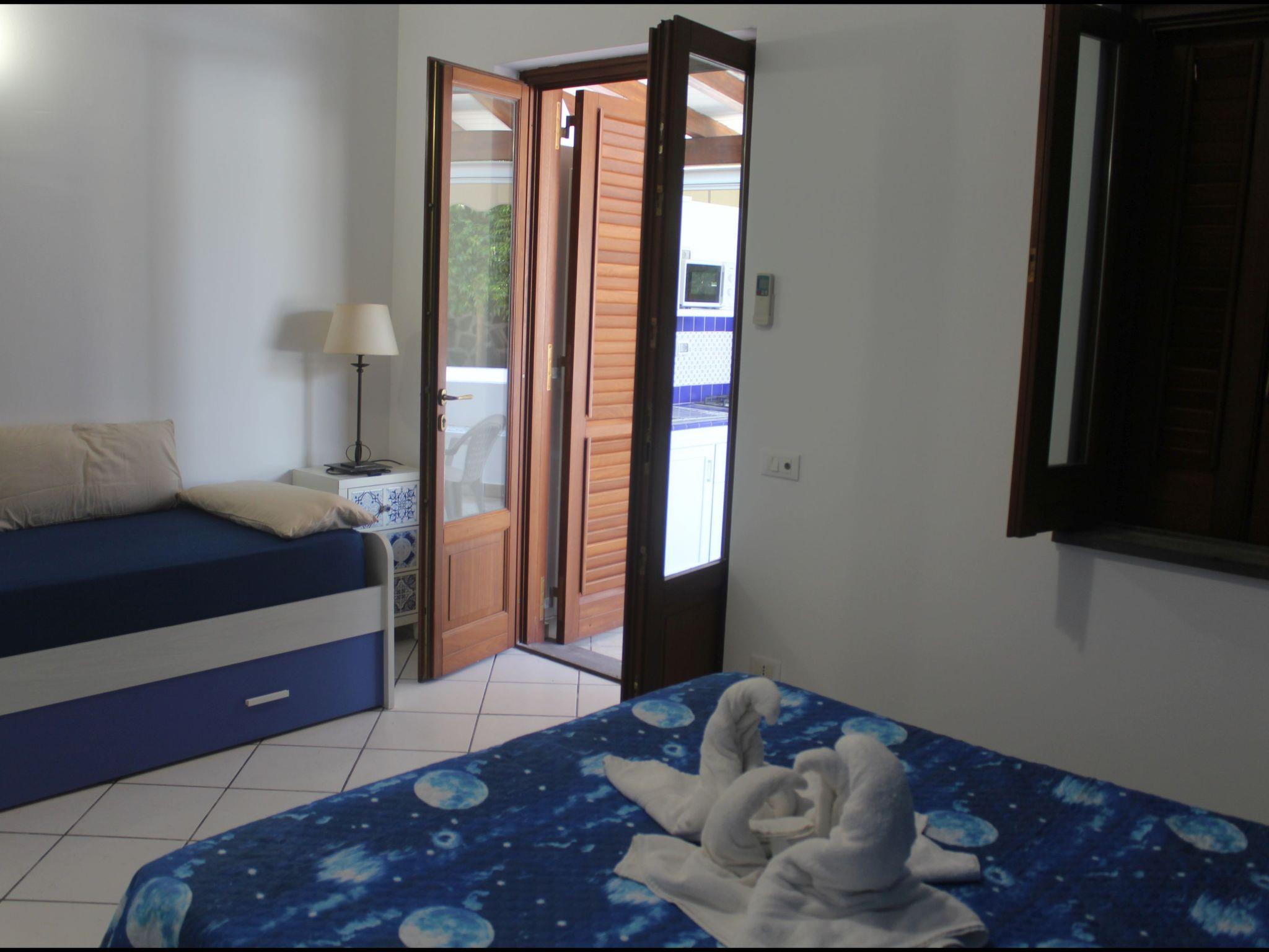 Lipari, in an ancient Aeolian structure completely renovated, a few steps from the picturesque square of murals, 150 mt. from the beach of Portinenti, 200 mt. from the square of Marina Corta and the centre, studio for 2 pax ground floor with covered terrace and kitchenette consisting of: large double bedroom and fridge with freezer, full bathroom with shower (box), colour TV, safe also for laptop, free Wi-fi. Possibility of a 3rd single bed. Large covered and uncovered outdoor area equipped with tables and chairs available for guests. Small pets accepted with a supplement. NB: availability subject to change.