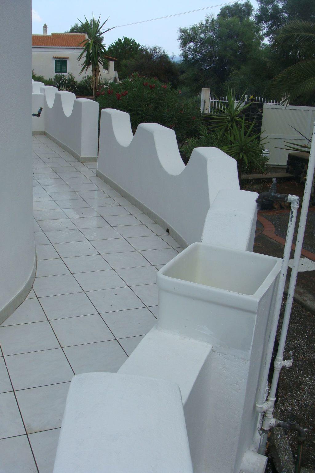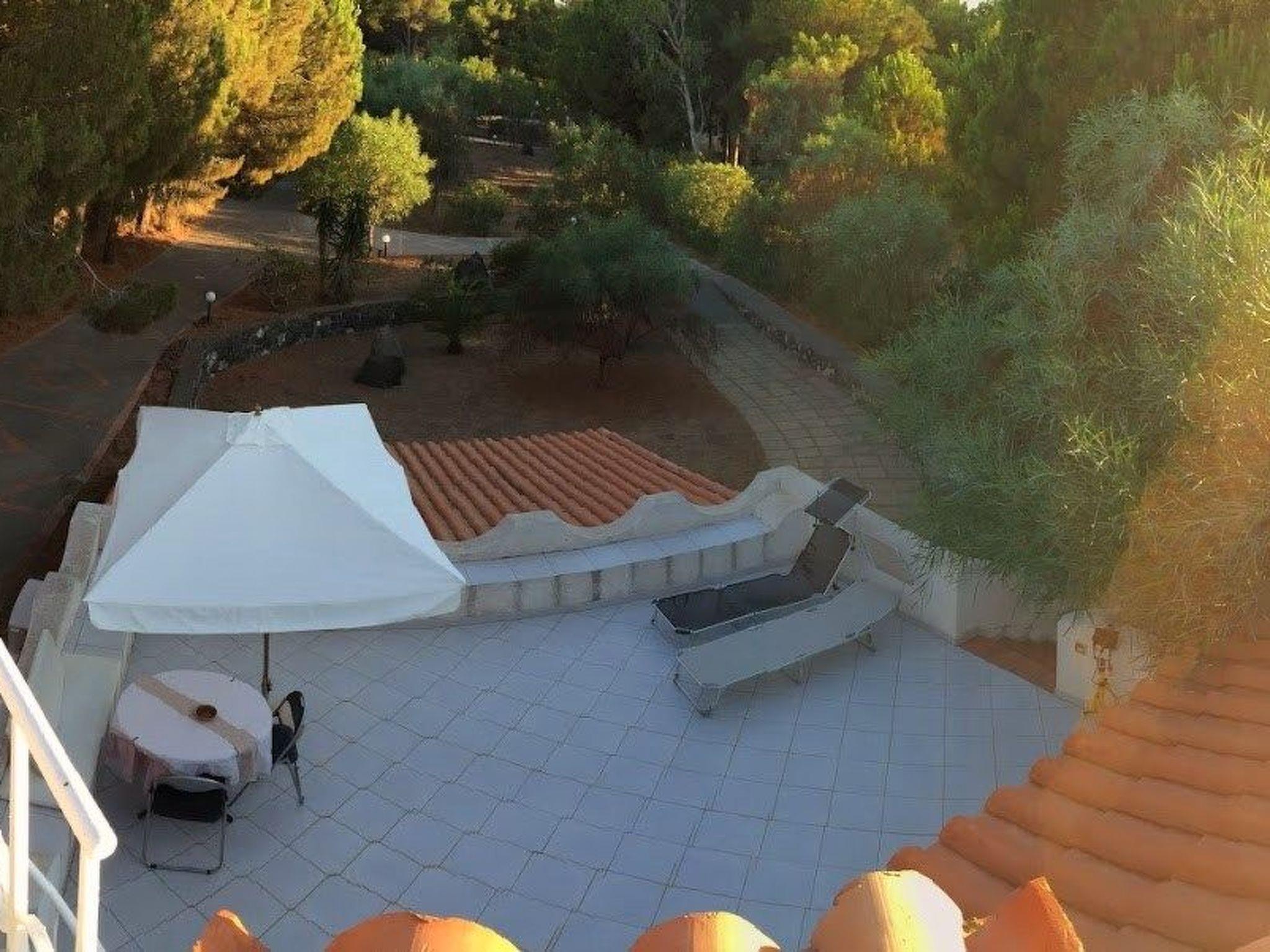 Small villa on the island of Vulcano, surrounded by 1000 square metres of fenced garden. The house consists of two flats, one basement flat with 4 beds, a bathroom, and a kitchenette; the other elevated flat has two bedrooms, two bathrooms, a kitchen, large terraces and a loggia. The villa is located at the foot of the ancient crater of Vulcanello, a cool, very quiet area, far from the chaos of the town, surrounded by pines, acacias, oleanders and close to the Valle dei Mostri.