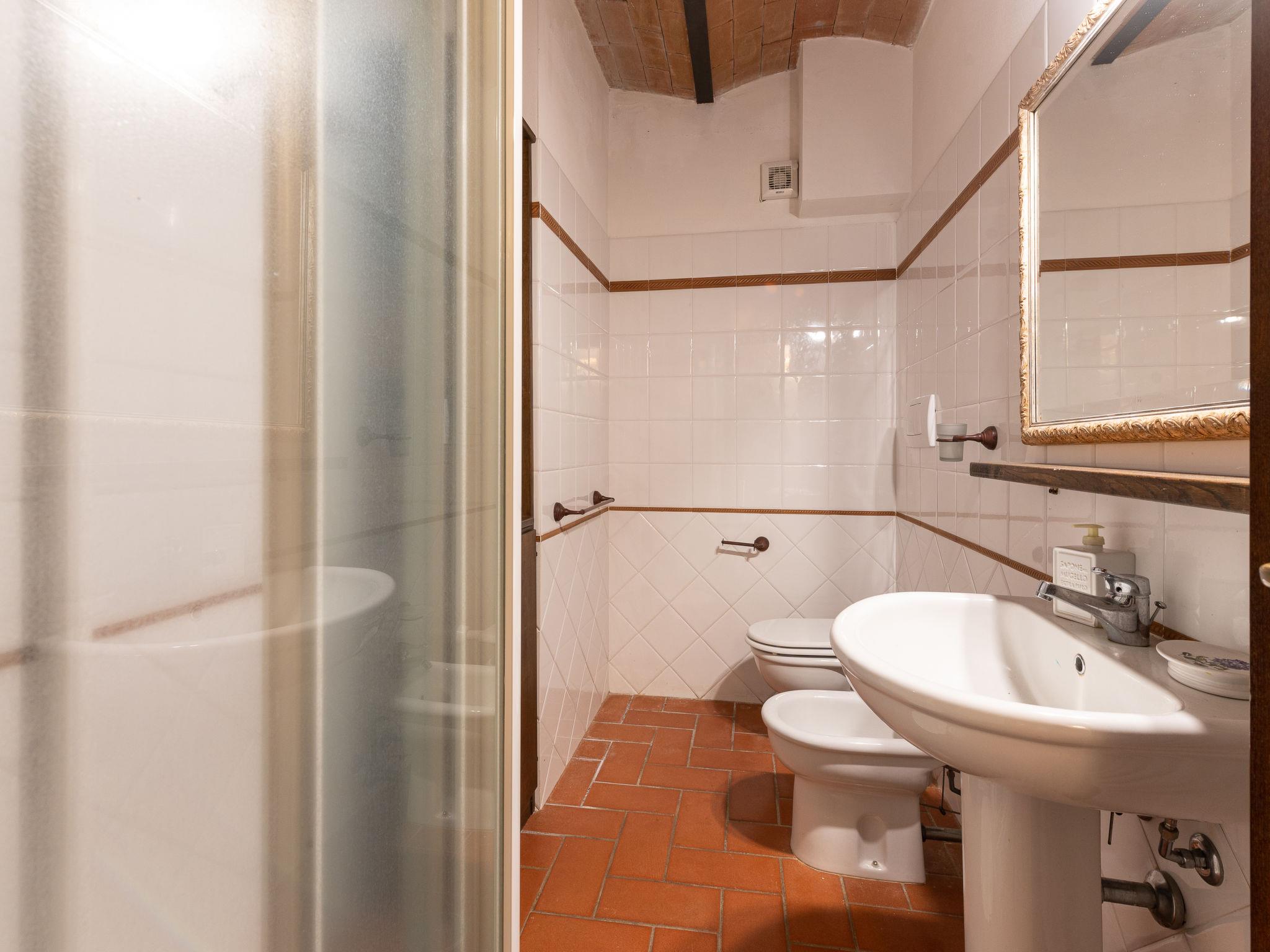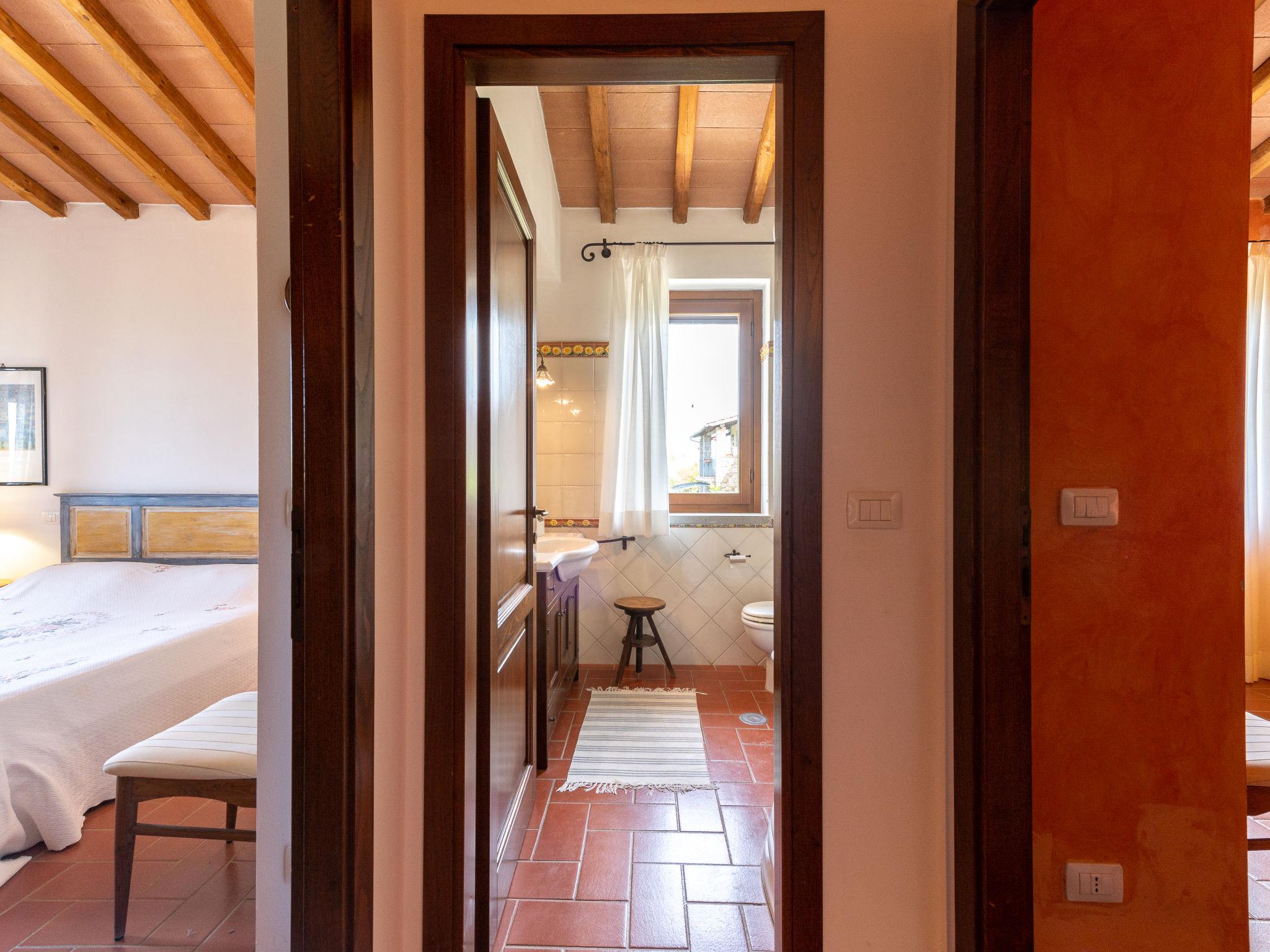 "La Gattaiola", 12-room villa 360 m2 on 2 levels. Comfortable and tasteful furnishings: large living/dining room with open-hearth fireplace and TV (flat screen). Exit to the garden, to the loggia, to the swimming pool. 1 double bedroom with shower/bidet/WC. 1 room with 2 beds. Exit to the garden, pergola. 1 small room with 2 beds. Open kitchen (dishwasher, 4 gas rings, toaster, kettle, microwave, electric coffee machine). Shower/bidet/WC. Upper floor: large living room with open-hearth fireplace (only for decoration), kitchen corner and TV. Exit to the terrace. 2 double bedrooms, each room with fan. 1 room with 2 beds and fan. Living/dining room with open-hearth fireplace, kitchen corner and TV. Exit to the terrace. 1 double bedroom with fan. 2 rooms, each room with 2 beds and fan. Open kitchen (oven, dishwasher, 4 gas rings, microwave). Exit to the terrace. 2 baths/bidet/WC, 2 showers/bidet/WC, hydro massage bath. Gas heating. Heating available only from 15.10. to 15.04. 2 large terraces covered, patio. Terrace furniture, barbecue, deck chairs, box-room. Marvellous panoramic view of the sea, the valley and the countryside. Facilities: washing machine, iron, mosquito net, baby cot for up to 2 year olds, hair dryer. Internet (WiFi, free). Please note: non-smokers only. Maximum 2 small pets/ dogs allowed. Private entrance. The house consists of three flats, two of which are internally connected to each other by a staircase (ground floor and first floor), the third, which is rented on the ground floor, can only be accessed from the outside. Each flat has all comforts and a fully equipped kitchen. The two flats on the first floor both have a covered terrace equipped with a table and chairs from which you can enjoy a splendid panorama as far as the sea. IT053014C2FQABCUJF