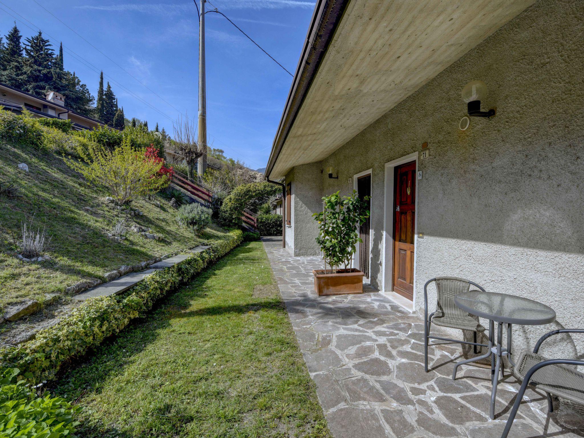 From the living room-kitchen there is access to the large terrace, equipped with sun umbrella, chairs and table, from which you can enjoy a splendid view of Lake Garda, the historic centre of the hamlet, which can be reached on foot in a few minutes, and the Tignale plateau.