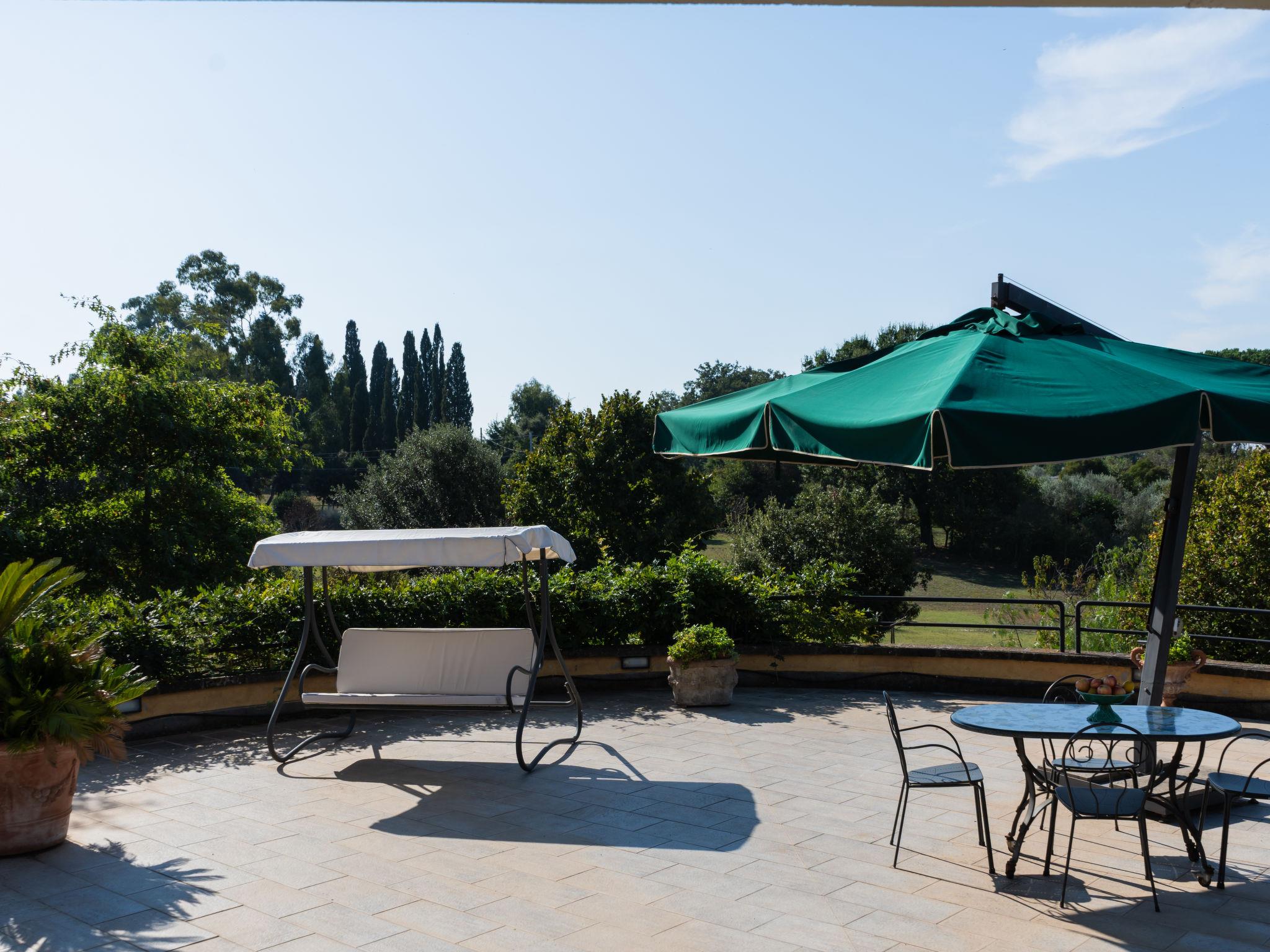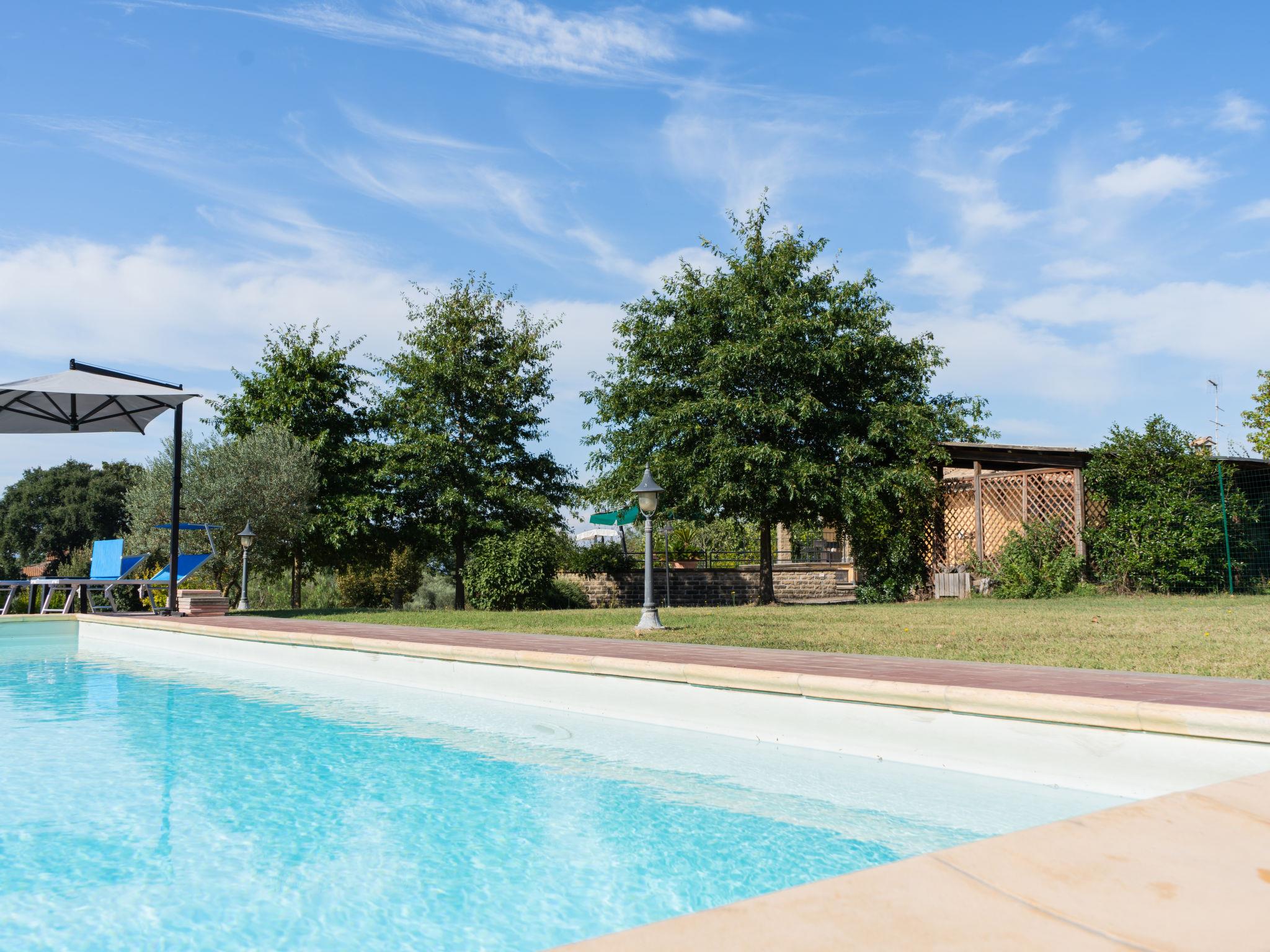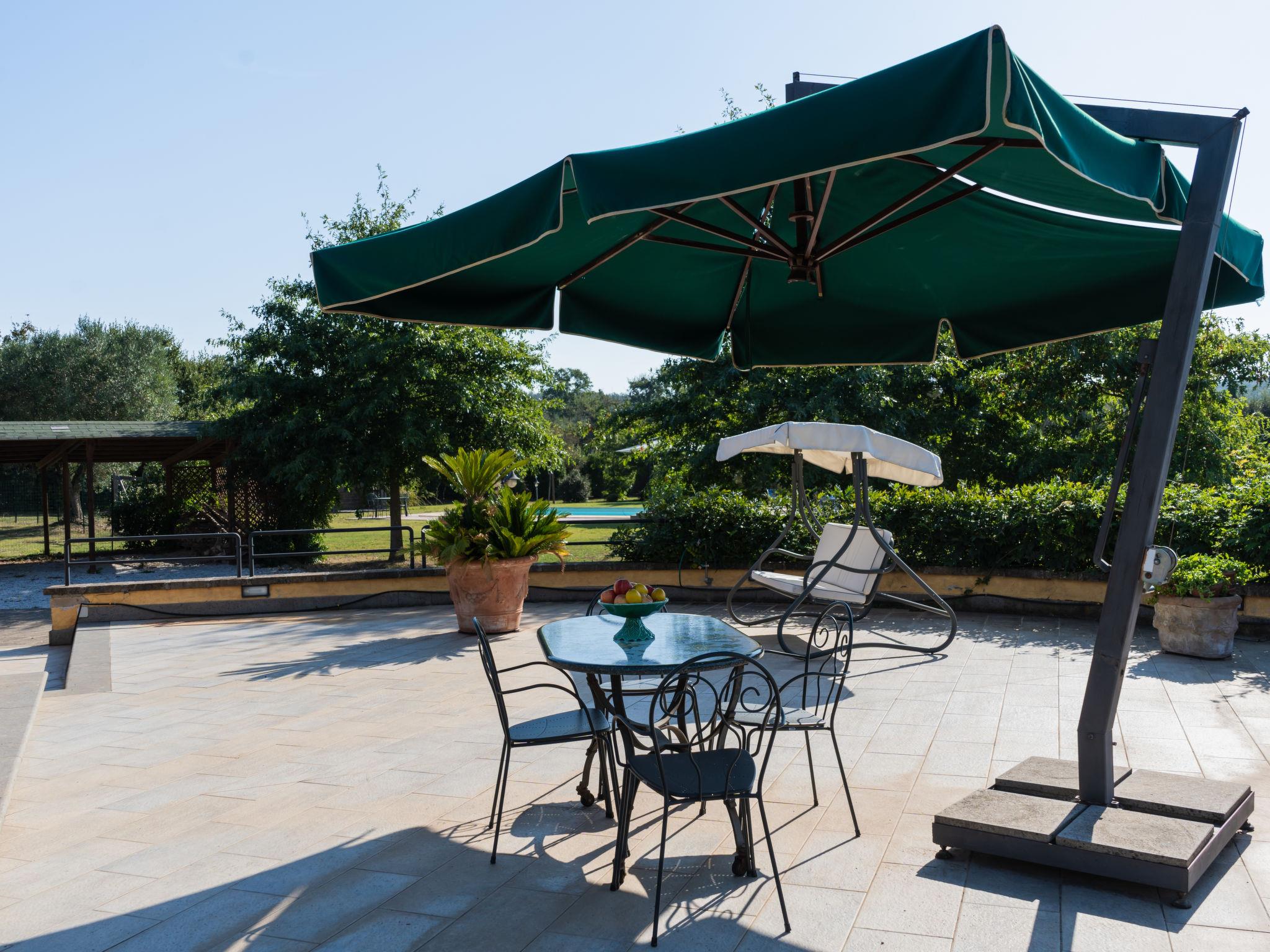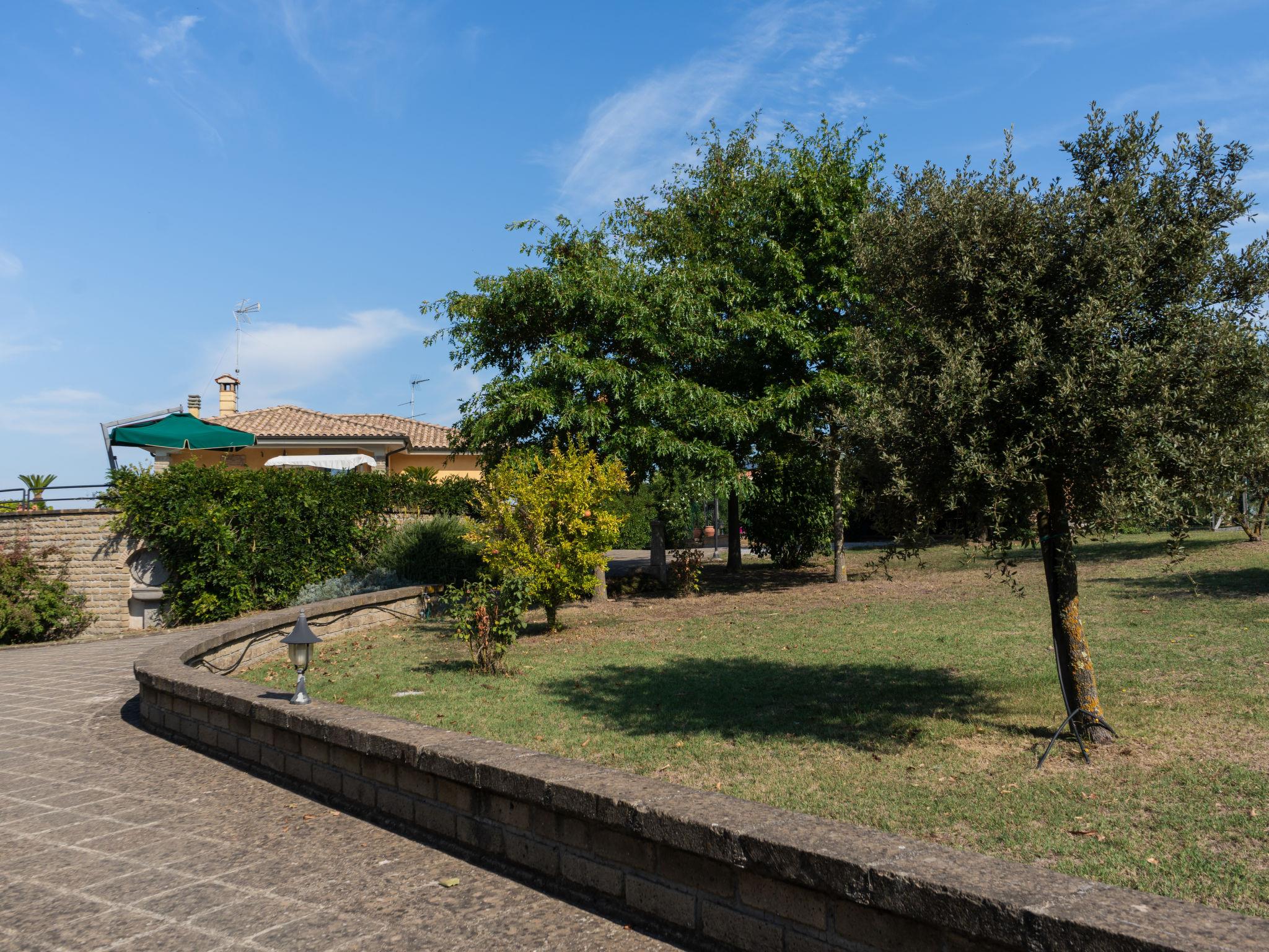 Cosy, comfortable villa "Rimbaudo", detached. Residential area (villas), 25 km from the sea, 13 km from the lake. Private: park 10'000 m2 (fenced), swimming pool (11 x 6 m, depth 80 - 210 cm, seasonal availability: 01.Apr. - 30.Sep.). Outdoor shower, garden furniture, barbecue, roofed, parking (for 2 cars). Supermarket 3 km, restaurant 1 km, bus stop 2.2 km, sandy beach "Marina Di Cerveteri" 27 km. Golf course (18 hole) 27 km. Nearby attractions: Bracciano 13 km, Trevignano 22 km, Sutri 23 km, Civita Vecchia 37 km, Santa Marinella 37 km, Roma 41 km. Please note: car recommended. The owner does not accept any youth groups.