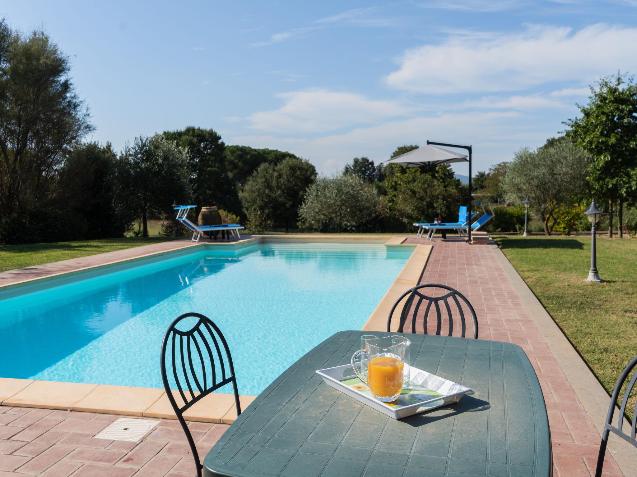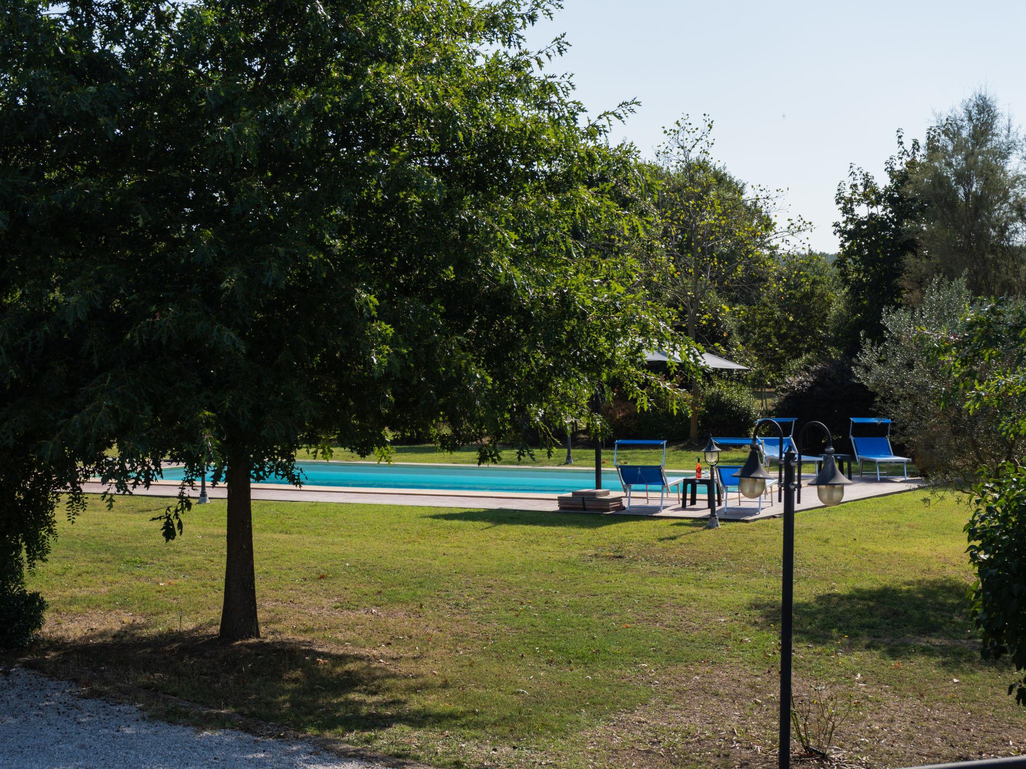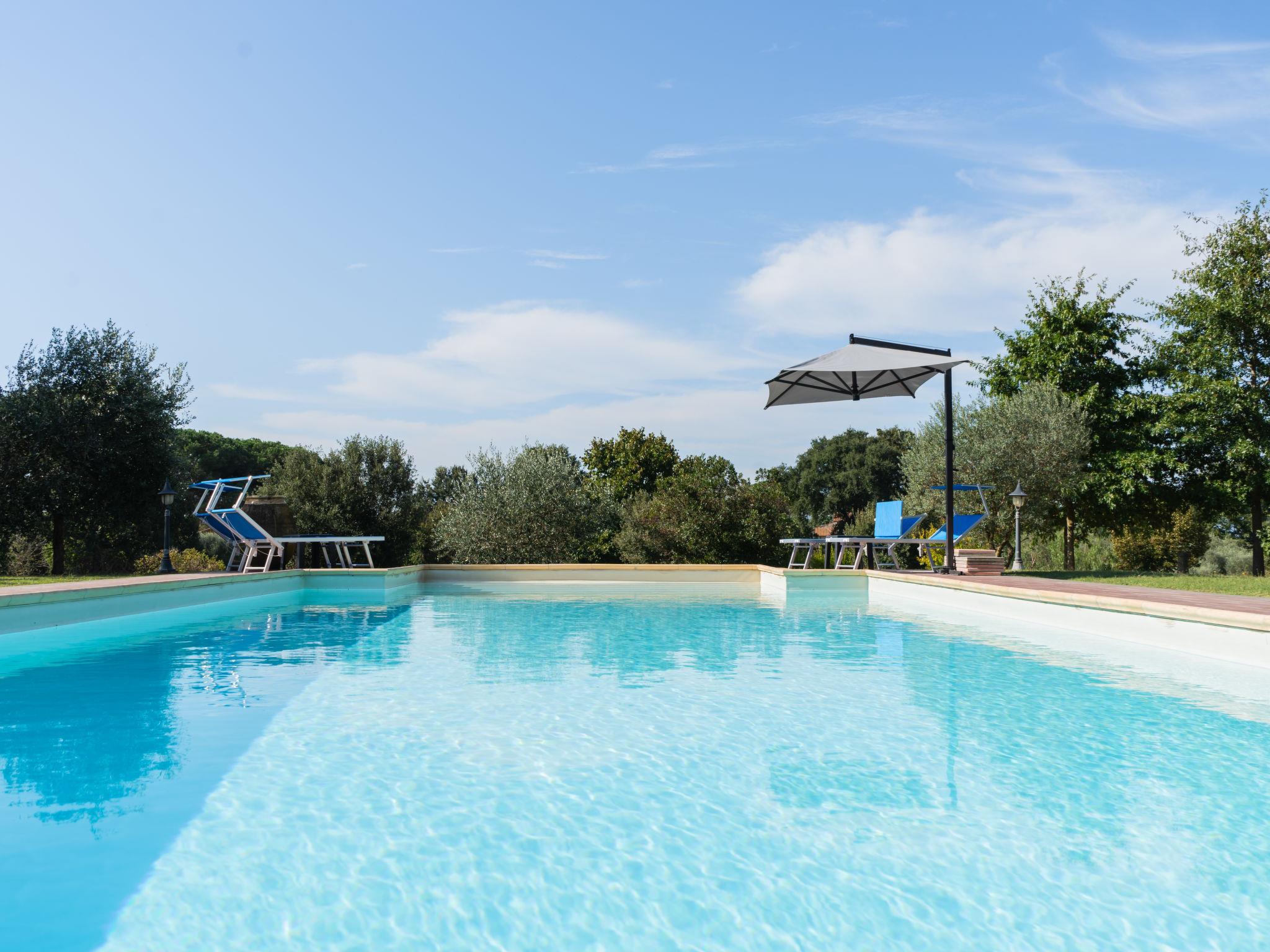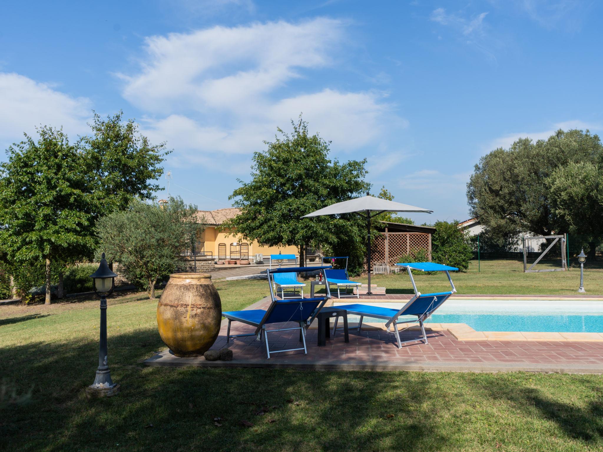 Cosy, comfortable villa "Rimbaudo", detached. Residential area (villas), 25 km from the sea, 13 km from the lake. Private: park 10'000 m2 (fenced), swimming pool (11 x 6 m, depth 80 - 210 cm, seasonal availability: 01.Apr. - 30.Sep.). Outdoor shower, garden furniture, barbecue, roofed, parking (for 2 cars). Supermarket 3 km, restaurant 1 km, bus stop 2.2 km, sandy beach "Marina Di Cerveteri" 27 km. Golf course (18 hole) 27 km. Nearby attractions: Bracciano 13 km, Trevignano 22 km, Sutri 23 km, Civita Vecchia 37 km, Santa Marinella 37 km, Roma 41 km. Please note: car recommended. The owner does not accept any youth groups.