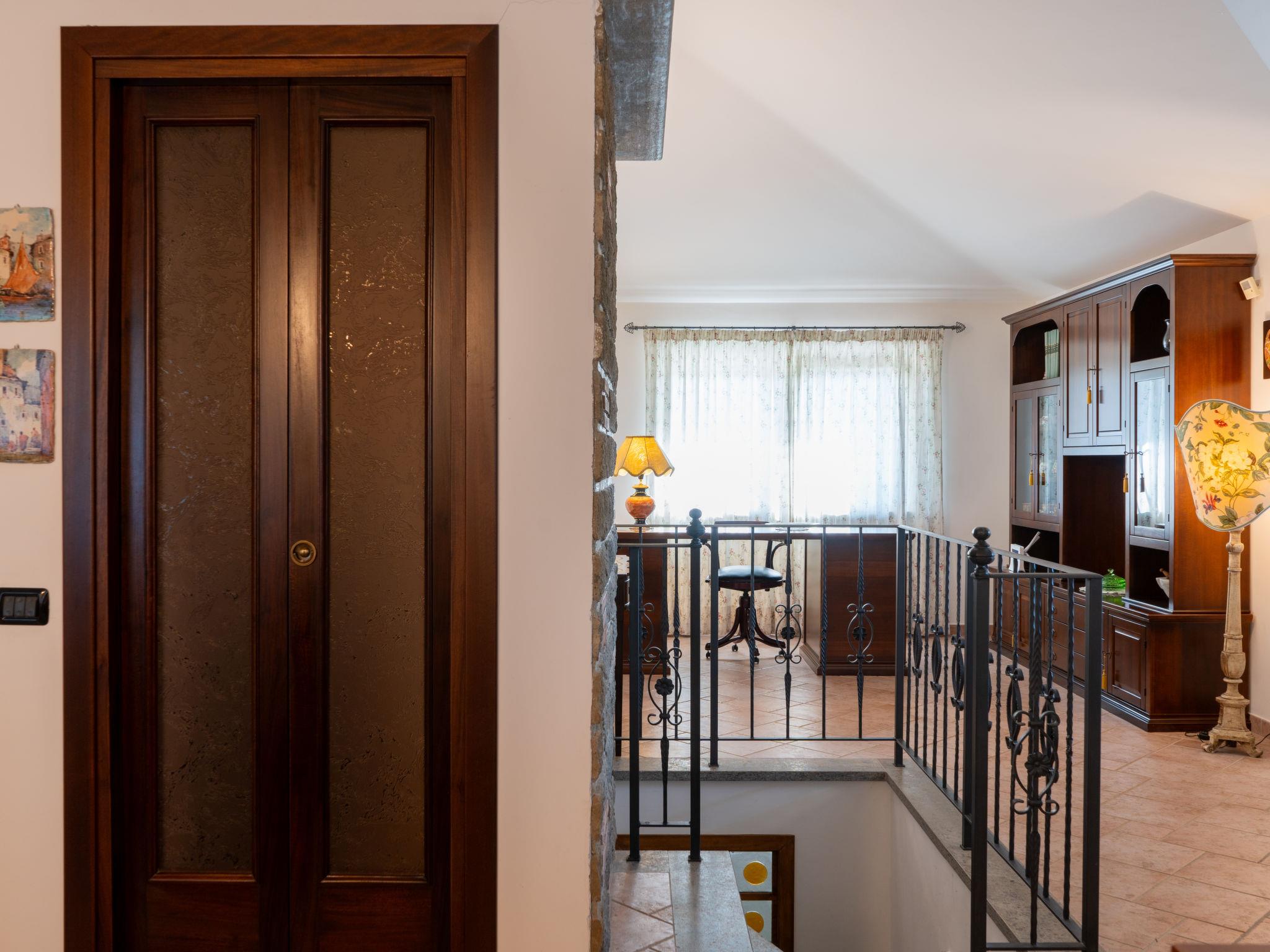 5-room villa 200 m2 on 2 levels. Practical and comfortable furnishings: large living room with open-hearth fireplace. Exit to the garden. 1 room with 2 beds and air conditioning. 1 double bedroom with air conditioning. Shower/bidet/WC. Upper floor: large living/dining room with open-hearth fireplace, kitchen corner and TV (flat screen), air conditioning. Exit to the loggia. 1 double bedroom with air conditioning. Kitchenette (4 hot plates, oven, dishwasher, microwave). Bath/bidet/WC. Electric heating. Patio 5 m2, roofed. Facilities: washing machine, mosquito net. Internet (WiFi). Maximum 1 pet/ dog allowed. IT058016C2ZMO5NW7B
