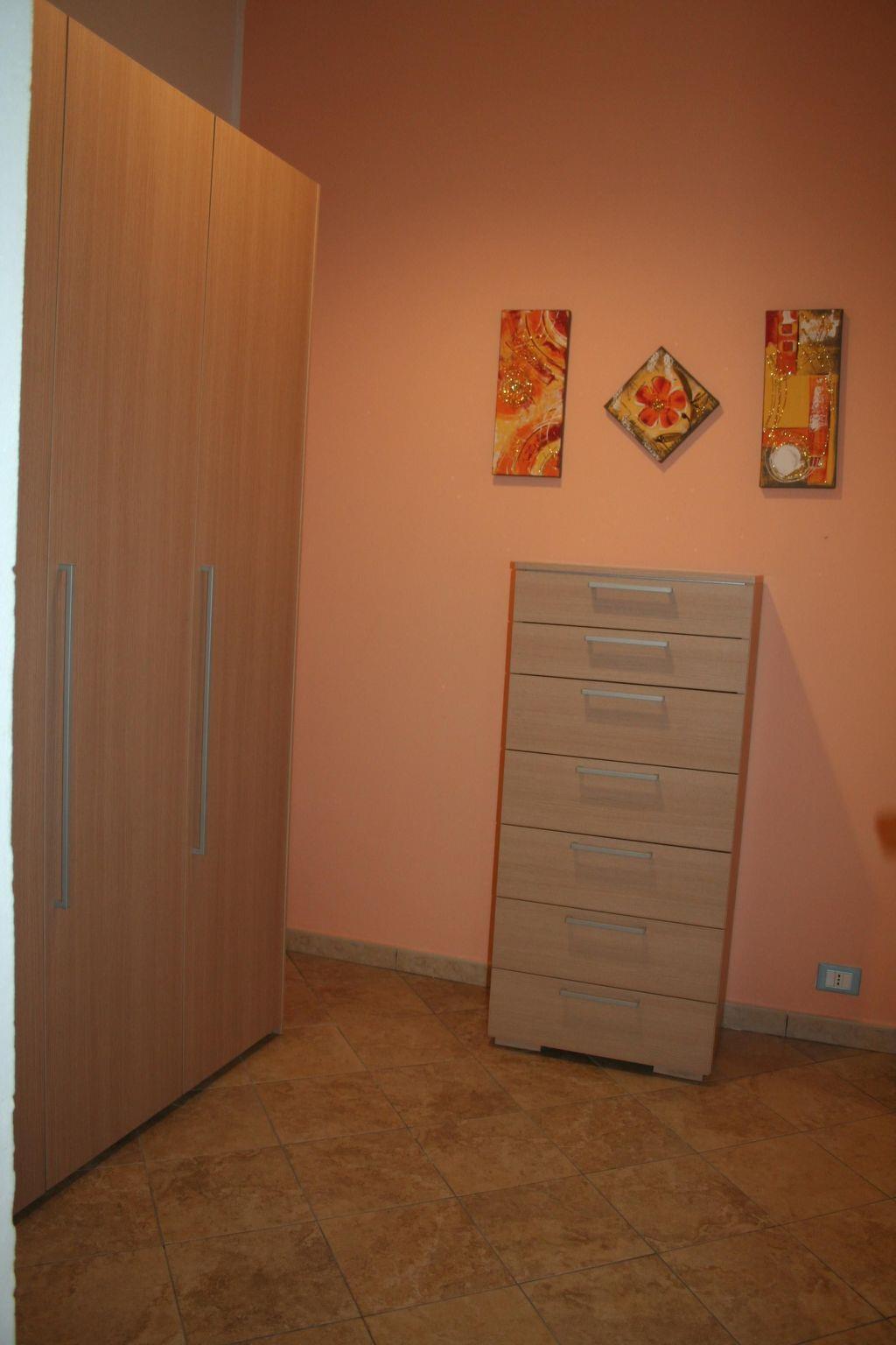 This apartment is on the ground floor and features pleasant colours. The front door leads into the living room-kitchen with a sofa bed for two people, a dining table and a modern kitchen block with a gas stove, an oven and a fridge-freezer. Next to it there is the bedroom with a double bed (160 x 190cm), a wardrobe, a dresser and bedside tables. The bathroom provides a generous shower cubicle and a hairdryer. A cot and a highchair can be provided for toddlers. The air conditioning units in the bedroom and in the living room-kitchen also have a heating function, but there are also radiators, so the apartment is also ideal outside of the summer season. A washing machine and two TVs with digital terrestrial channels and a DVD player are provided.