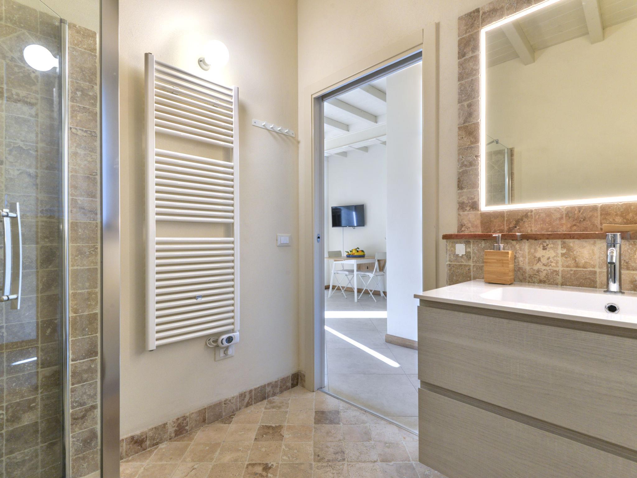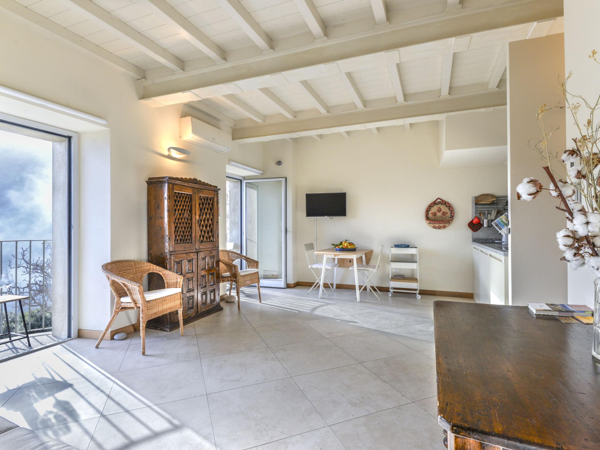 "Sant´Agabito", 1-room apartment 30 m2, on the upper ground floor. Fully renovated in 2023, modern and tasteful furnishings: living/dining room with panoramic window with 1 double sofabed (160 cm), dining table. Open kitchen (oven, 2 induction hot plates, toaster, kettle, microwave, electric coffee machine). Shower/bidet/WC. Electric heating, air-conditioning. Heating available only from 01.11. to 15.04. 2 small balconies. Box-room. Very beautiful view of the sea and the mountains. Facilities: iron, hair dryer. Internet (WiFi, free). Please note: non-smokers only. Maximum 1 pet/ dog allowed. Private entrance. In the living room two French windows with small balconies with splendid sea and mountain views. IT049010C2IPEPDYNV
