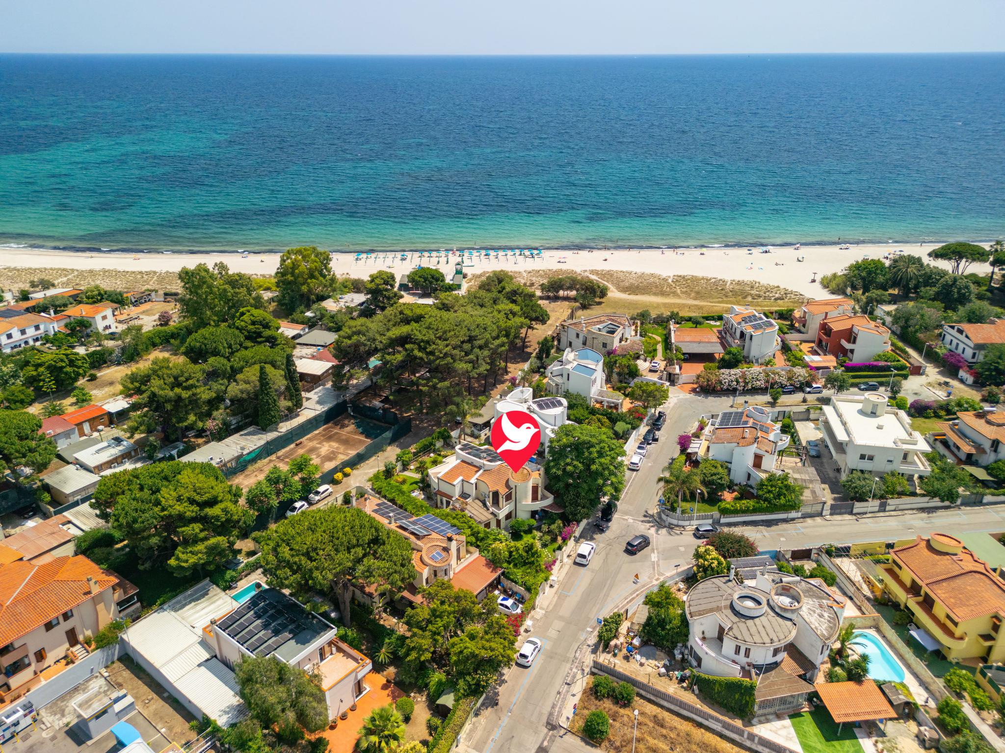 Very cosy villa detached, surrounded by trees. In the resort Margine Rosso, in a sunny position, 50 m from the sea, 50 m from the beach, in the countryside. Private: beautiful garden (fenced). 300 m long narrow motor access to the house. Parking on the premises. Supermarket 2 km, restaurant, bar 500 m, bus stop "Margine Rosso (angolo Scirocco)" 150 m, railway station "Cagliari" 14 km, ferry "Cagliari" 14 km. Nearby attractions: Poetto Spiaggia 150 m, Cagliari 15 km, Mari Pintau 17 km, Villasimius 45 km. Please note: car recommended.