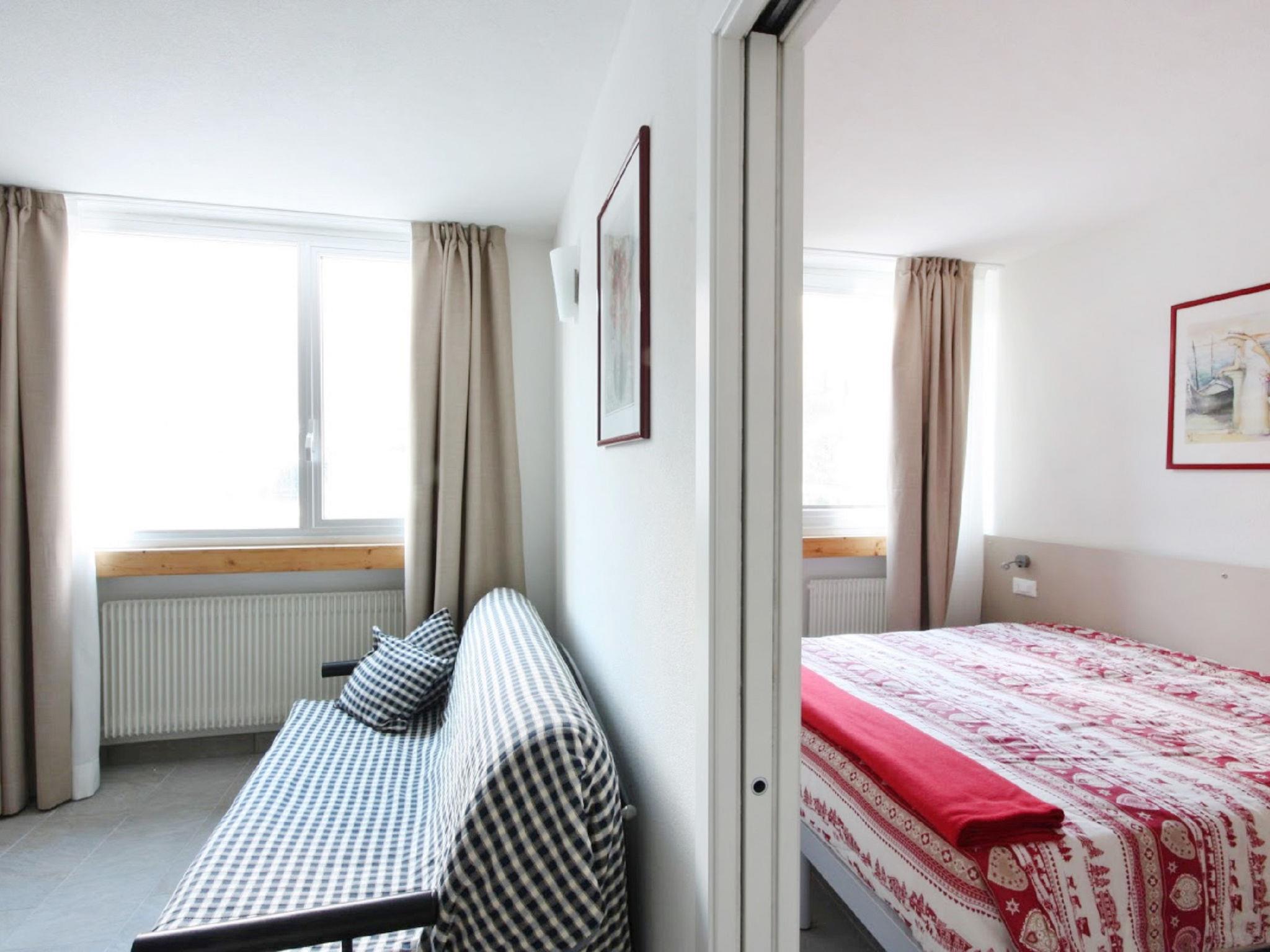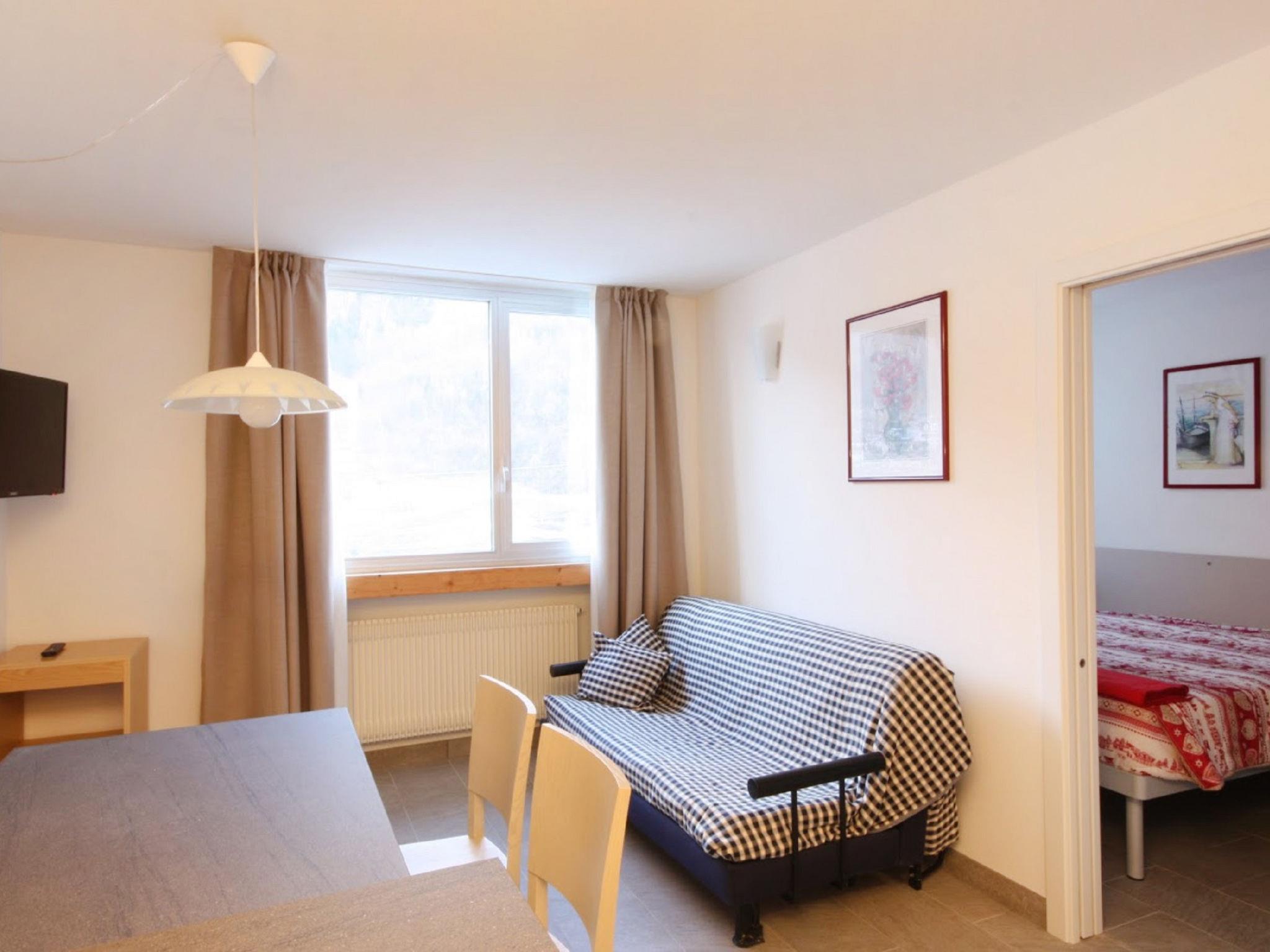 2-room apartment 40 m2 on 2nd floor. Practical and modern furnishings: living/sleeping room with 1 double sofabed (140 cm, length 200 cm), satellite TV (flat screen). 1 small double bedroom. Kitchenette (2 ceramic glass hob hotplates, microwave, freezer) with dining table and dining nook. Shower/bidet/WC. Heating. View of the mountains and the valley. Facilities: hair dryer. Internet (WiFi, free). Please note: non-smokers only. IT022114C2JMYDOESJ
