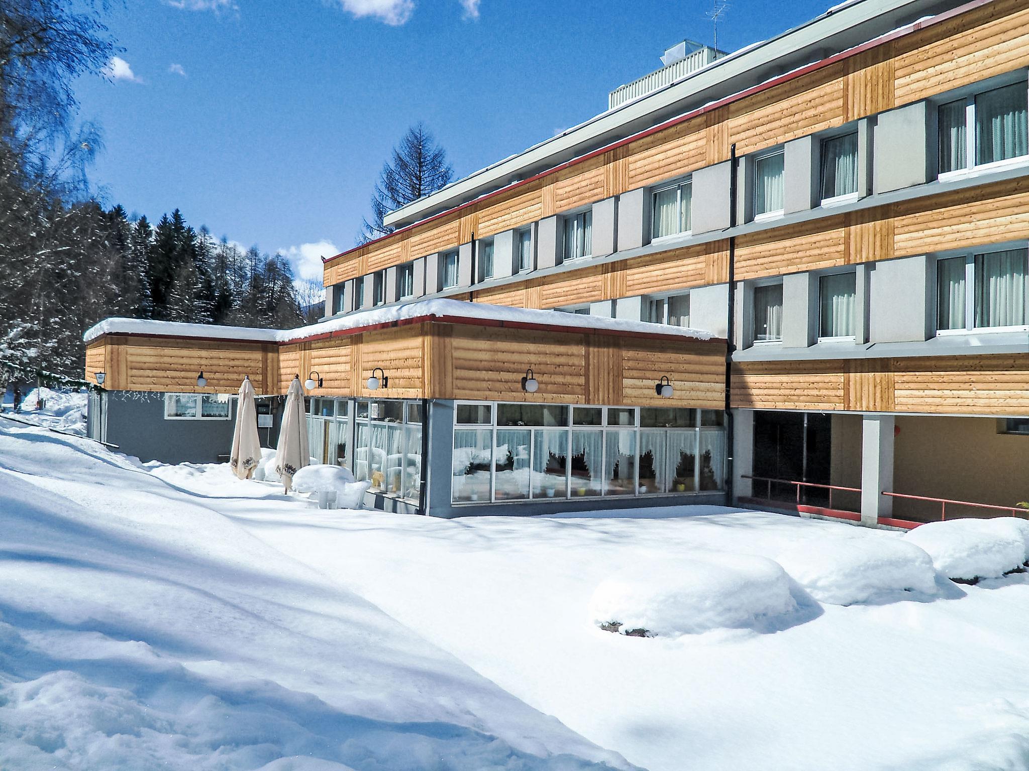 Beautiful, comfortable residence "Kristall", 4 storeys, surrounded by trees. 38 apartments in the residence. In the hamlet Marilleva 900 800 m from the centre of Mezzana, in a quiet position, 100 m from the skiing area, on a main road in the woods. For shared use: garden 1'500 m2. In the complex: reception, lounge, relaxation room, lift, roof terrace, central heating system. Stepped path to the house. Parking (limited number of spaces), public parking on the road. Shop, grocery 200 m, supermarket 600 m, restaurant 100 m, bus stop "Mezzana" 800 m, indoor swimming pool 50 m. Tennis, riding stable 600 m, gondola lift 100 m, ski bus stop 50 m, ski school, children's ski school 100 m, cross country ski track 500 m, ice rink 600 m, children's playground 50 m.