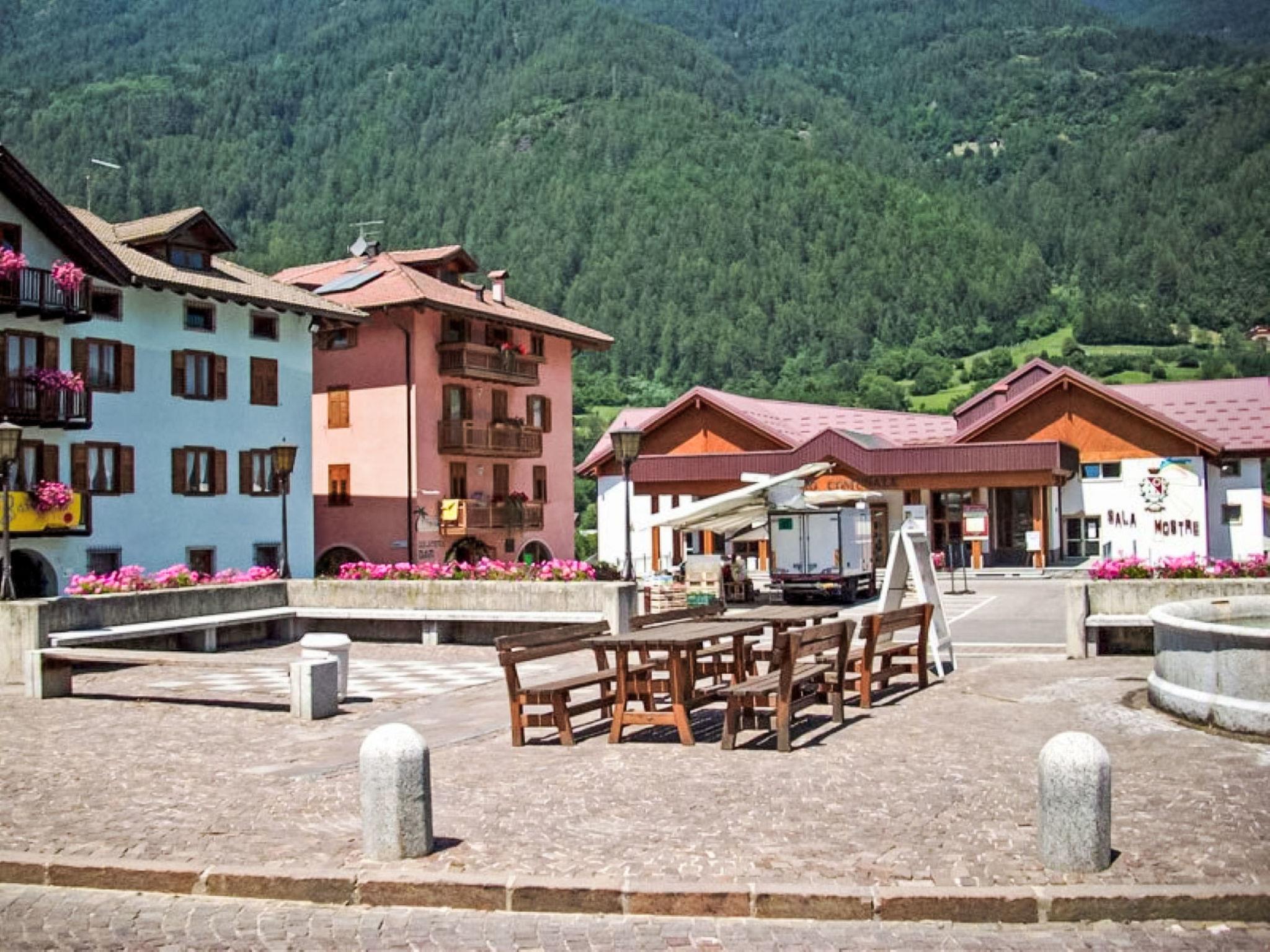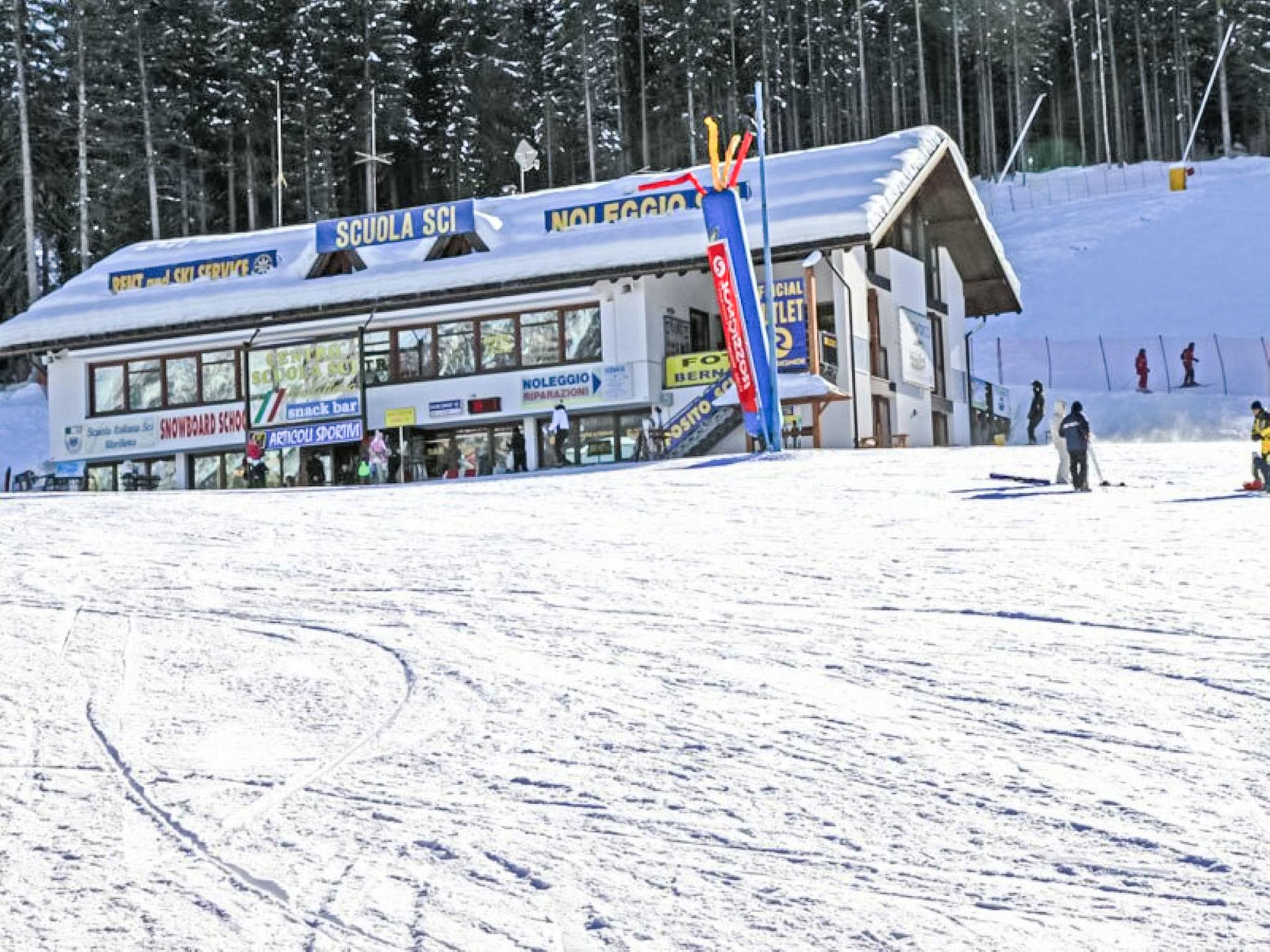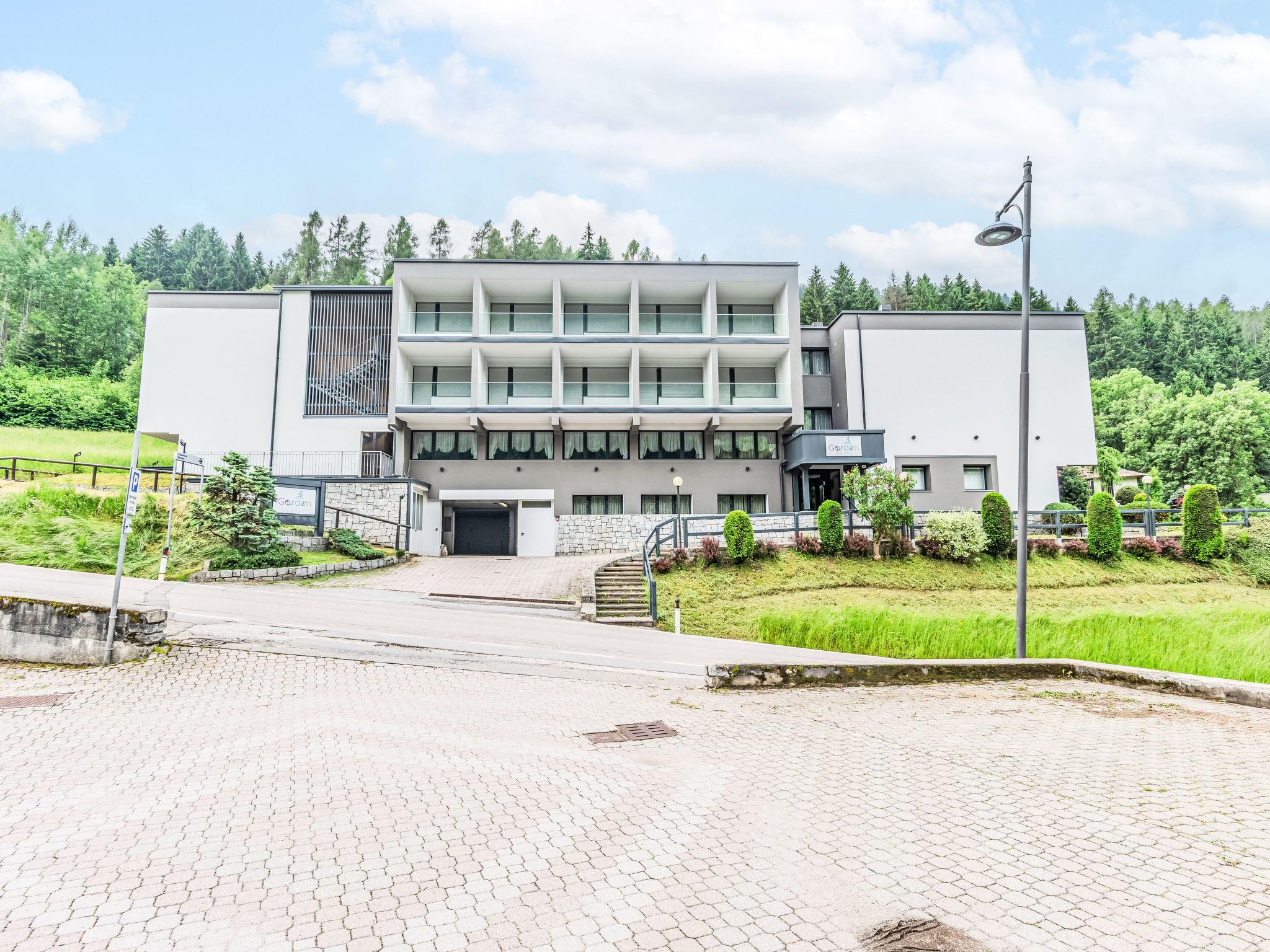 Marilleva 900: Modern, cosy aparthotel "Il Garden". 20 apartments in the residence. In the centre of Marilleva 900, excellent location: right in the centre but still quiet, 20 m from the edge of the forest, 290 m from the skiing area, 50 m from the stream, in the countryside. For shared use: lawn for sunbathing (fenced). In the house: storage room for bicycles, storage room for skis. Linen change weekly (suppl. charge extra). Towel change weekly (suppl. charge extra). Room cleaning weekly on request (extra). Roofed, parking space n 13 on the premises. Grocery, supermarket 200 m, shopping centre 500 m, restaurant, bar 20 m, bakery 200 m, bicycle rental 500 m, bus stop 30 m, railway station "Marilleva 900" 350 m. Cycle lane 300 m, gondola lift, skisport facilities 290 m, slopes 500 m, ski rental 290 m, ski bus stop 50 m, ski school 290 m, ski-kindergarten 500 m, fishing possibilities 350 m. Nearby attractions: Cabinovia Marilleva 900 290 m, Rafting Fiume Noce 350 m, Skigarden Padel, Città di Trento, Dimaro ritiro Napoli Calcio 5 km, Mercati di Natale di Ossana 7 km. Well-known ski regions can easily be reached: M. Di Campiglio - Folgarida - Marilleva, Passo del Tonale, Pejo. Well-known lakes can easily be reached: Marilleva 1400 - Lago dei Caprioli, Malghetto - Monte Vigo, Lago Stablo Pellizzano. Hiking paths: Malga Panciana Croce della Pace, Ortisé Malga Bronzolo, Monte Vigo. Please note: the complex has night security. Motorway 59 km from the property. Railway line 5 km from the property. Airfield 159 km from the property. Neighbourhood highly sensitive to noise. Quietness and good behaviour expected.