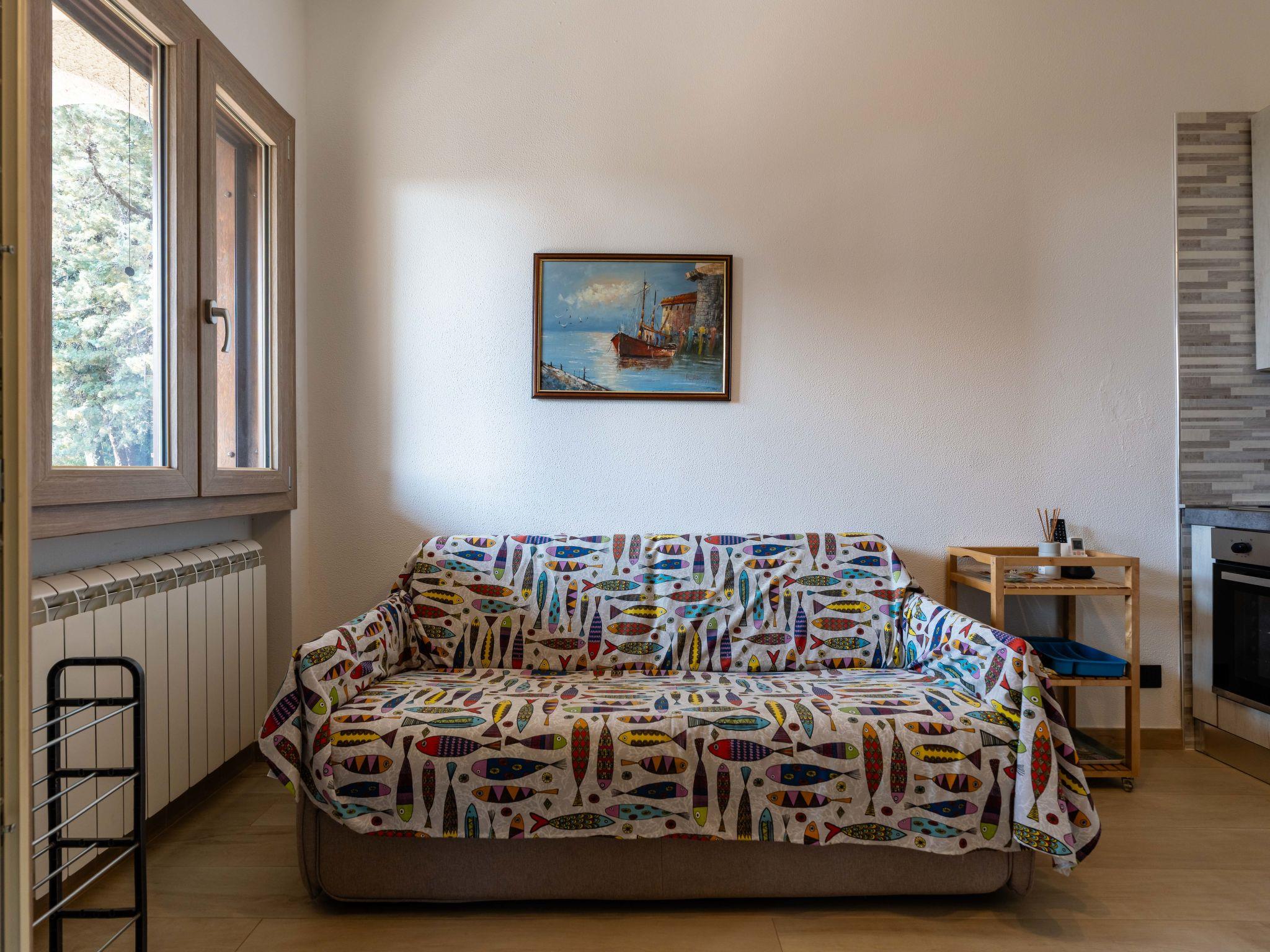 "Maison Silvia", 2-room terraced house 50 m2 on 1st floor. Modern and tasteful furnishings: living/dining room with 1 double sofabed (160 cm, length 200 cm). Exit to the balcony. 1 double bedroom. Open kitchen (oven, 4 gas rings, toaster, kettle). Shower/bidet/WC. Gas heating, air-conditioning, forced-air heating. Heating available only from 01.11. to 15.04. Terrace 16 m2. Terrace furniture. View of the resort. Facilities: washing machine. Internet (WiFi, free). Please note: private entrance. IT009006C2F53CIRP3