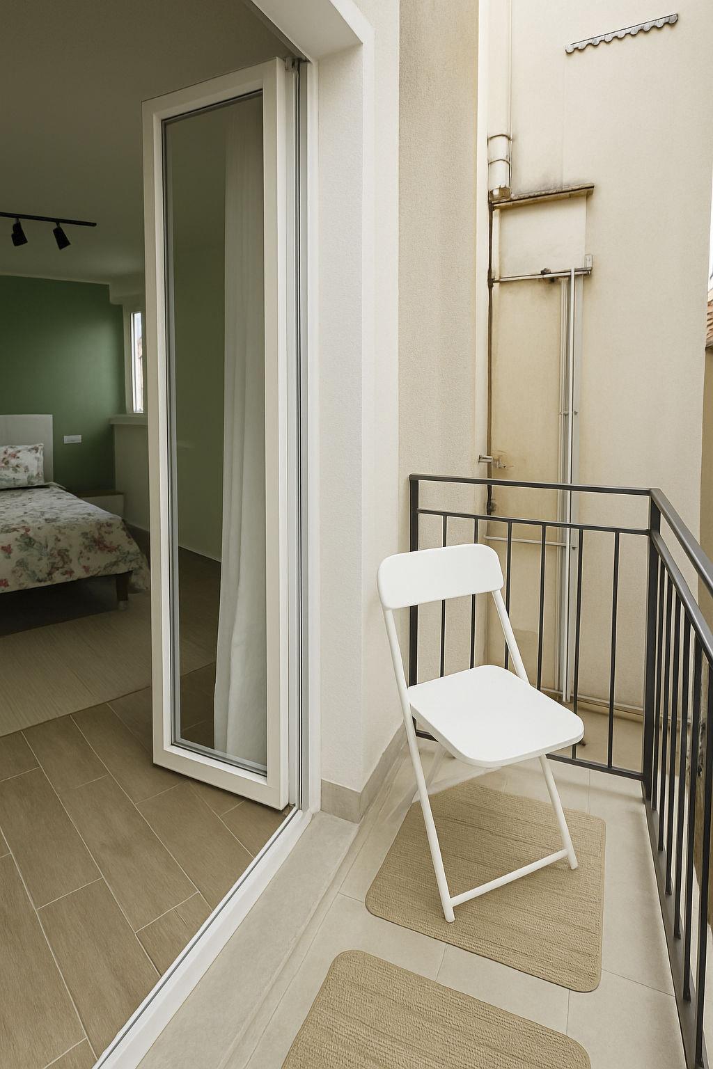 The apartment is air-conditioned and well-equipped: it has a kitchenette with a two-burner cooker, electric kettle, steamer, washing machine for exclusive use, and a lovely little balcony perfect for an outdoor breakfast or a relaxing moment after the sea.