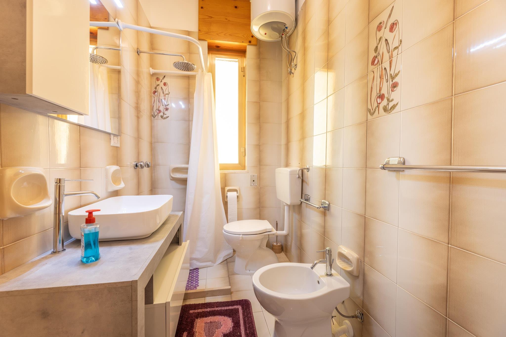 Stueetage: (Stue(dobbeltsovesofa, spisebord, sofahjørne), Køkken(kogeplade, mikrobølgeovn, køle-fryseskab), soveværelse(dobbeltseng), soveværelse(dobbeltseng), badeværelse(bruser, håndvask, toilet, bidet), vaskemaskine, balkon eller terrasse, klimaanlæg) badeværelse(bruser, håndvask, toilet)