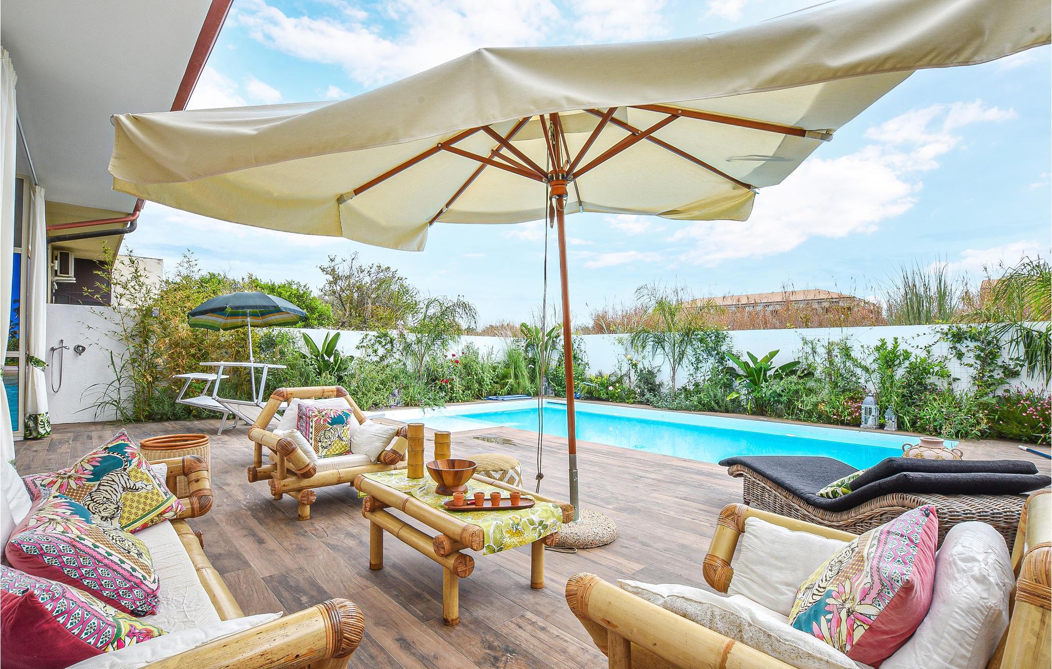 Smukt, lyst sommerhus med privat pool og et fantastisk udendørsområde.