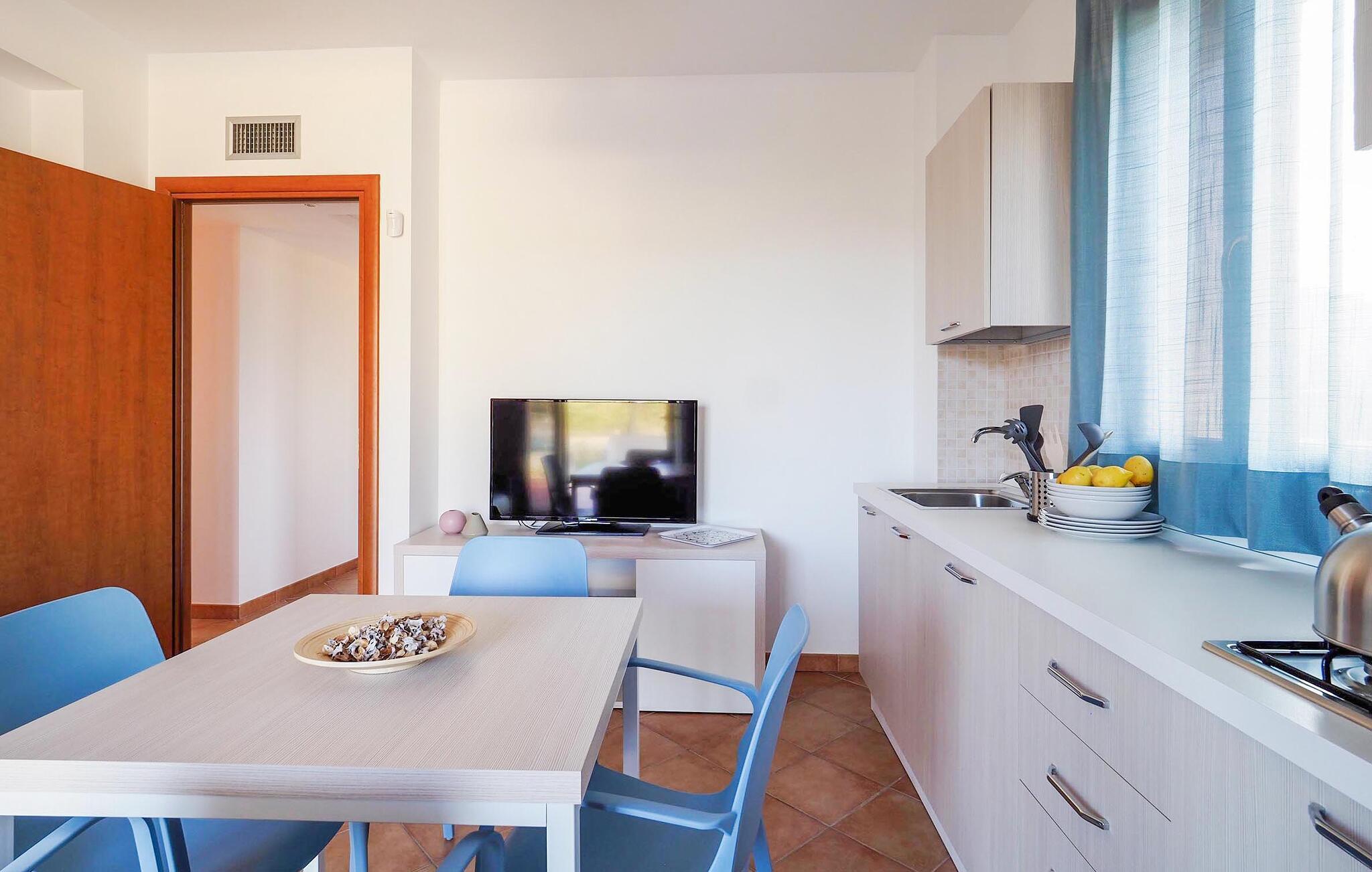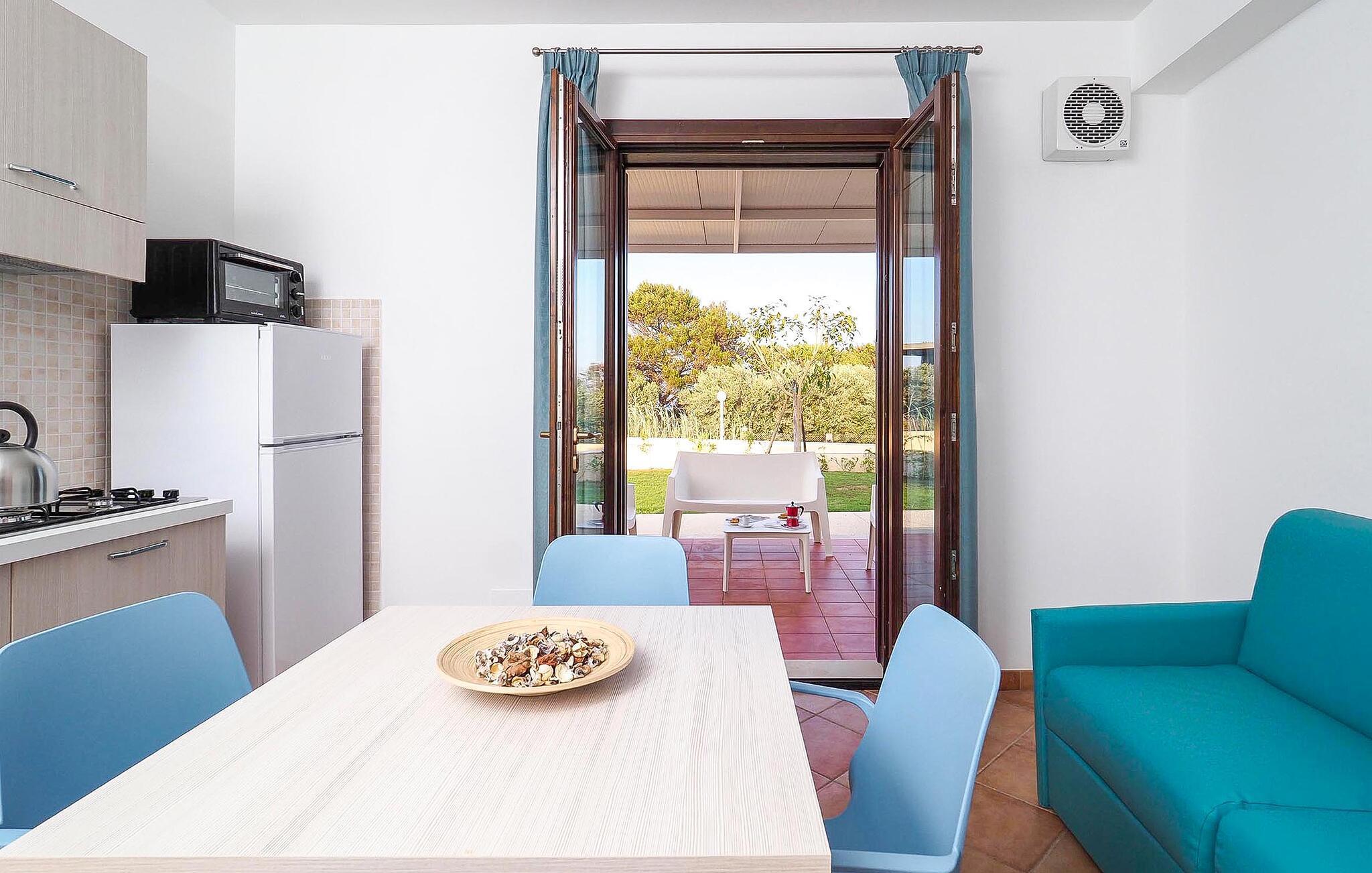 Kun få skridt fra den maleriske kyst byder dette charmerende feriehus jer velkommen, hvor I kan nyde en solrig pause væk fra hverdagen. Tilbered jeres yndlingsretter i det lyse køkken-alrum og tag plads ved det indbydende spisebord. Planlæg jeres aktiviteter sammen her og organiser selskabelige spilleaftener.
