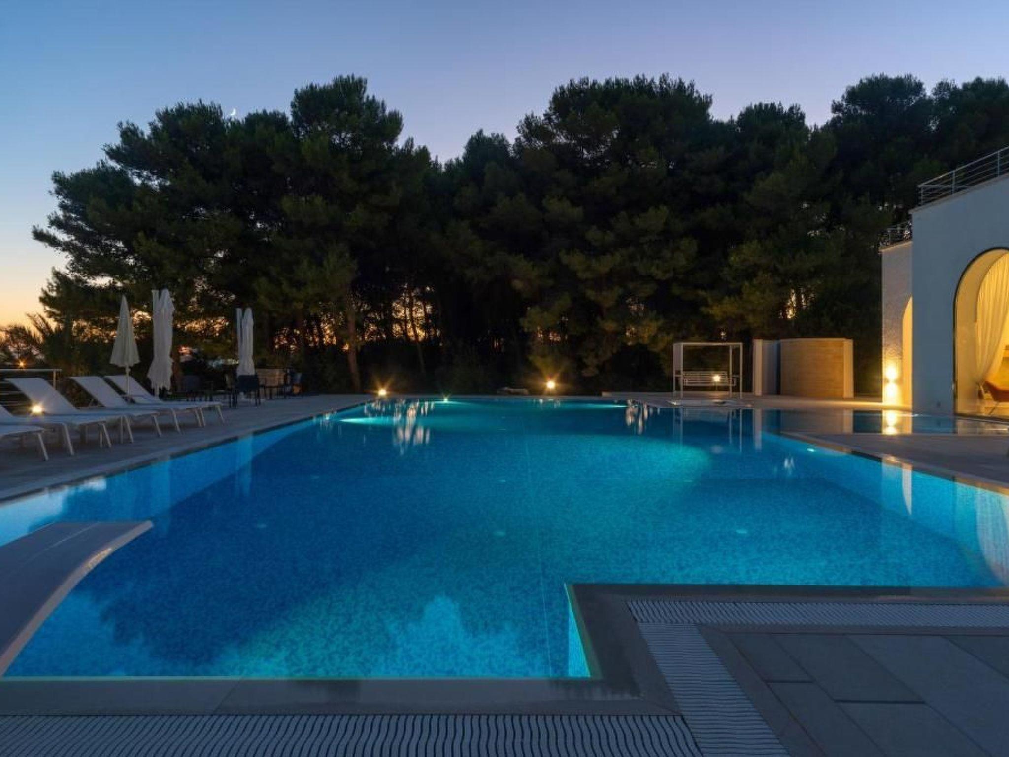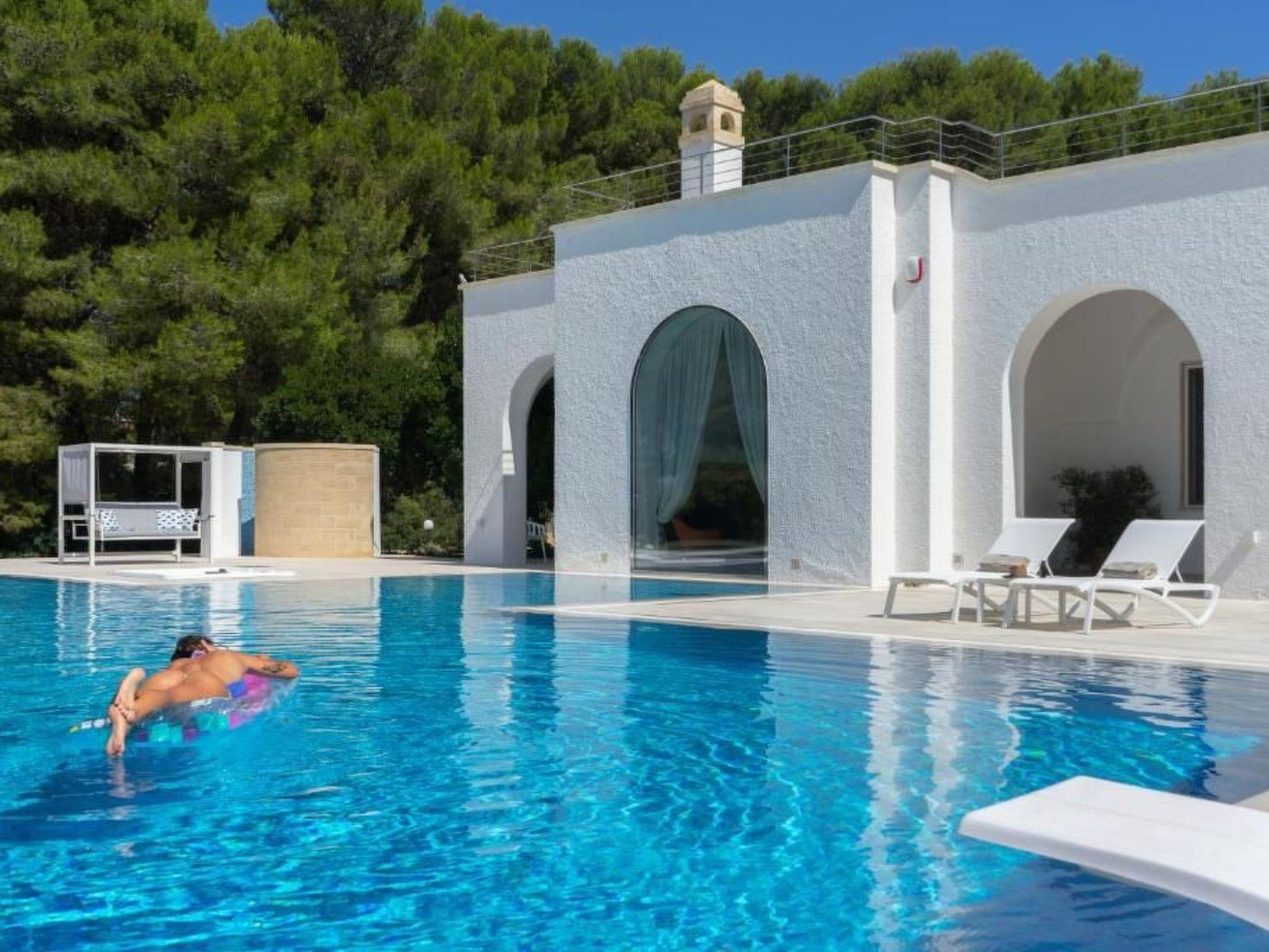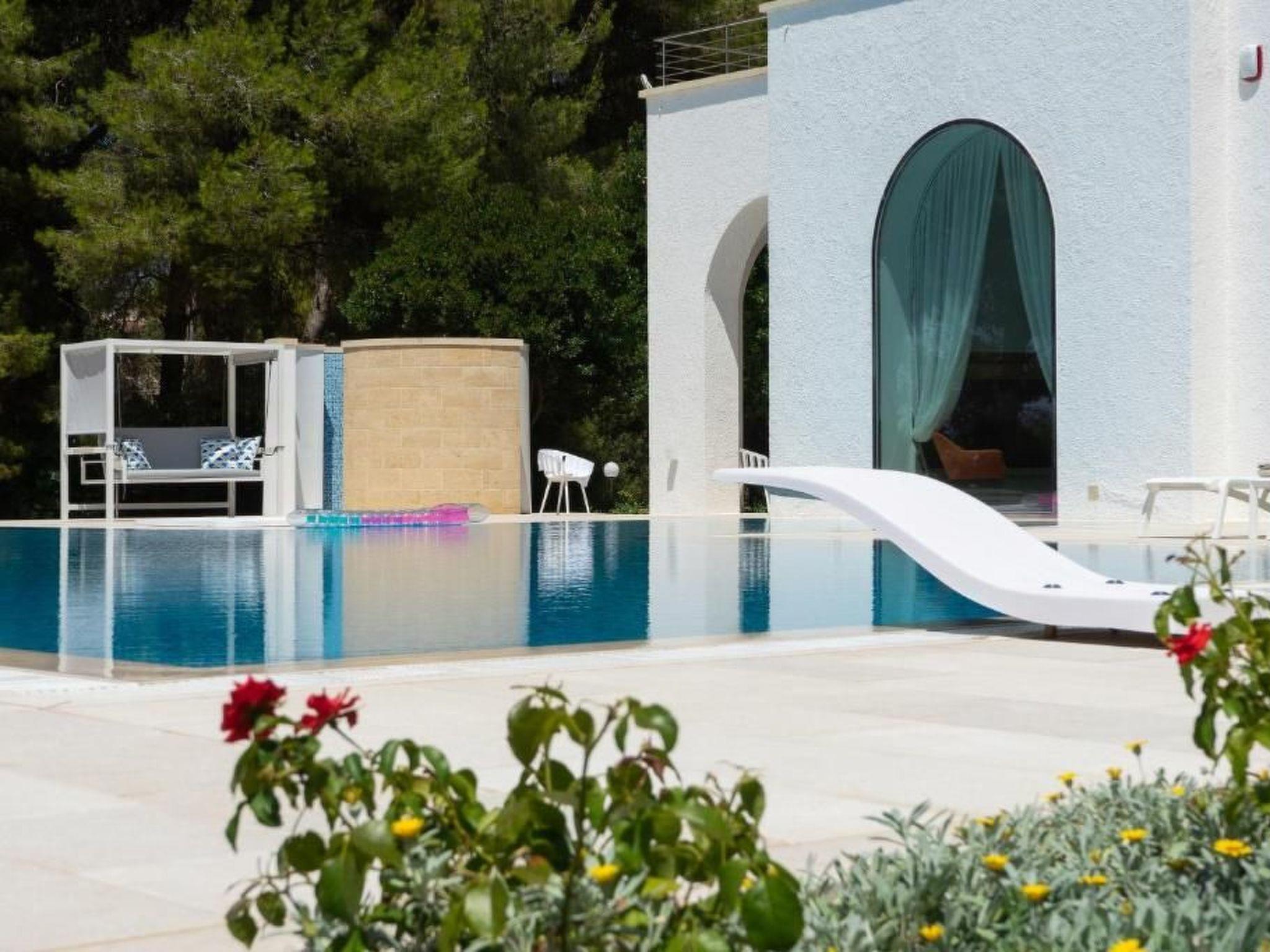 VIP - Exclusive - Villa Rosa Mediterranea - is located on over eight thousand square metres of Mediterranean maquis. Immersed among the myrtle and aromatic herbs typical of Salento, there is a majestic swimming pool of more than 200 square metres with a minimum depth of 60 cm, designed for children, an average depth of 110 cm and a maximum depth of 240 cm for those who love diving from the diving board. In addition to the splendid pool, there is a luxurious jacuzzi, ideal for relaxing moments. The outdoor area is equipped with sun loungers, parasols, a large shower and a bathroom. At the back, there is a barbecue area, perfect for barbecue enthusiasts.