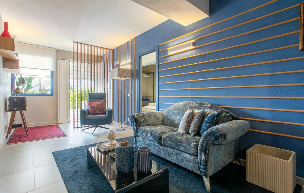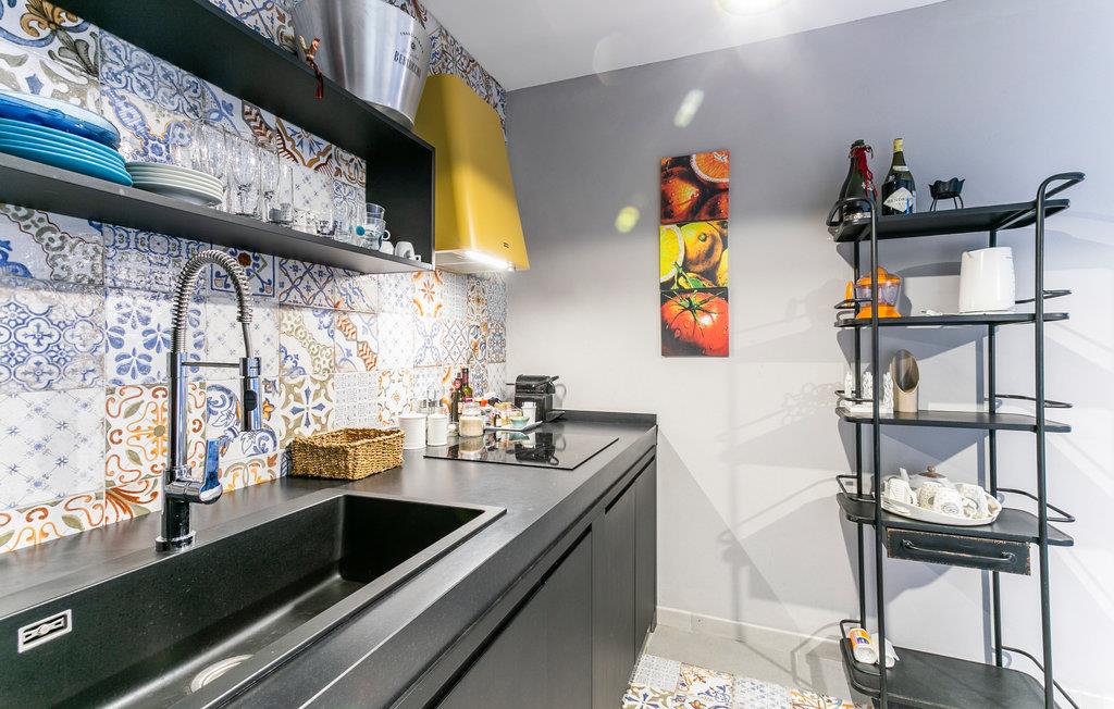 Bliv budt velkommen af ??den smagfulde indretning med farverige accenter. Sæt jer godt til rette i den komfortable opholdsstue på sofaen, slap af efter en dag på stranden eller nyd rolige øjeblikke med en god bog. Nyd måltider sammen i køkkenets spiseområde, som har dekorative fliser. Glæd jer til et behageligt opholdsmiljø, der giver plads til både afslapning og socialt samvær.