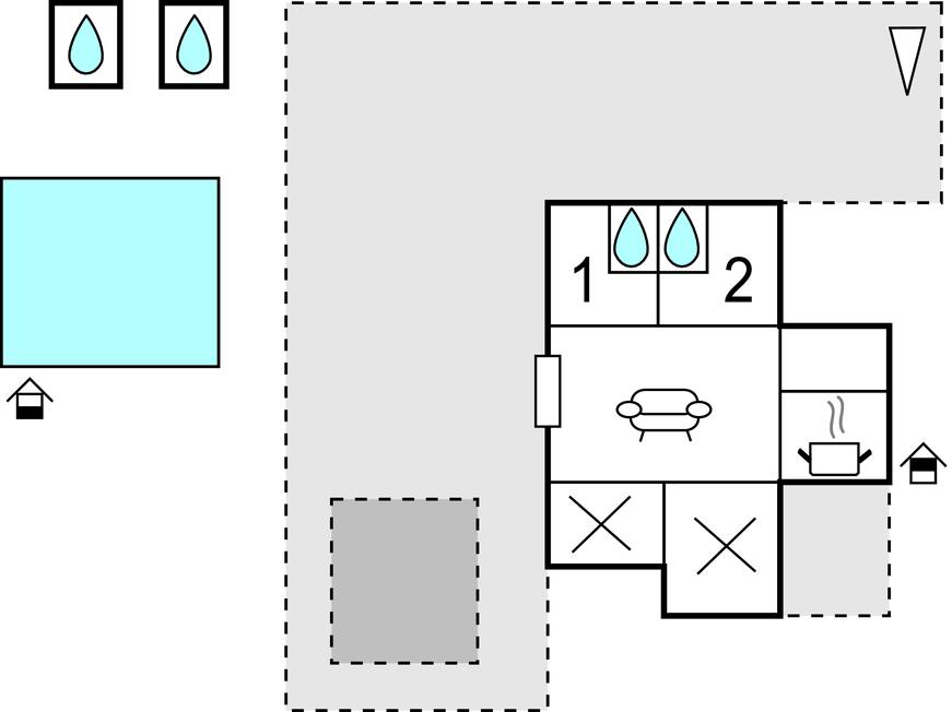 Soveværelse 20m2 (nr. 2) - 1 Soveplads. (Enkeltseng(e)). 2 Sovepladser. (Dobbeltseng(e)).