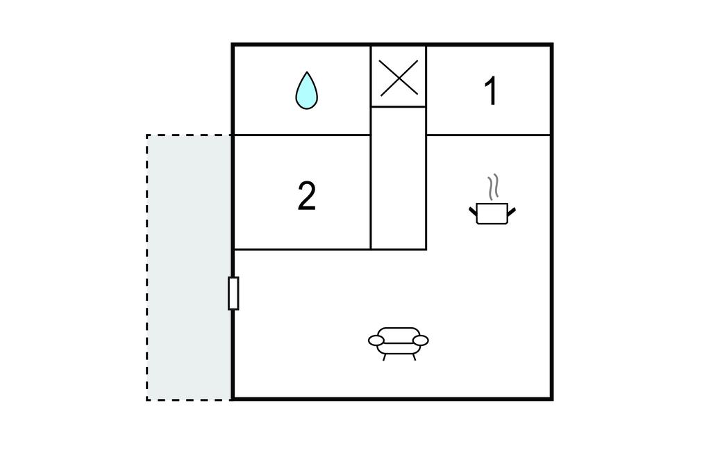 Opholdsstue/køkken 43m2 - 1 Soveplads. (Sofa, madras eller lignende).