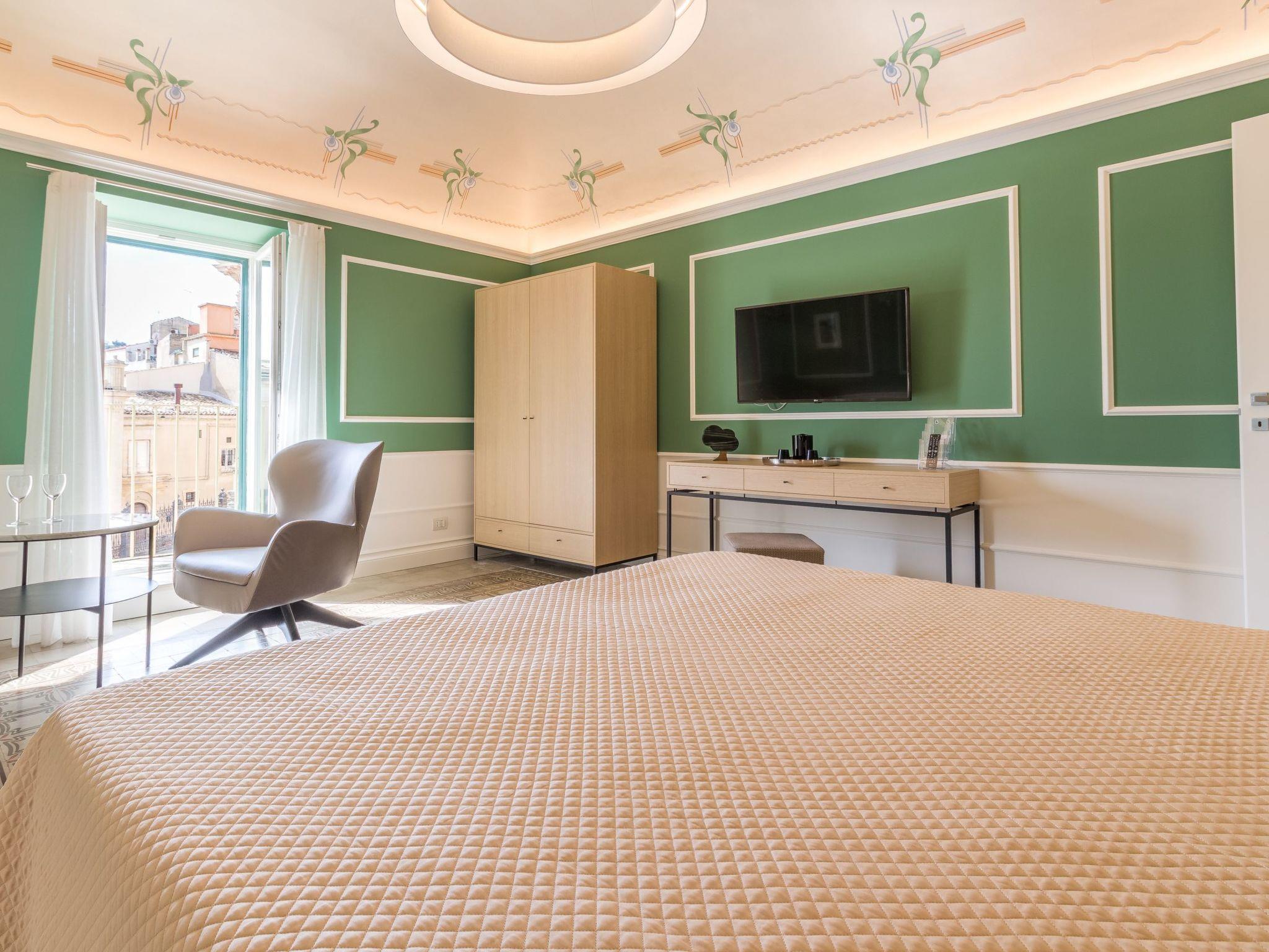 A bedroom, with a beautiful view of the San Giorgio cathedral, with television.