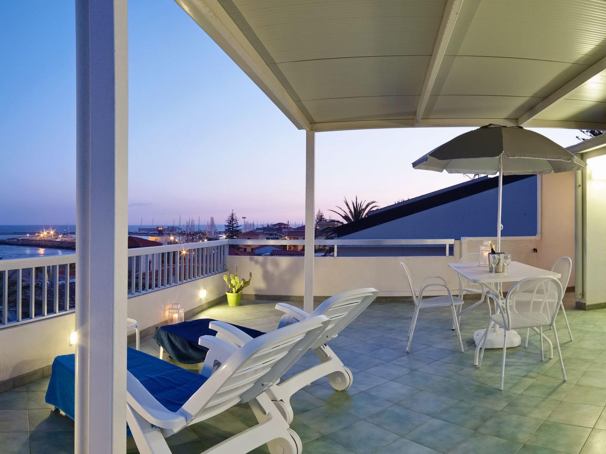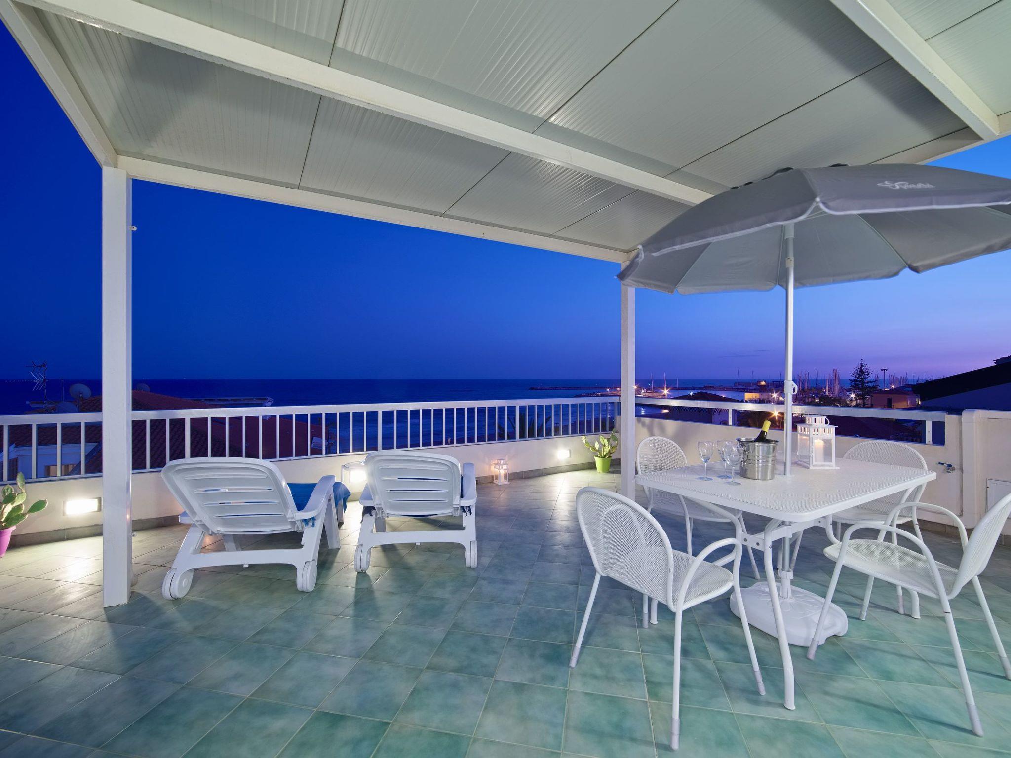 Outside there is a large terrace, partly covered, facing the sea and furnished with table and chairs.